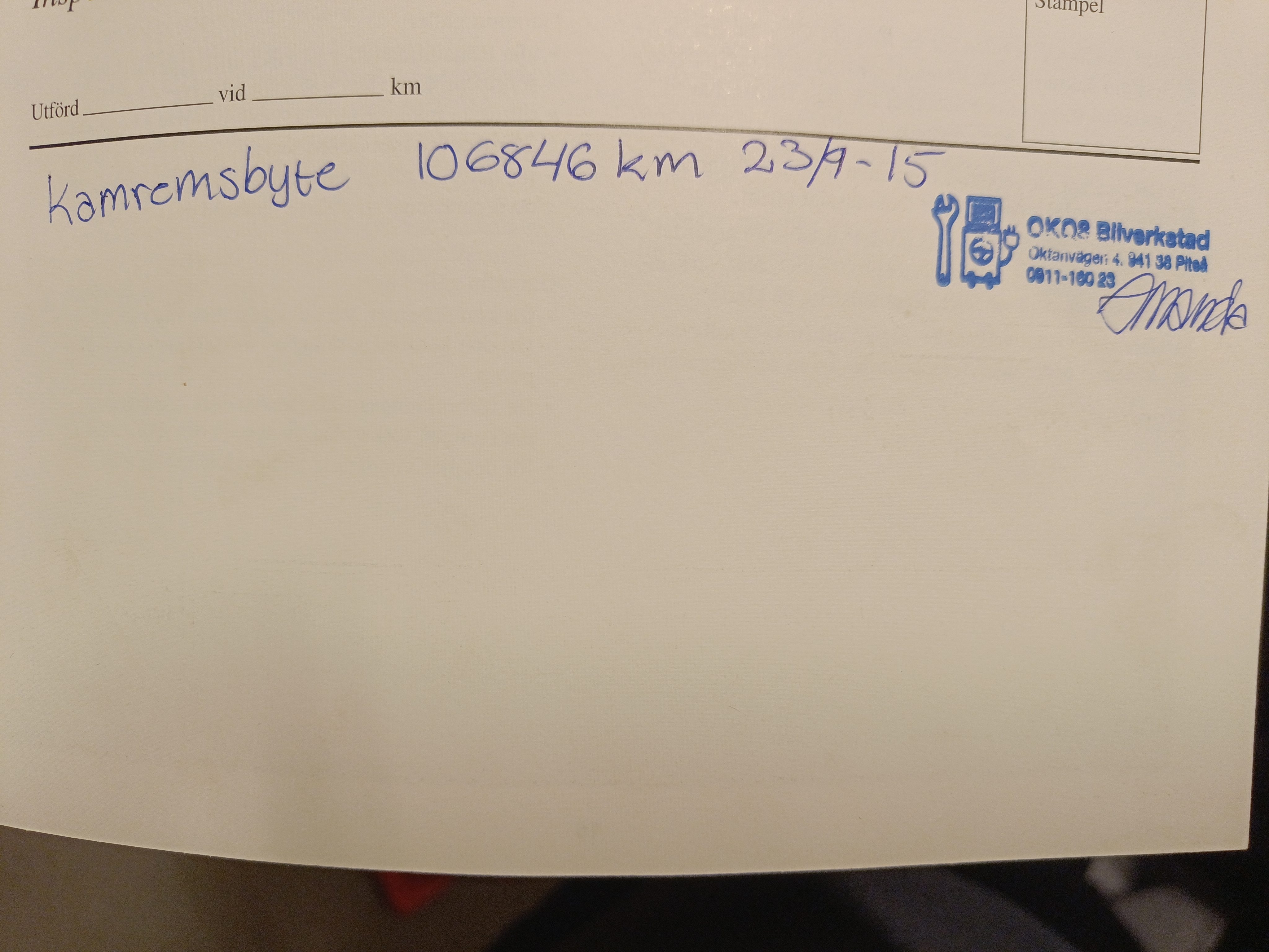 It has only done 12675 miles, and it had a timing belt service at 106847 miles. (23/9-2015.)