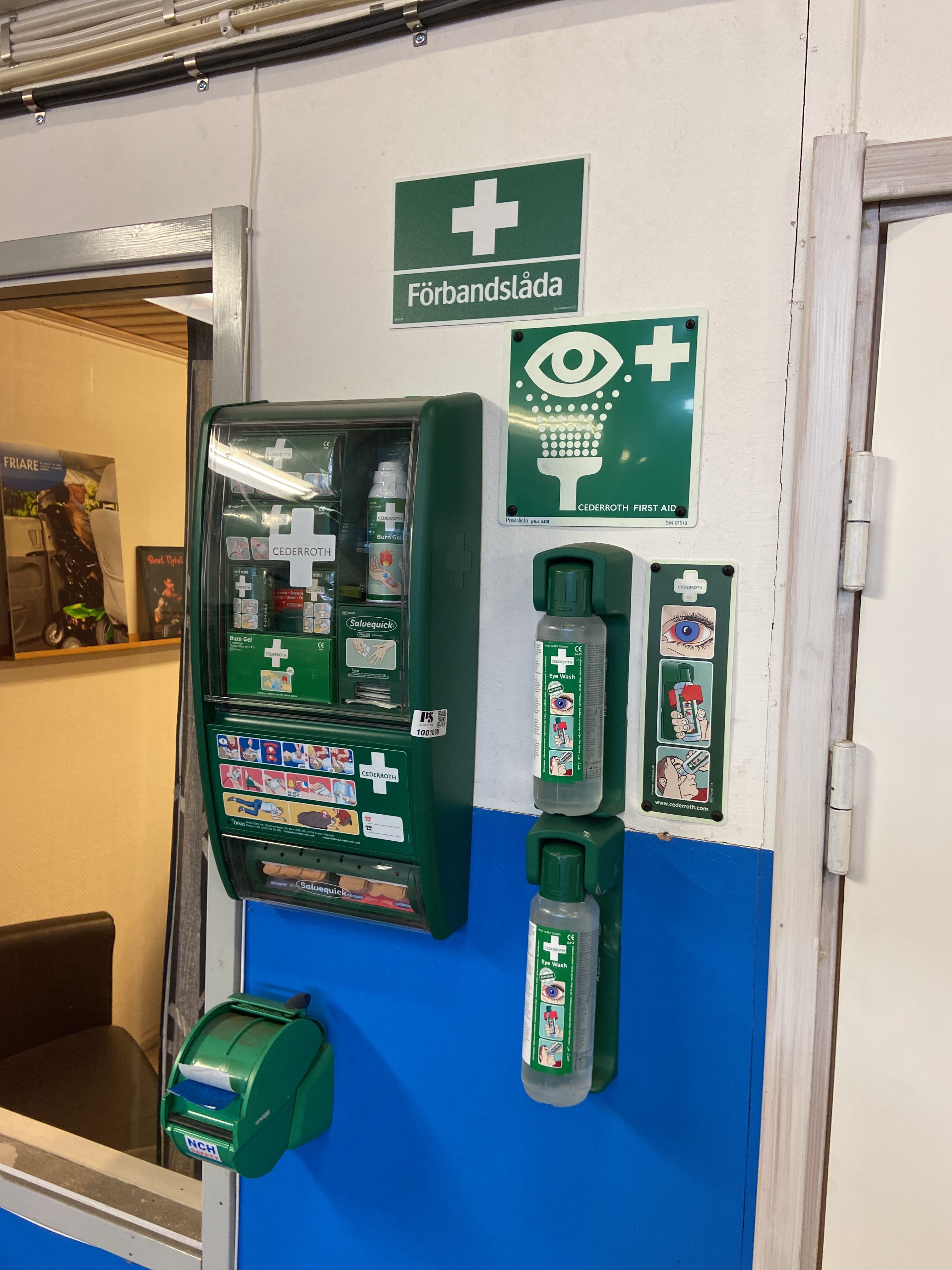 Förstahjälpentavlor, 2 stycken samt ögonduschar