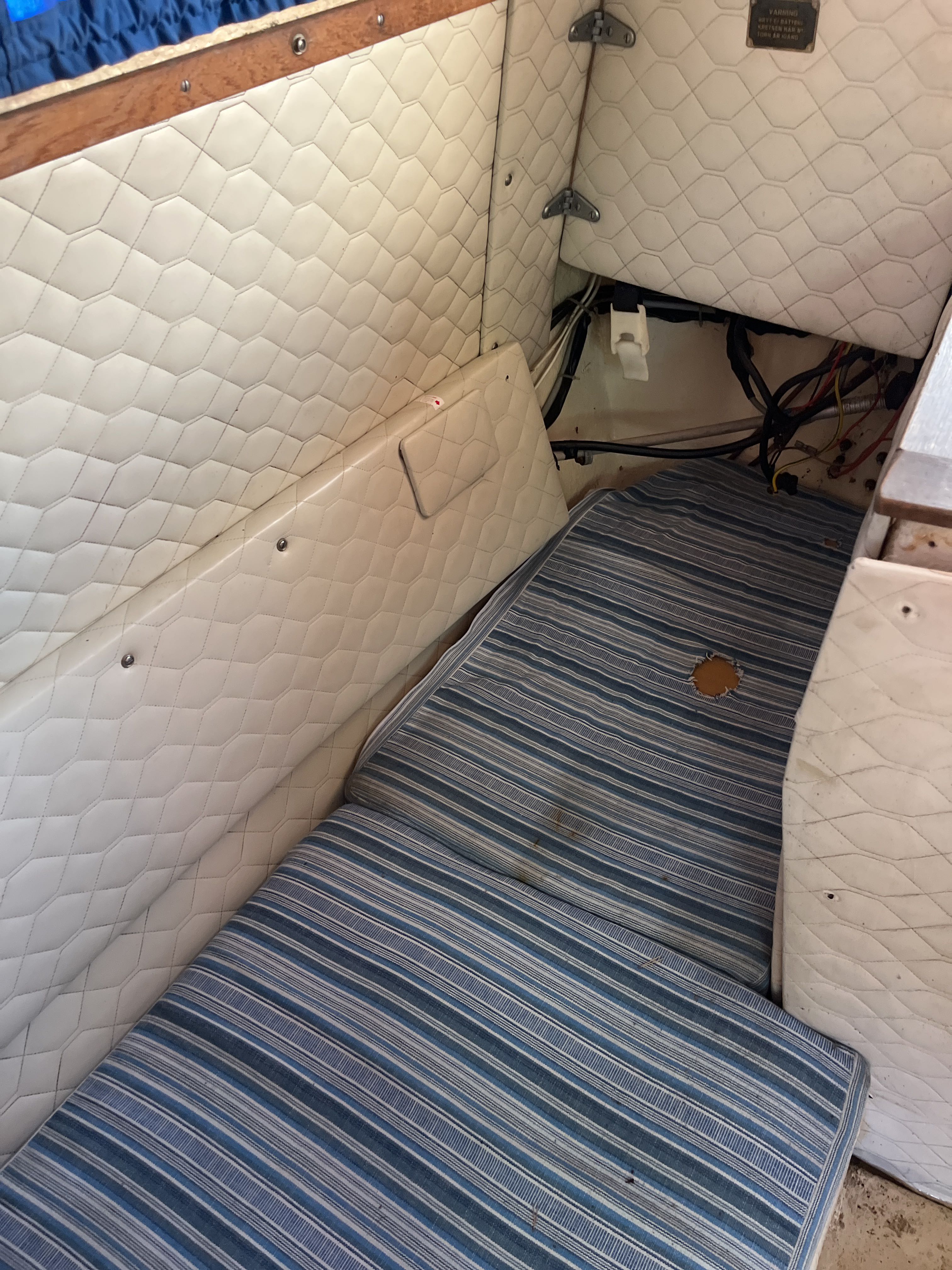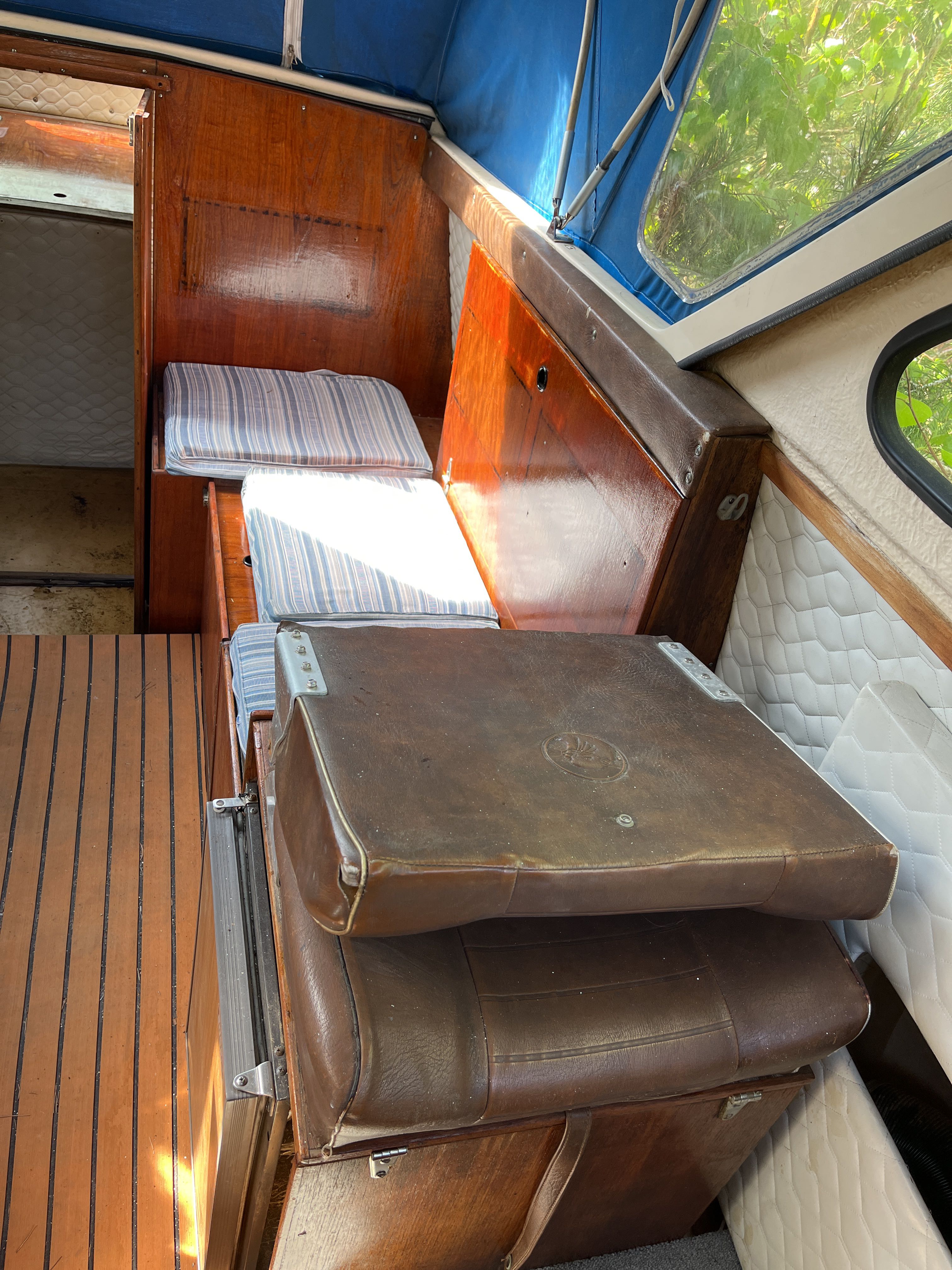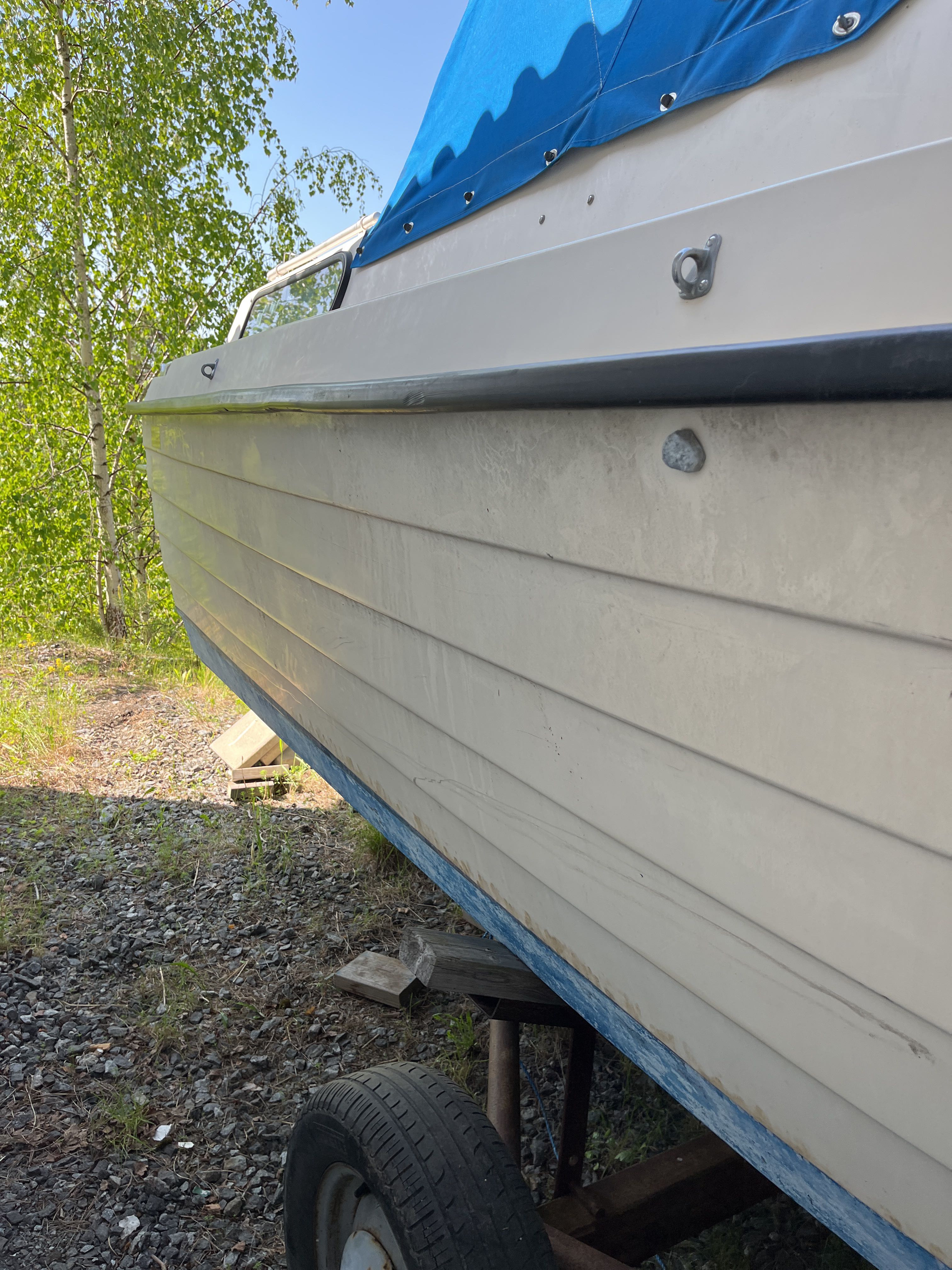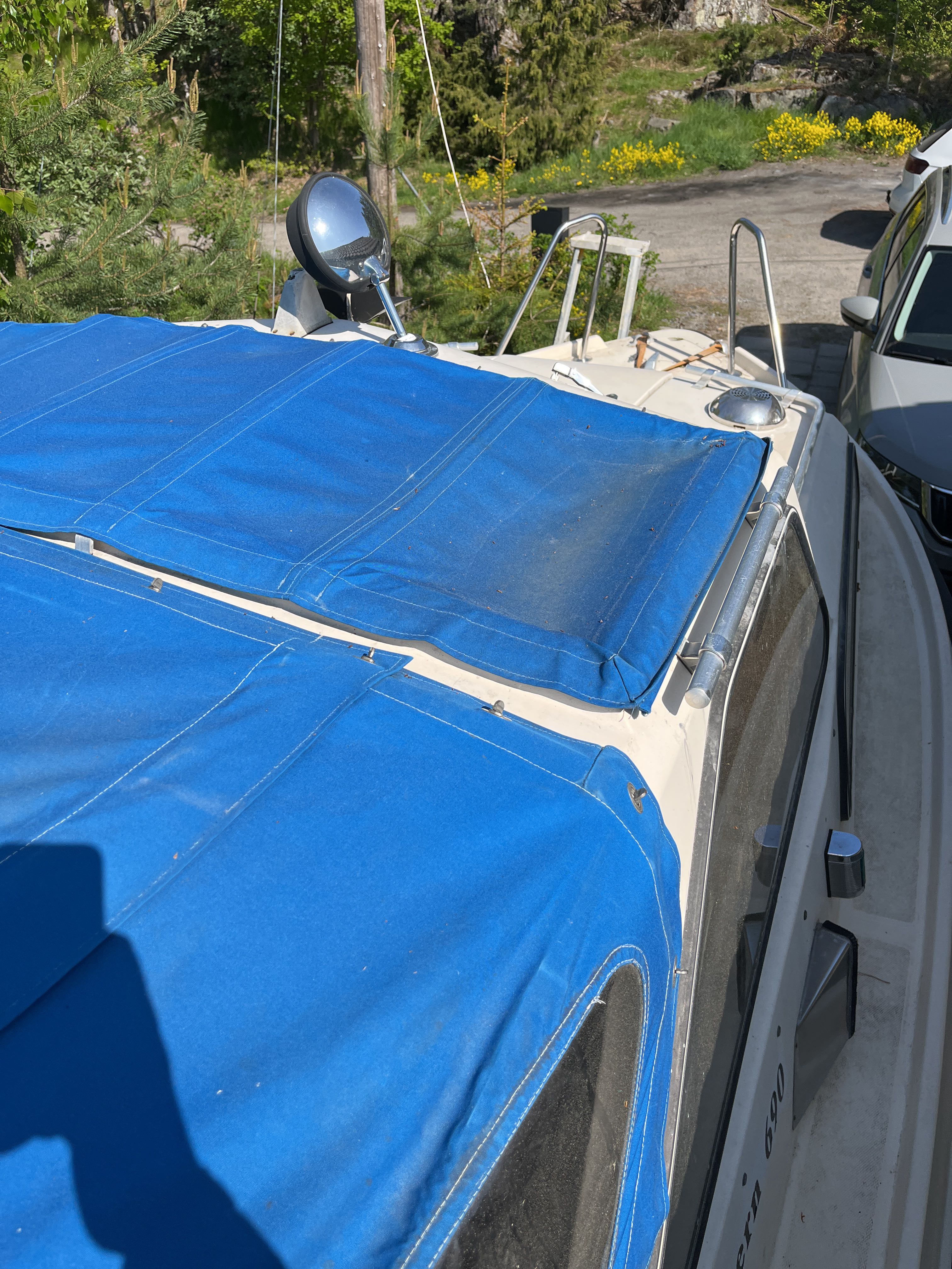 The 1981 Uttern 690 with Volvo penta VP 140 powered the AQ280 with drive lift. very new and changed, new generator in 2022, starter motor in 2022 and timing belt changed in 2022, new throttle and shifter in 2022. Double batteries 70+100 amp. You can comfortably sleep 2 adults and a child in the front ruff, in the rear ruff sleep two adults Large dining table with room for everyone. 2-burner gas cooker, fridge with small freezer compartment The cushions are freshly washed but worn, canopy complete and in normal condition, good standing height with the canopy folded up. A simpler launch trailer is included. A good boat for those who want to try boating or for those who have outgrown their boat and need space for the family.