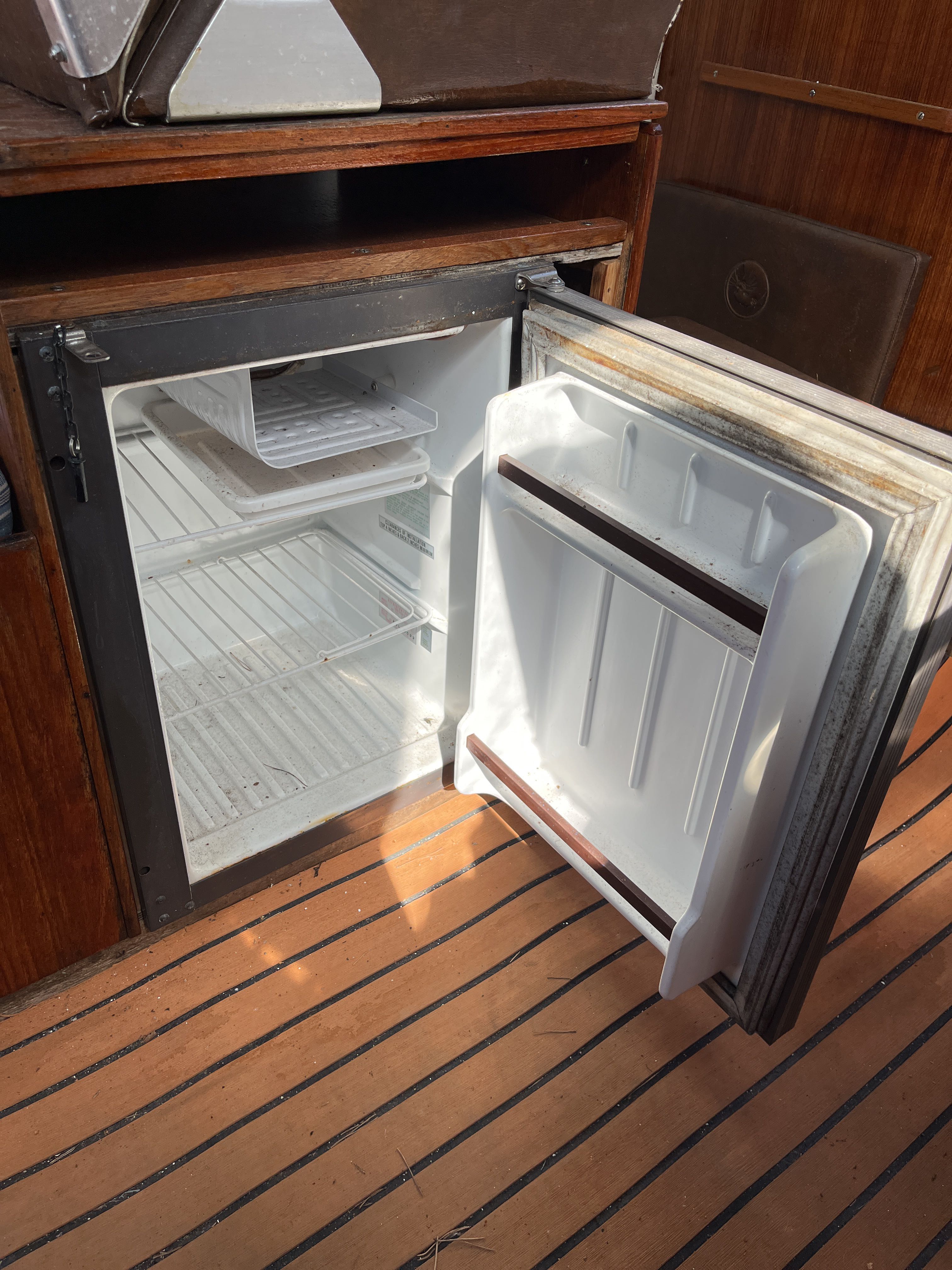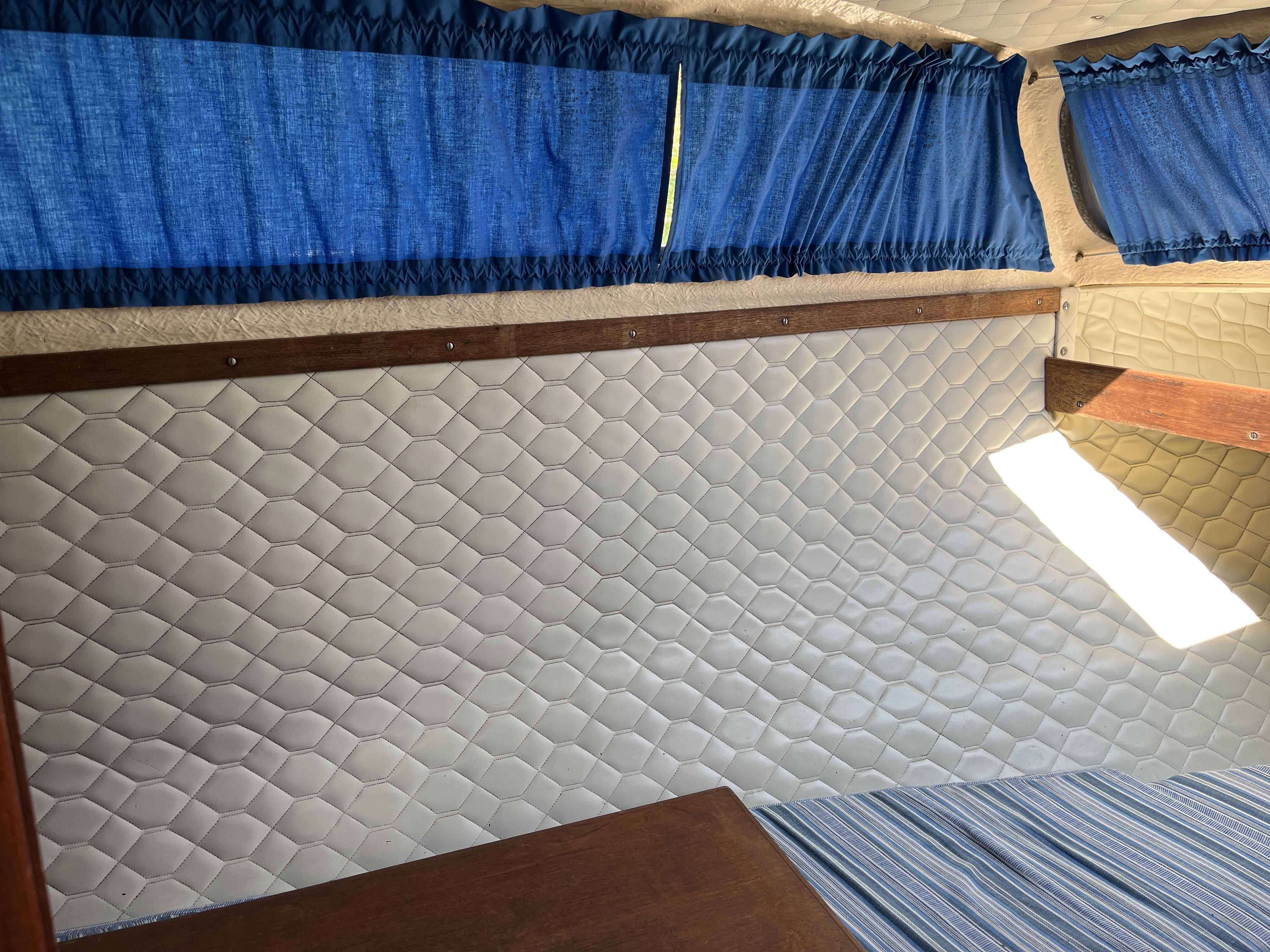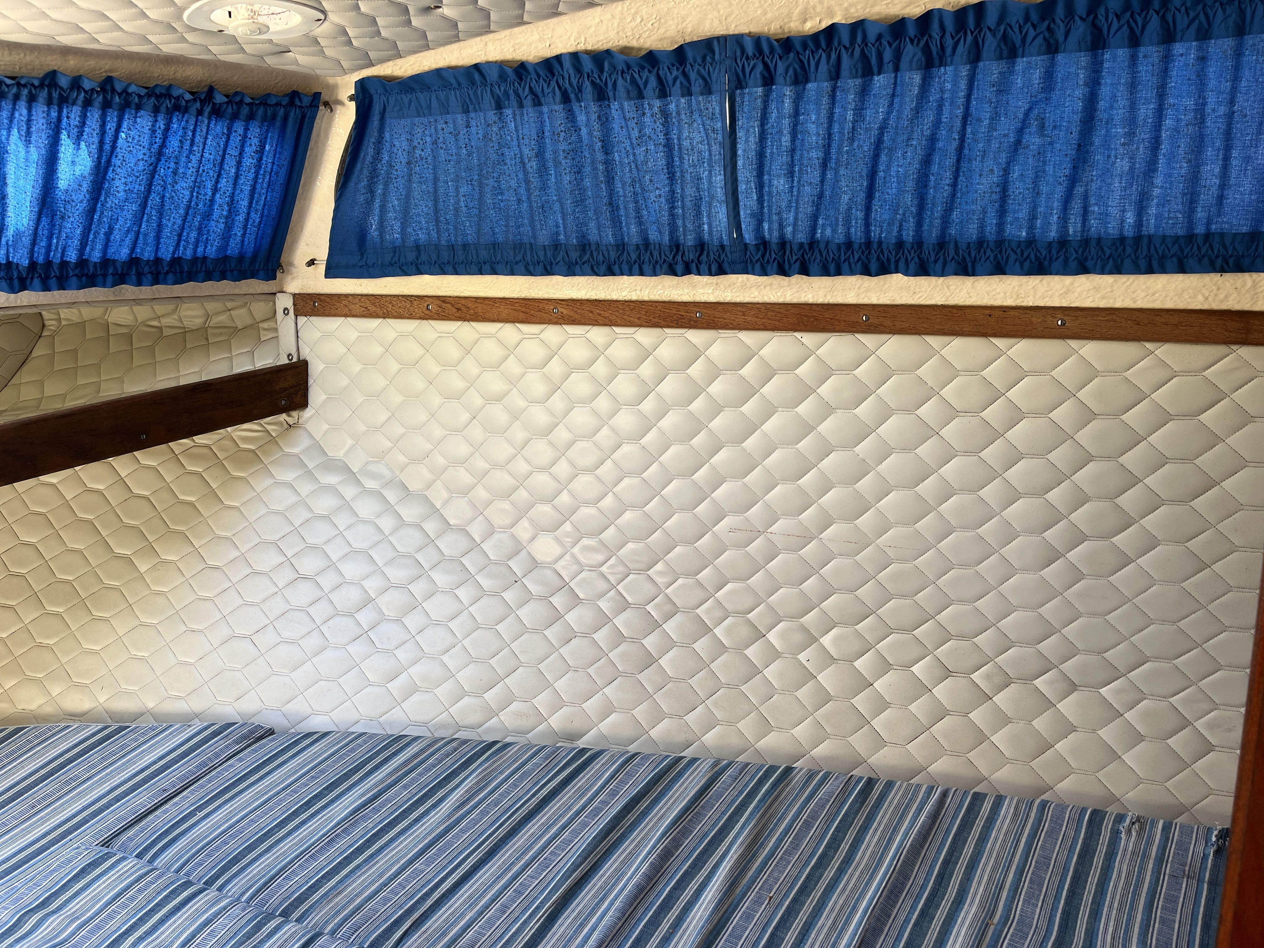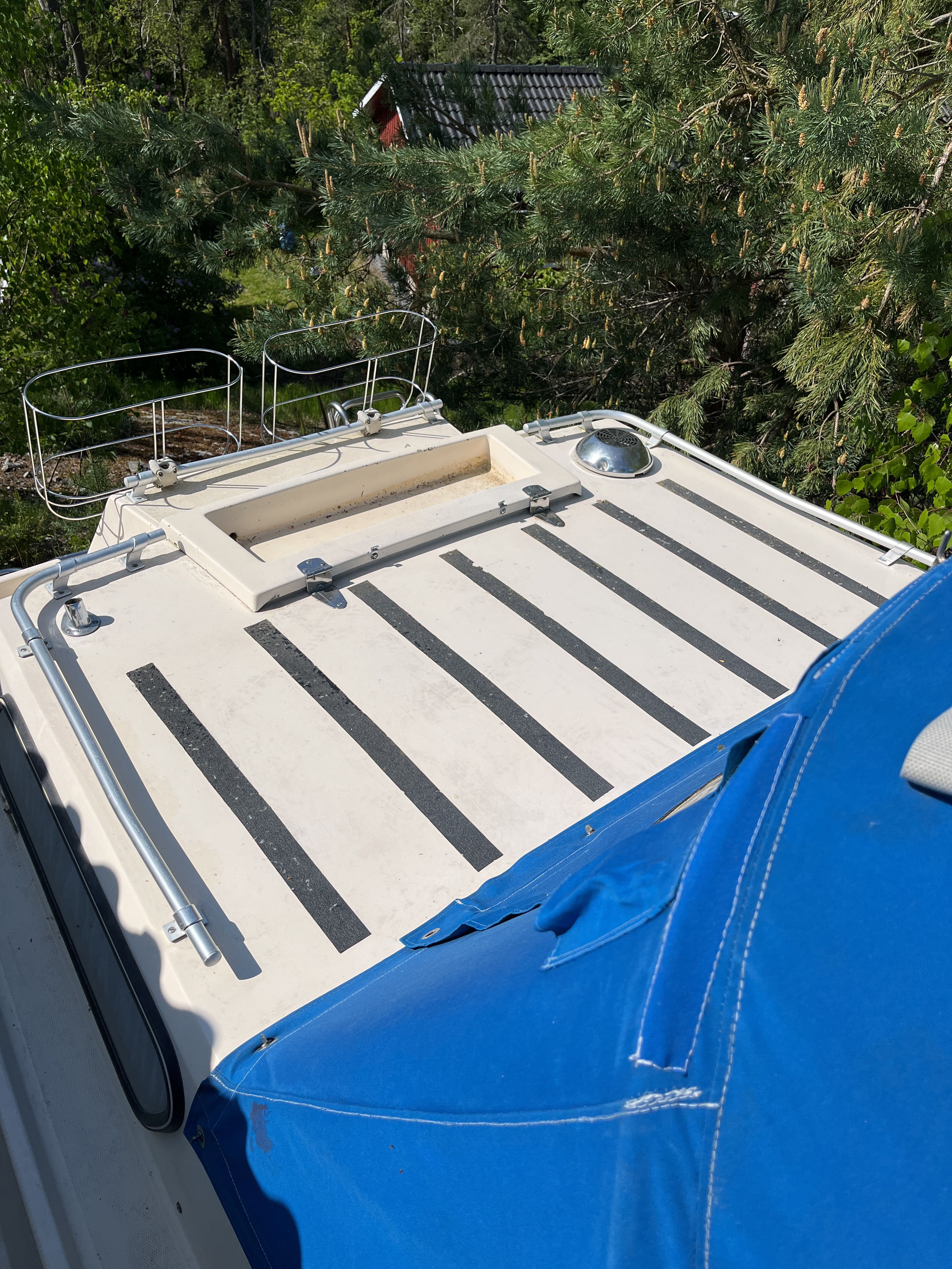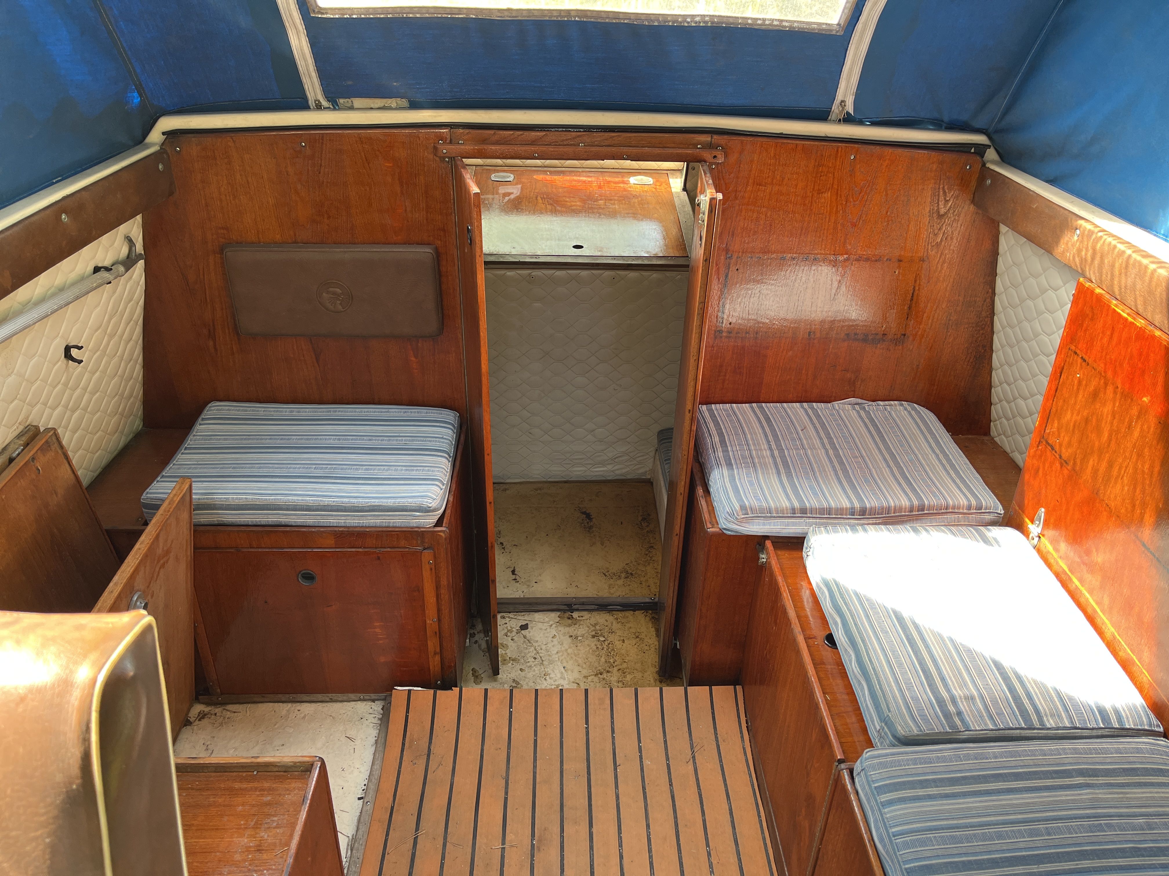 The 1981 Uttern 690 with Volvo penta VP 140 powered the AQ280 with drive lift. very new and changed, new generator in 2022, starter motor in 2022 and timing belt changed in 2022, new throttle and shifter in 2022. Double batteries 70+100 amp. You can comfortably sleep 2 adults and a child in the front ruff, in the rear ruff sleep two adults Large dining table with room for everyone. 2-burner gas cooker, fridge with small freezer compartment The cushions are freshly washed but worn, canopy complete and in normal condition, good standing height with the canopy folded up. A simpler launch trailer is included. A good boat for those who want to try boating or for those who have outgrown their boat and need space for the family.