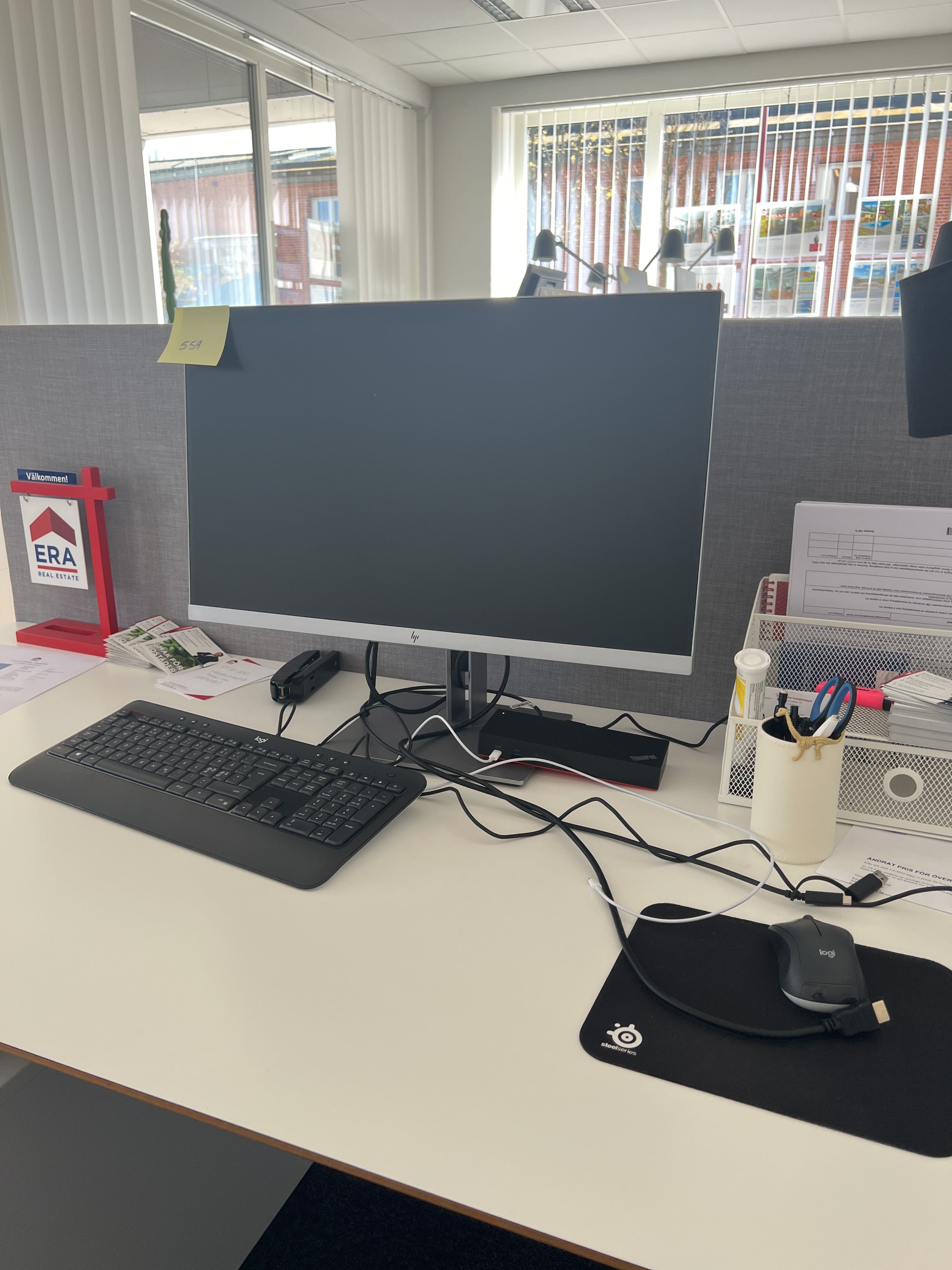 2 screens, 2 keyboards 2 mice 2 docking station.