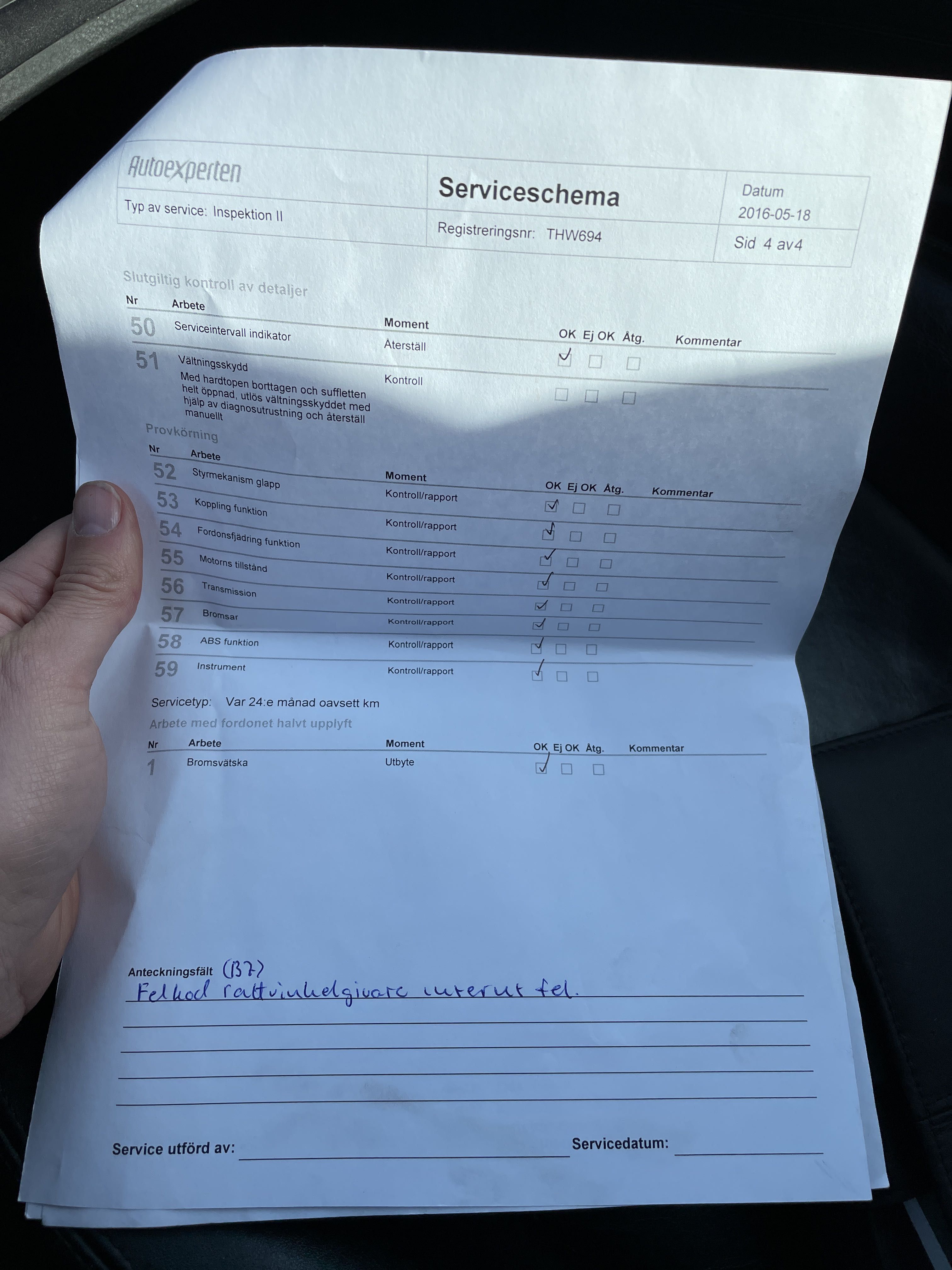 Odometer reading: 134064km, when documenting