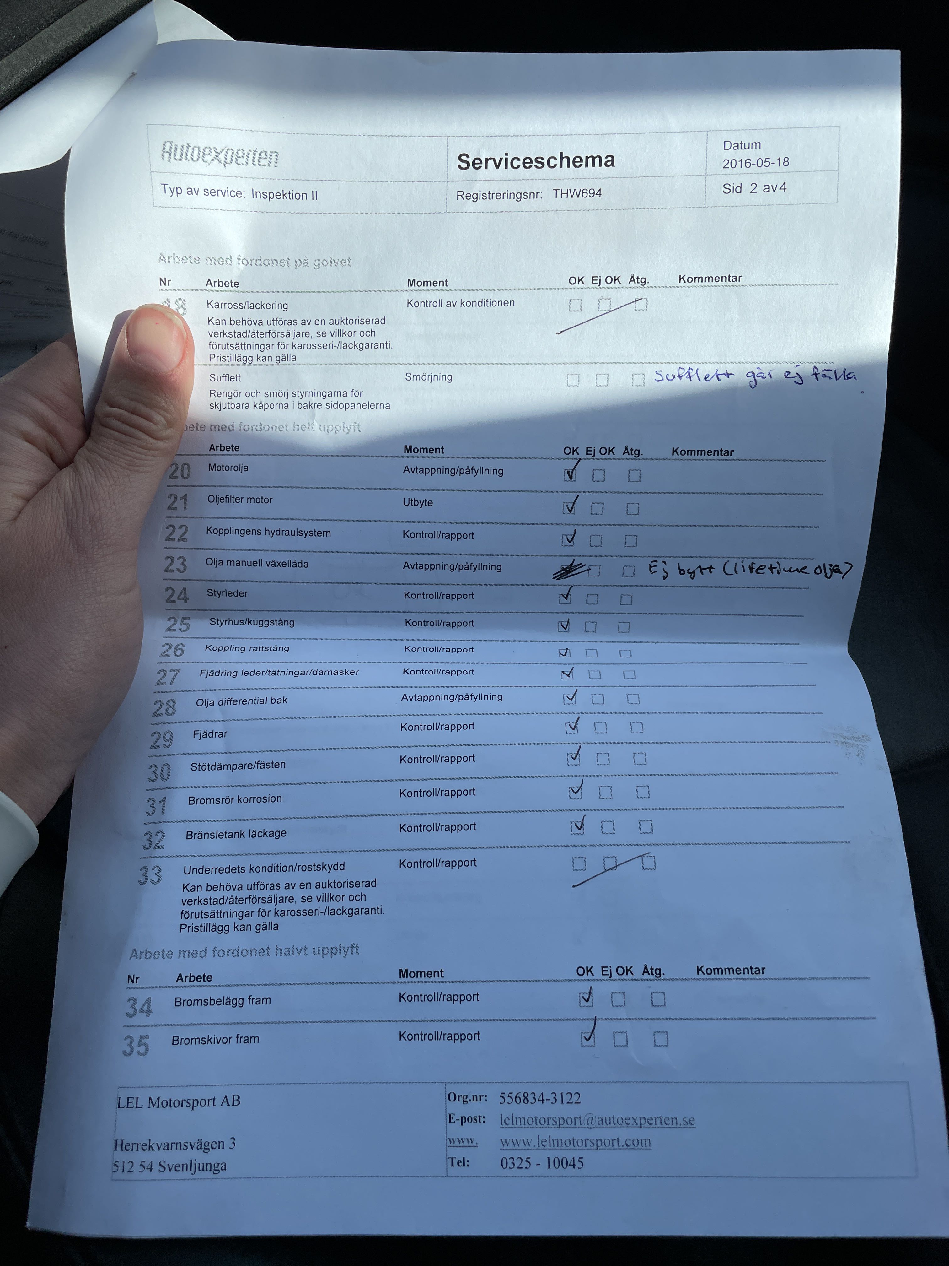 - Documentation on service is missing after 2016, use sparingly after this, see attached picture of service paper.
