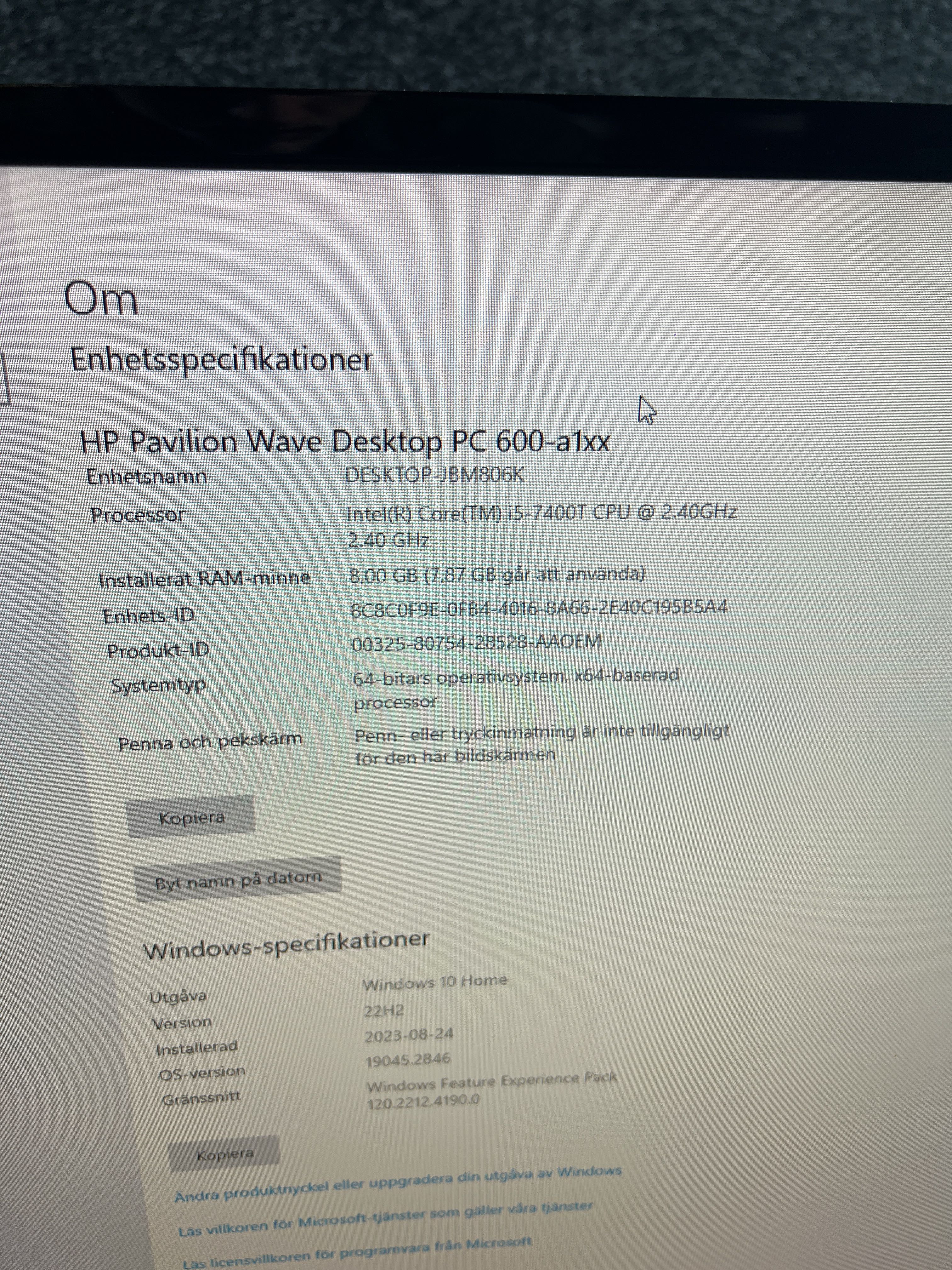 Desktop computer HP Pavillion Wave i5/8GB/120SSD/1TBHDD.