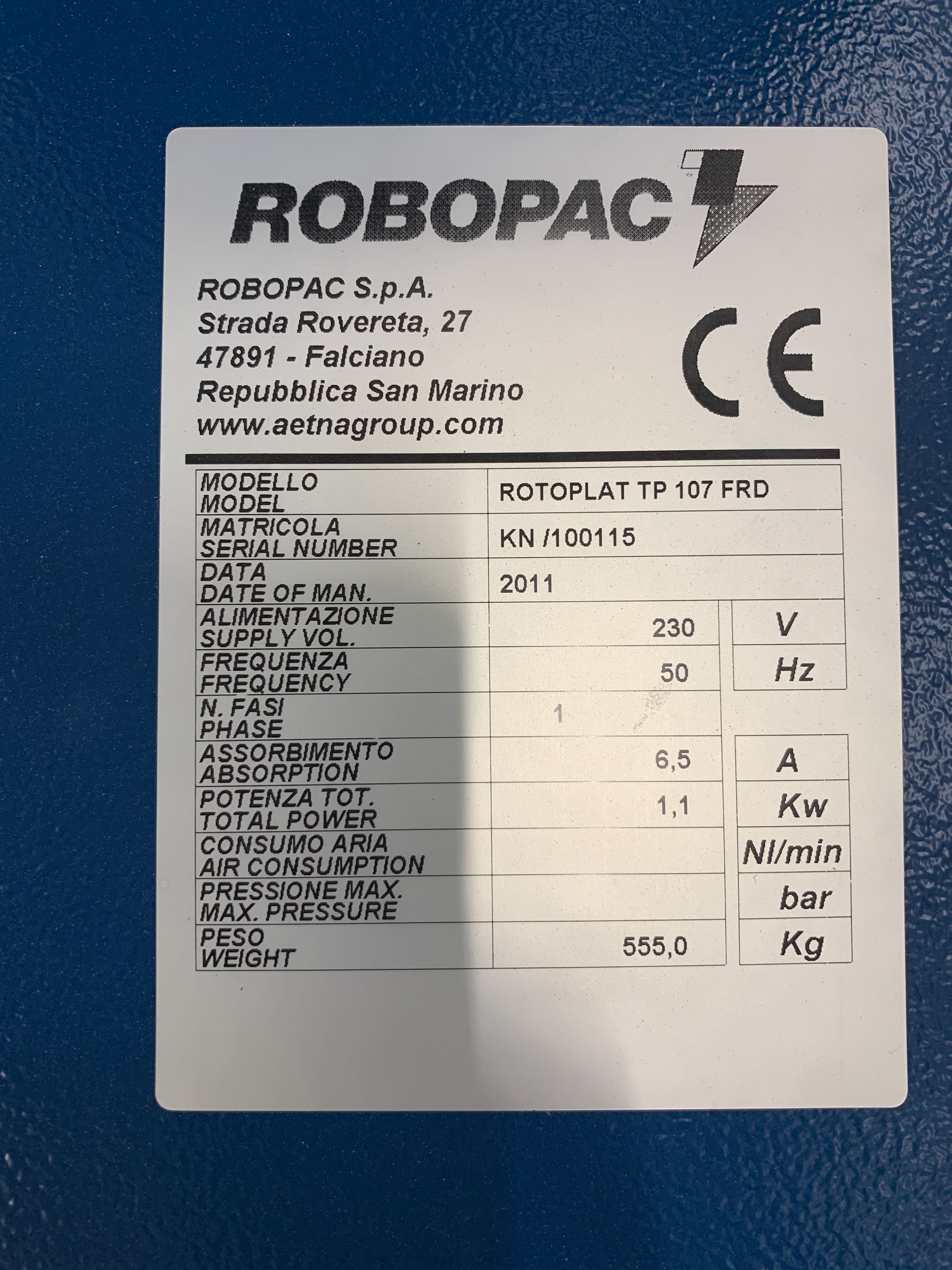 Automatic plastic machine Robopac Rotoplat TP 107 FRD