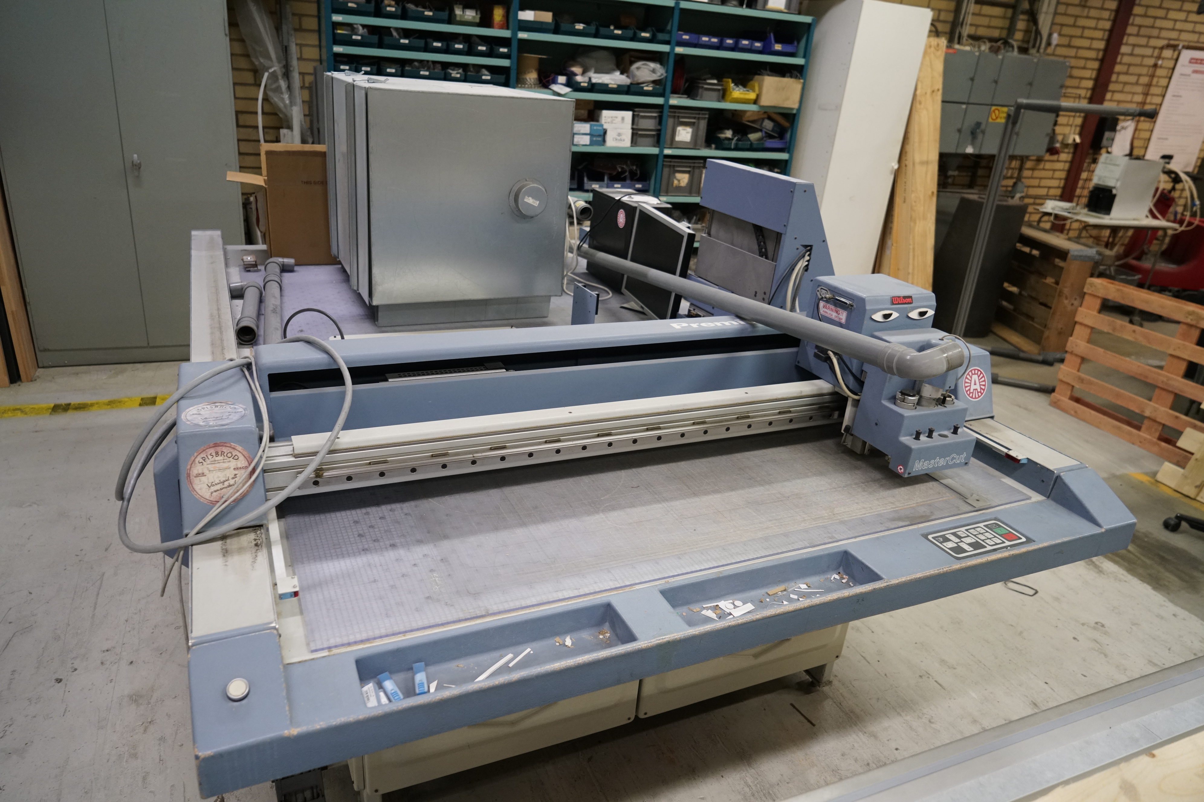 The cutting machine has been running until recently. It has been used to produce samples in corrugated cardboard, cardboard and thinner plastics.