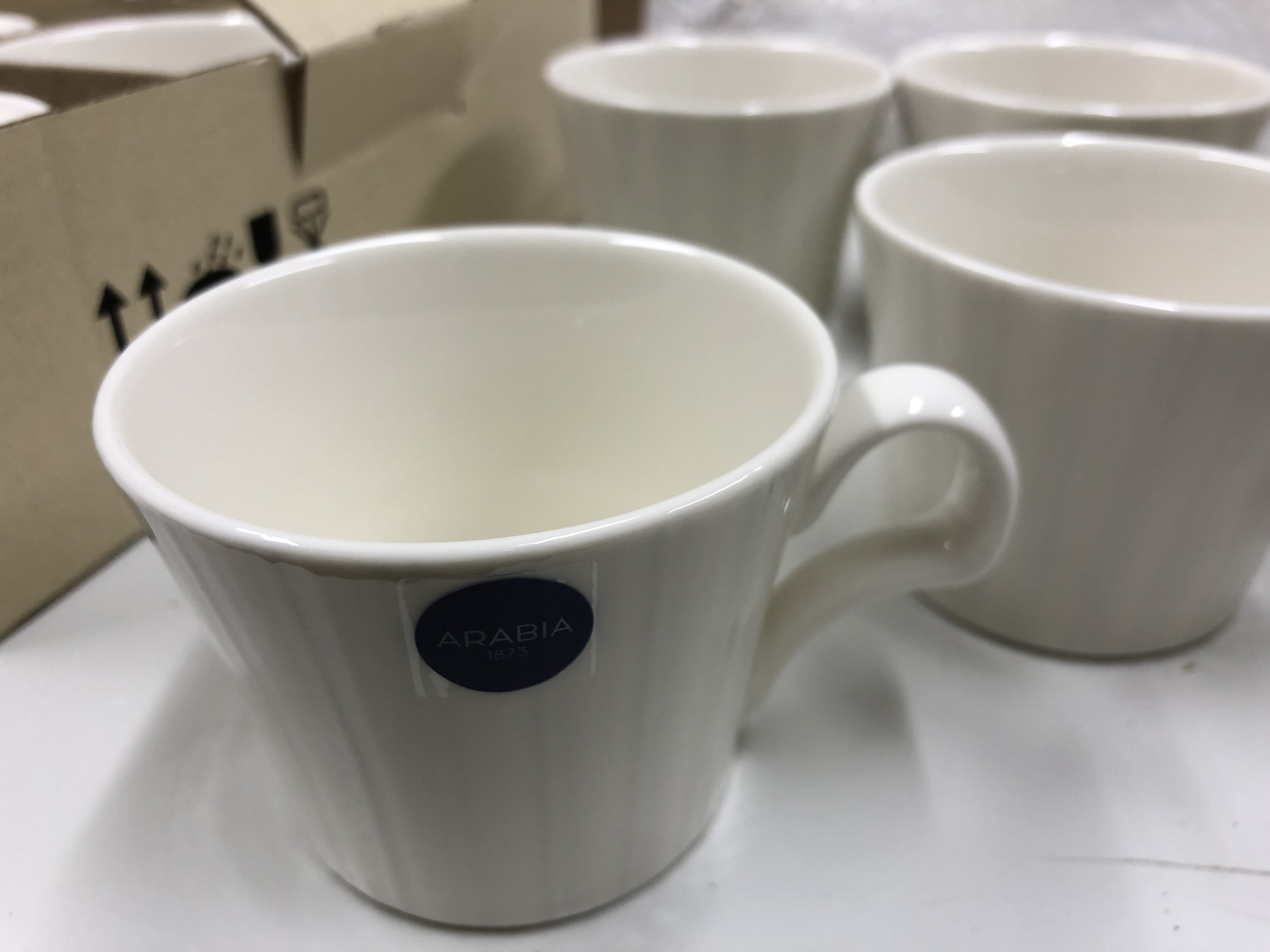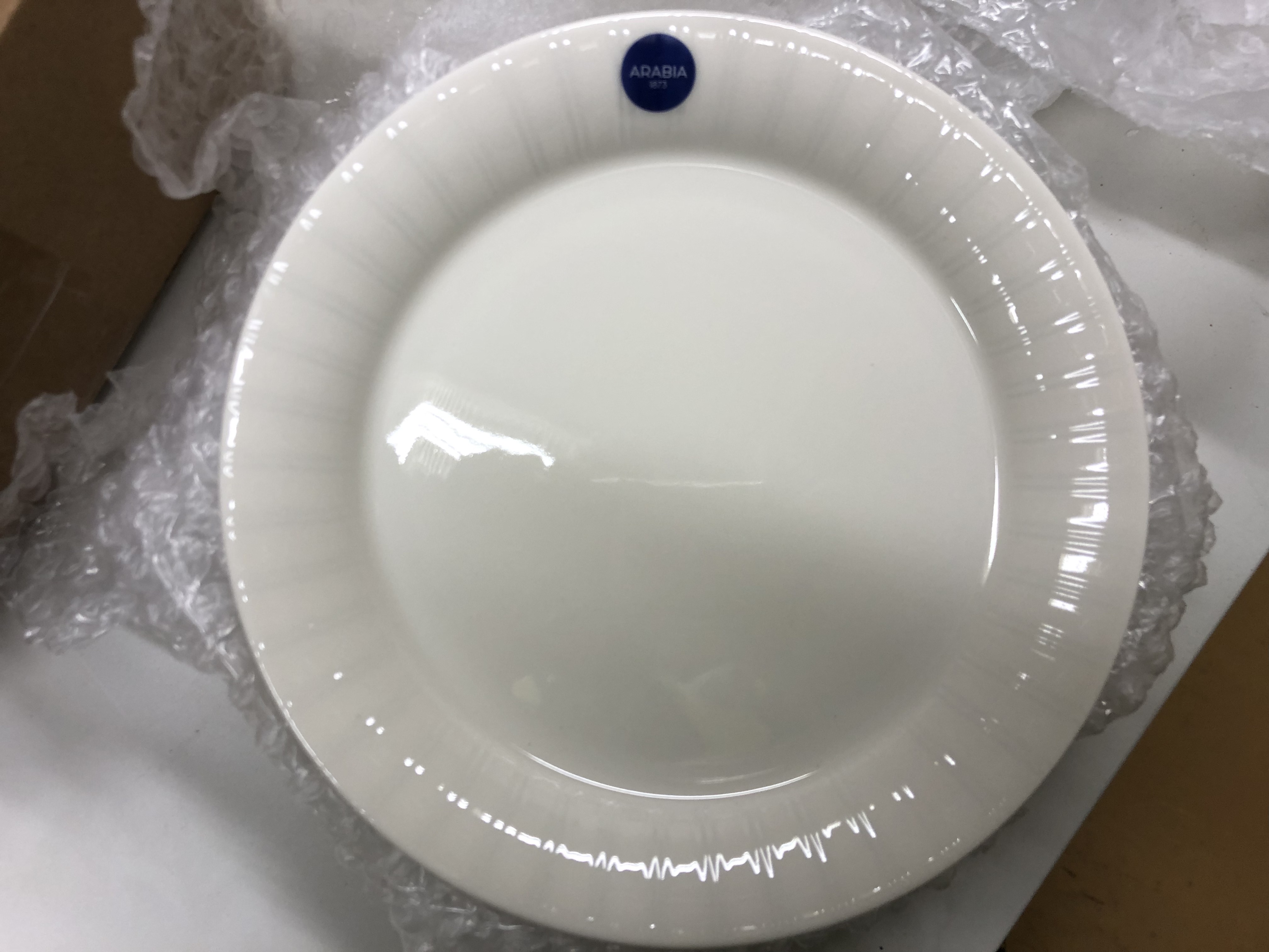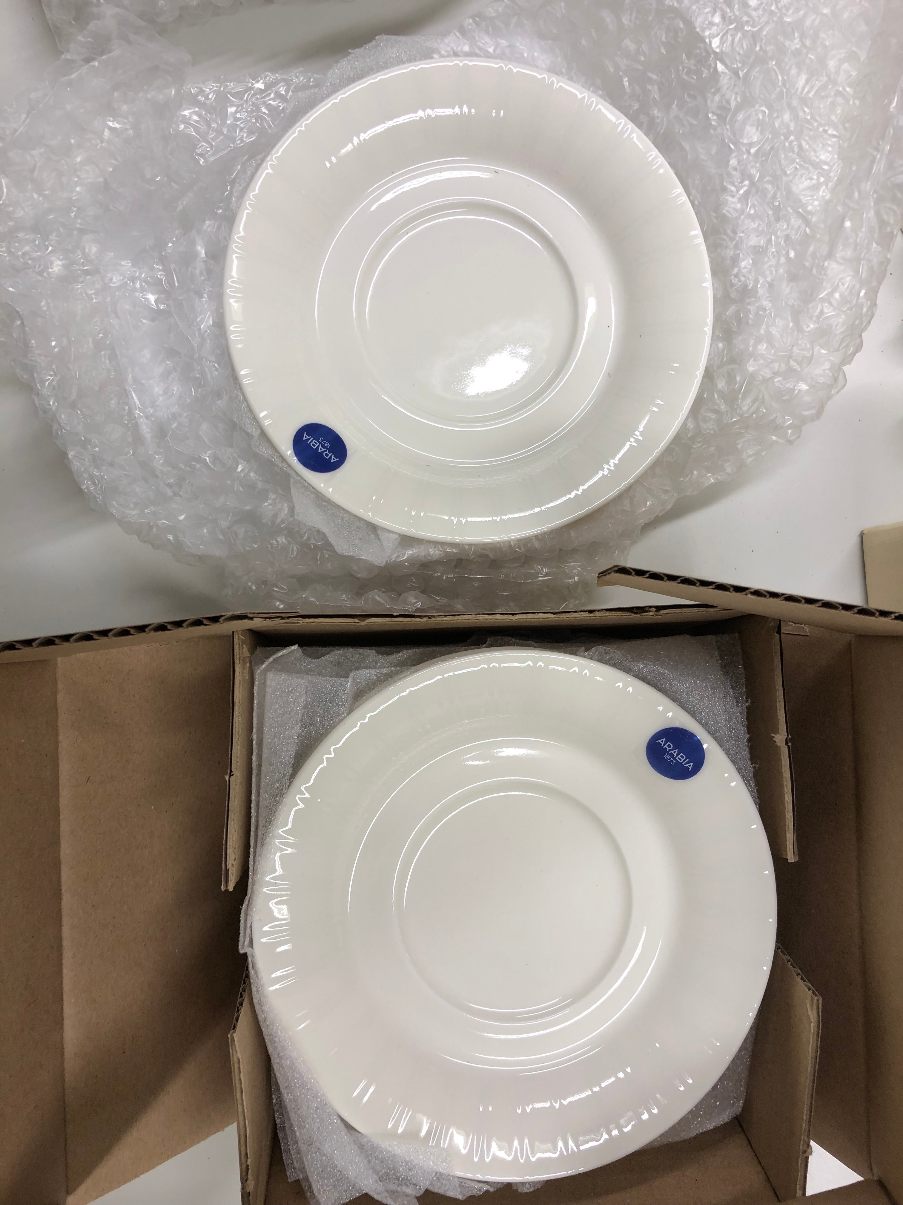 - 10 hengen käyttämätön Aribia Lumi -arvoastiasto (Design Heikki Orvola) tehtaan pakkauksissa