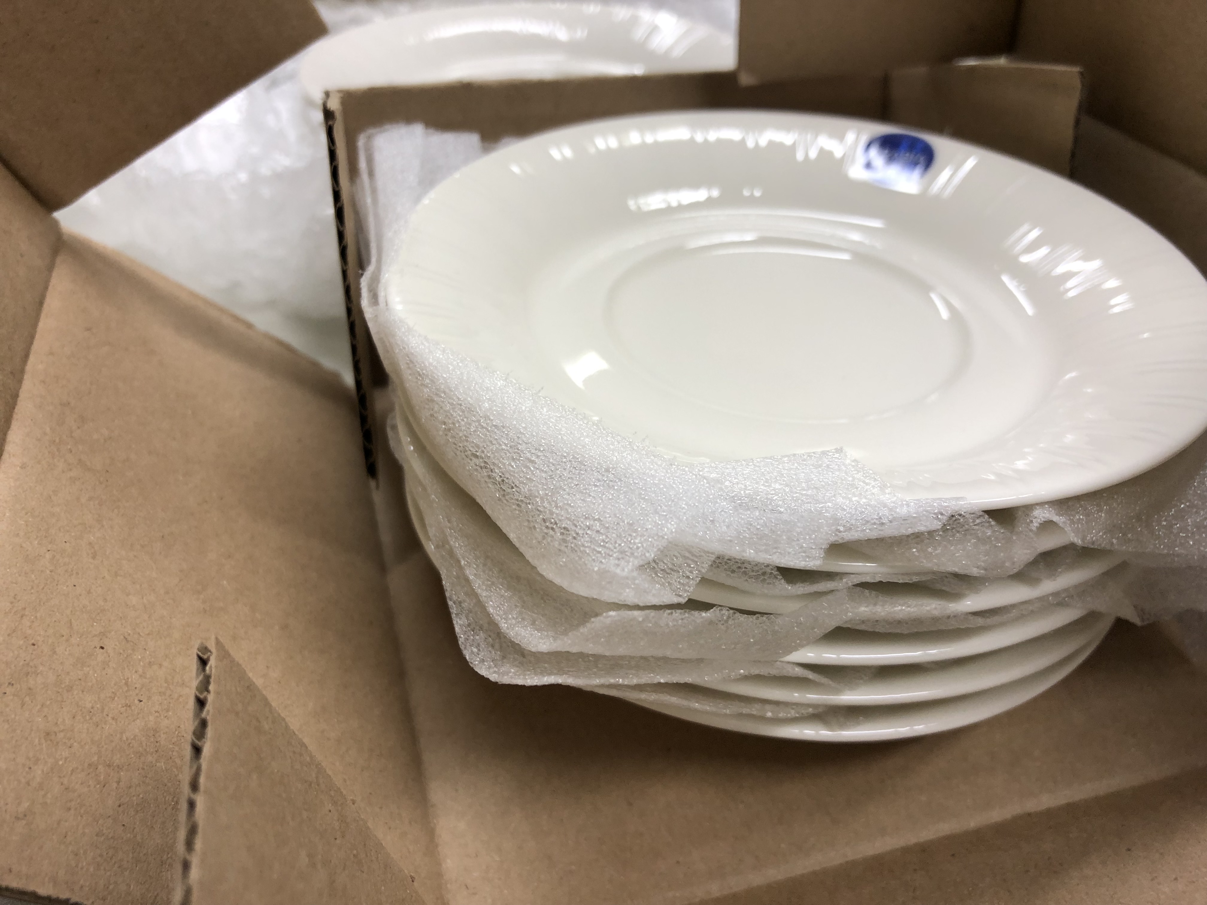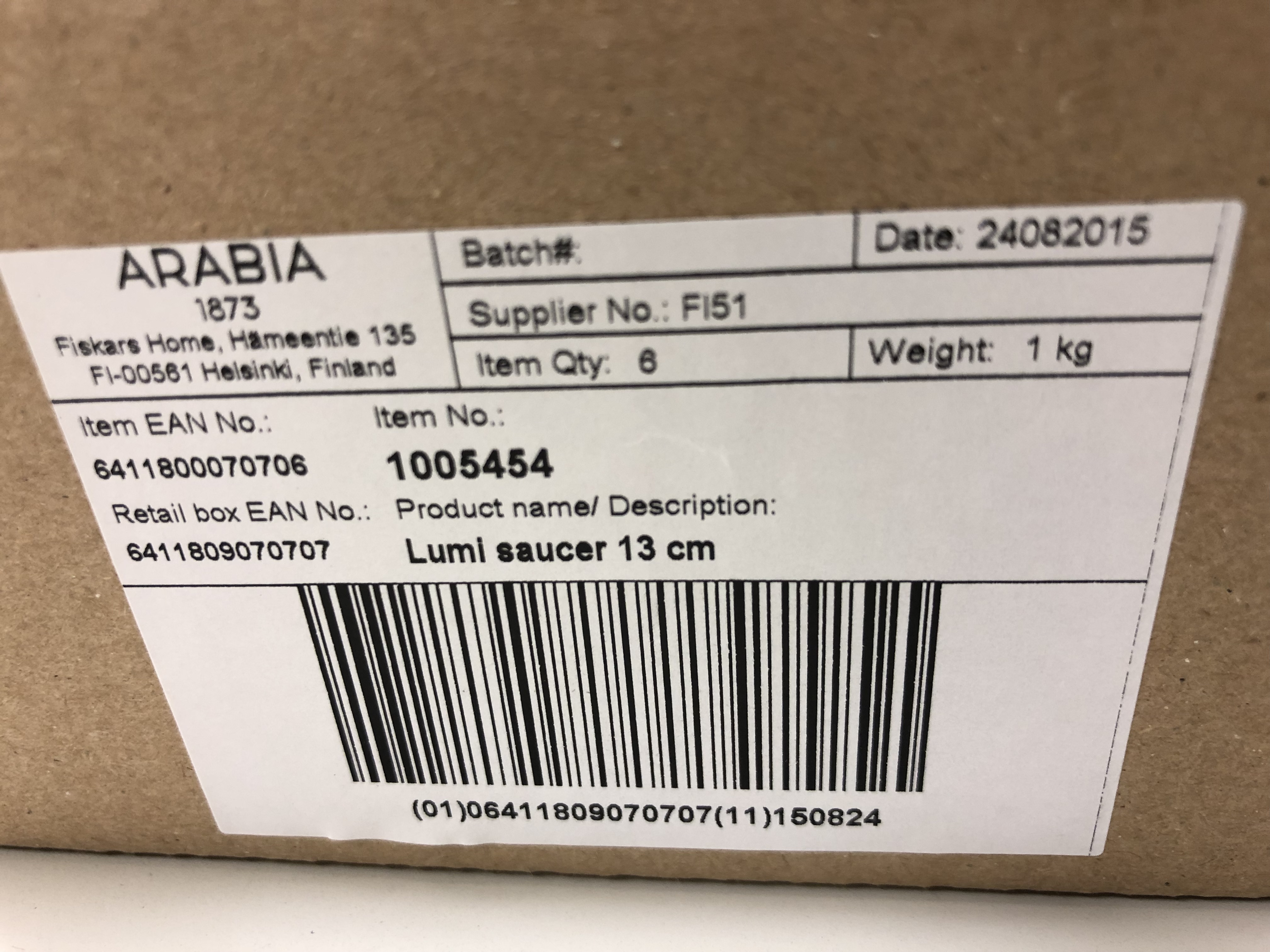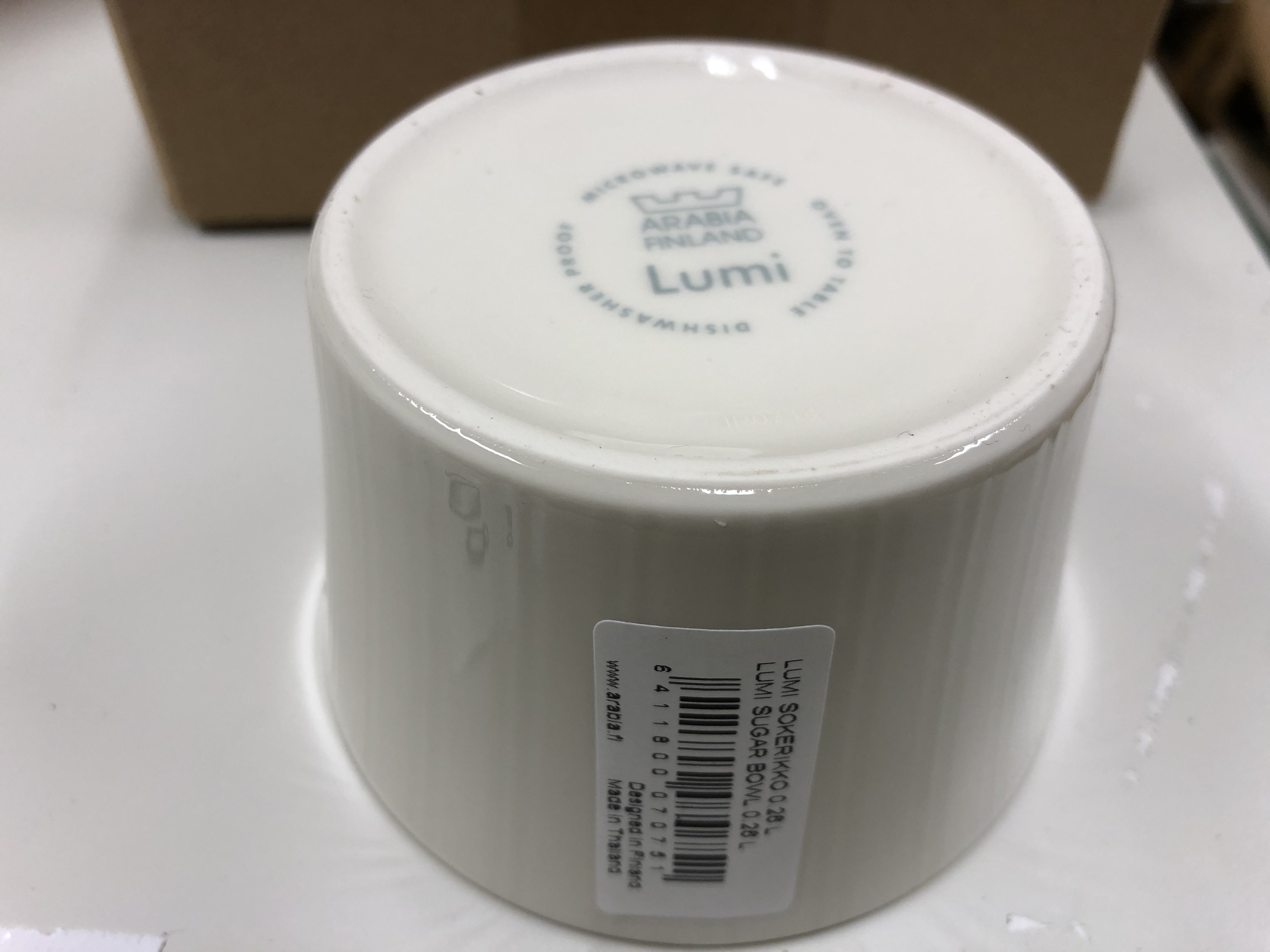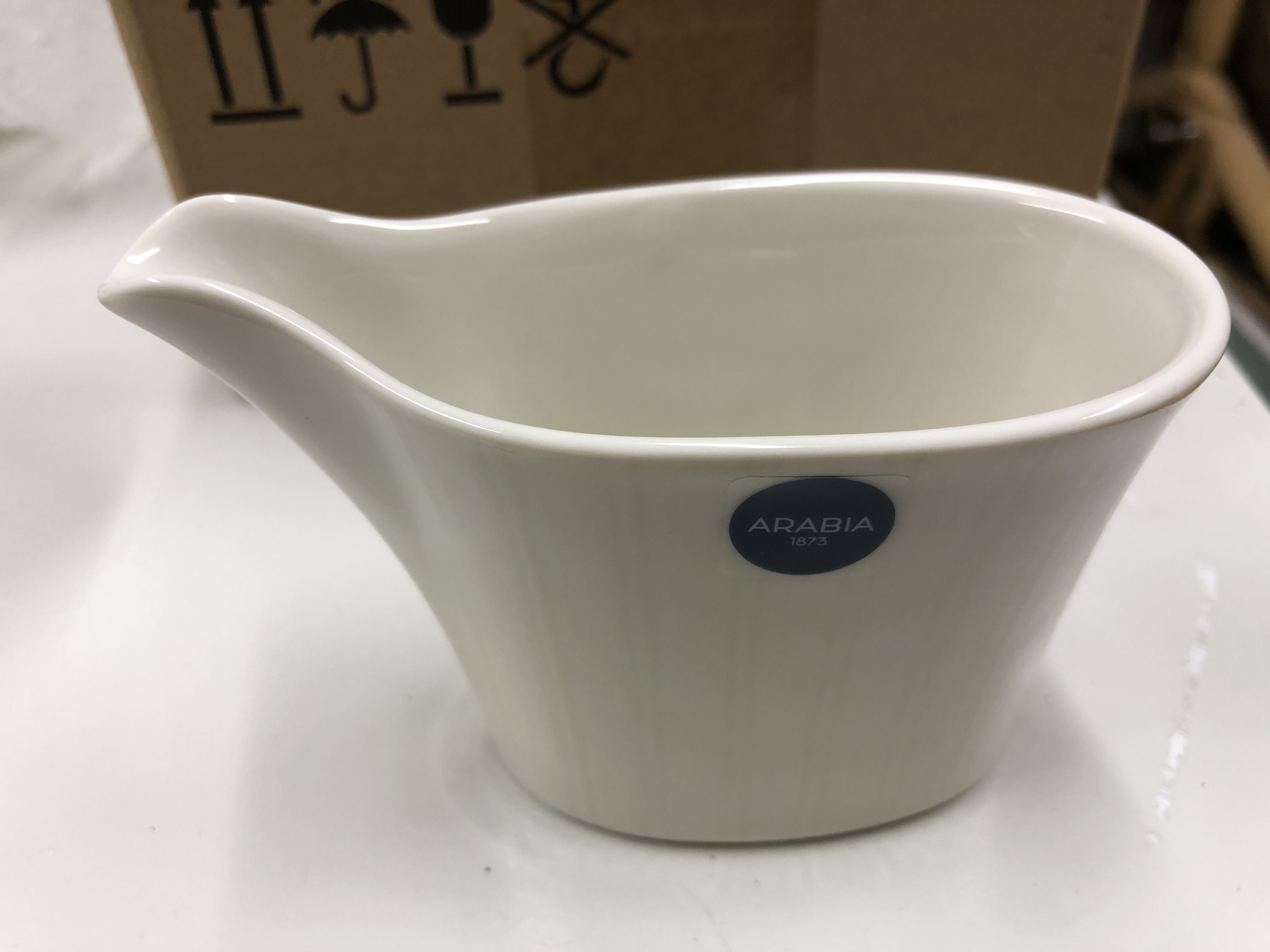 - 10 hengen käyttämätön Aribia Lumi -arvoastiasto (Design Heikki Orvola) tehtaan pakkauksissa