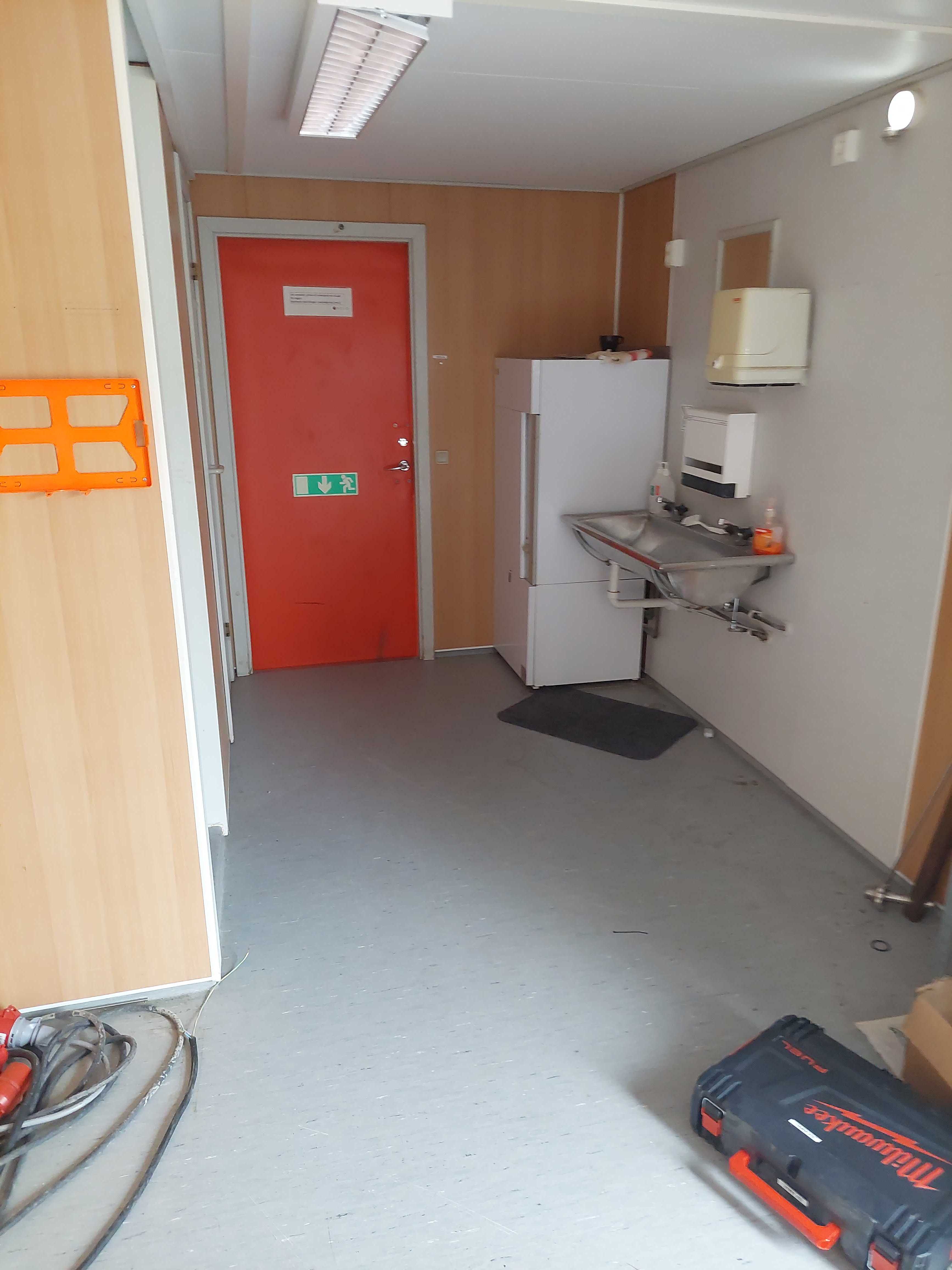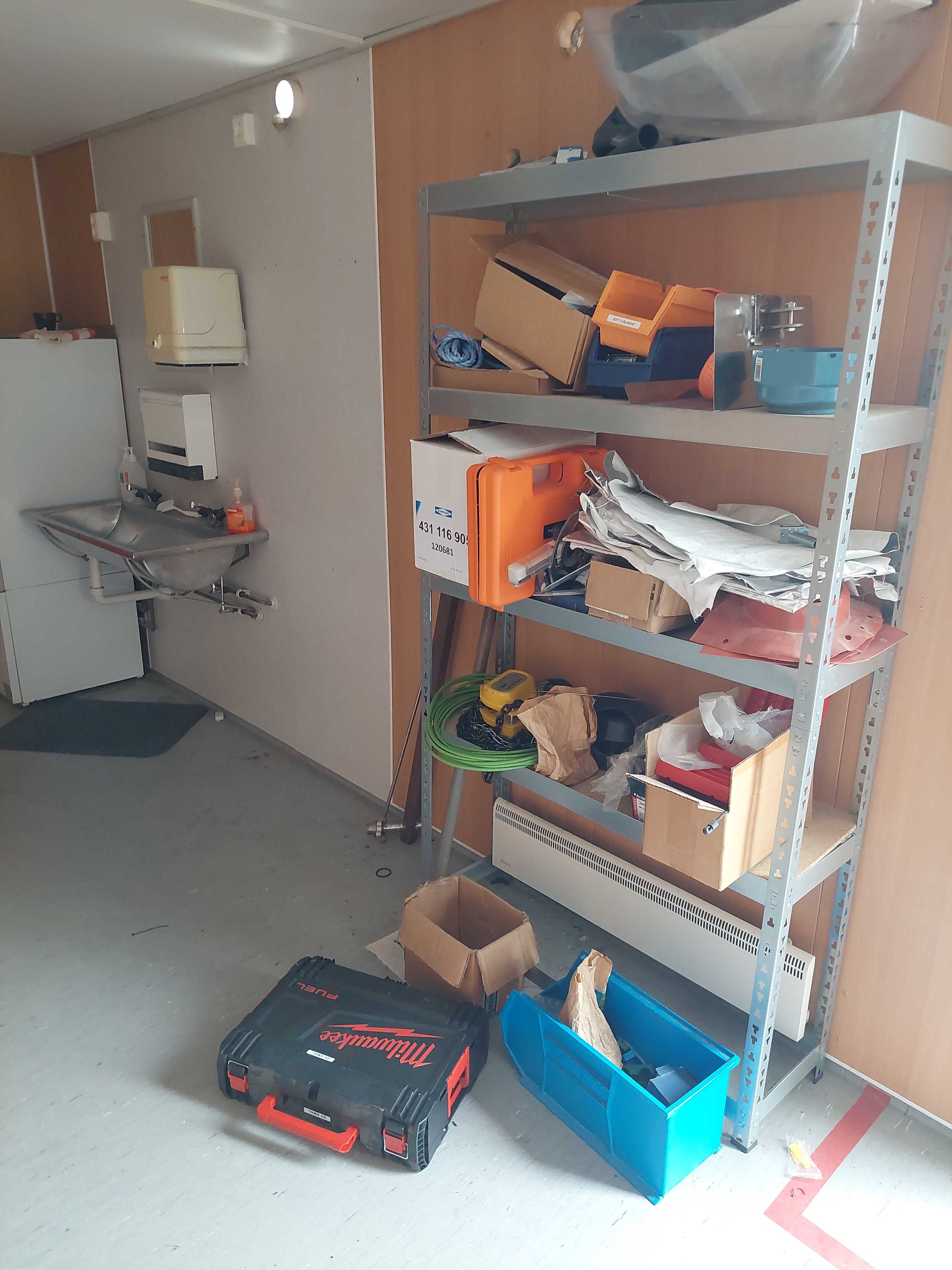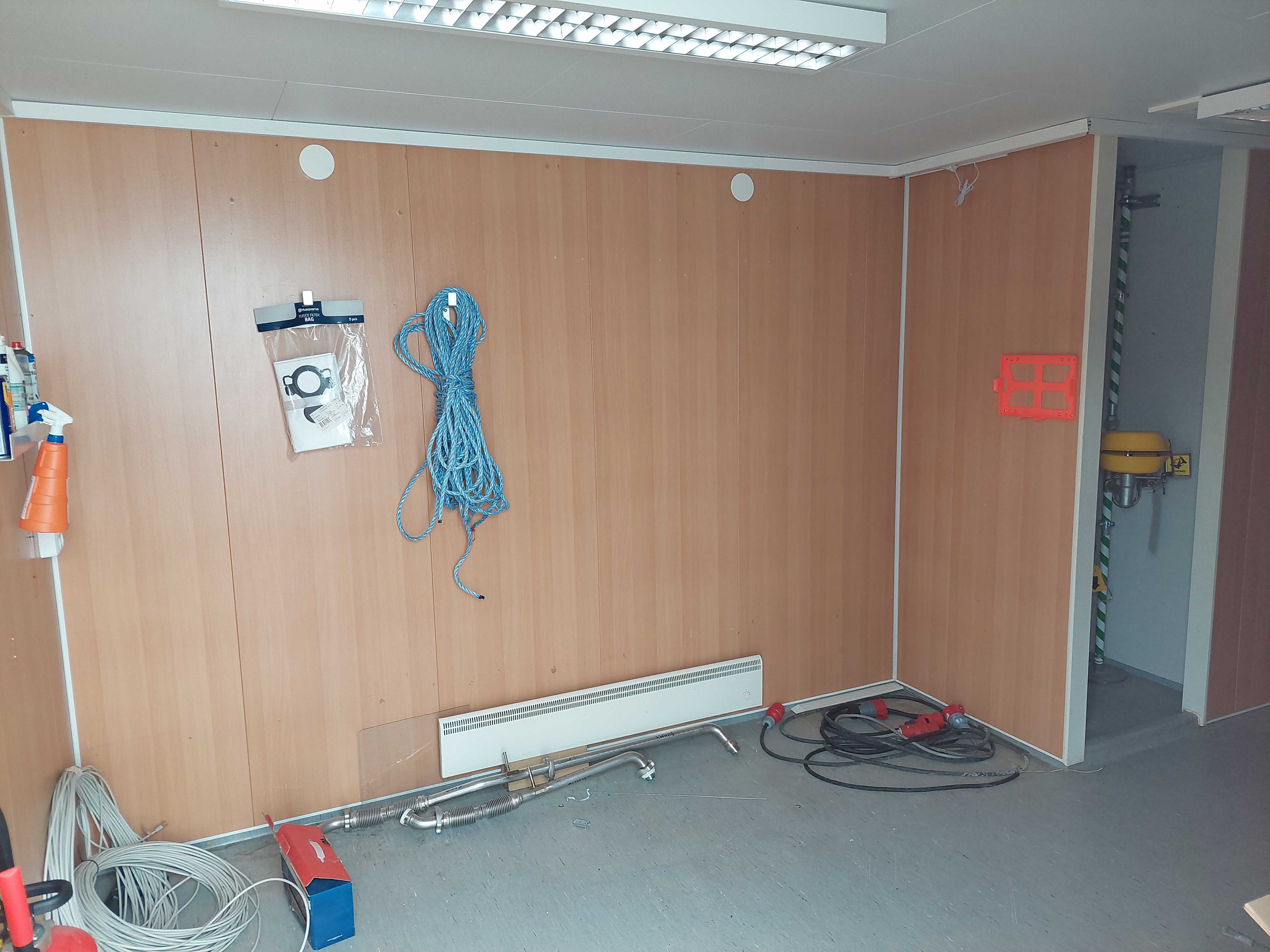Crew shed, Barrack 10x3 meters. Changing room, toilet, fridge, microwave, water heater, wash basin, 2 office chairs. Nothing else in the pictures is included.