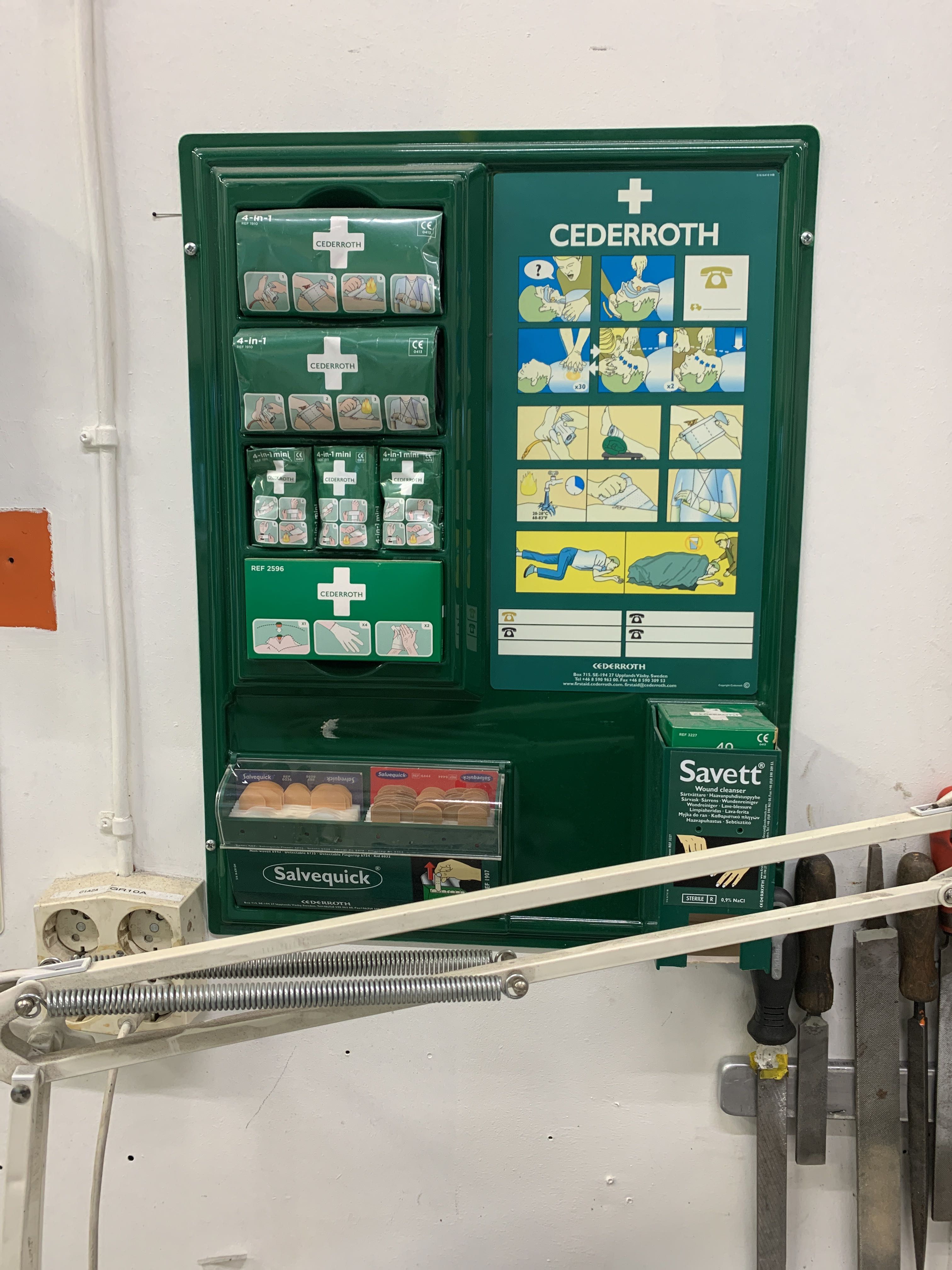Also included is a vise, tool board with tools, first aid board with eyewash..