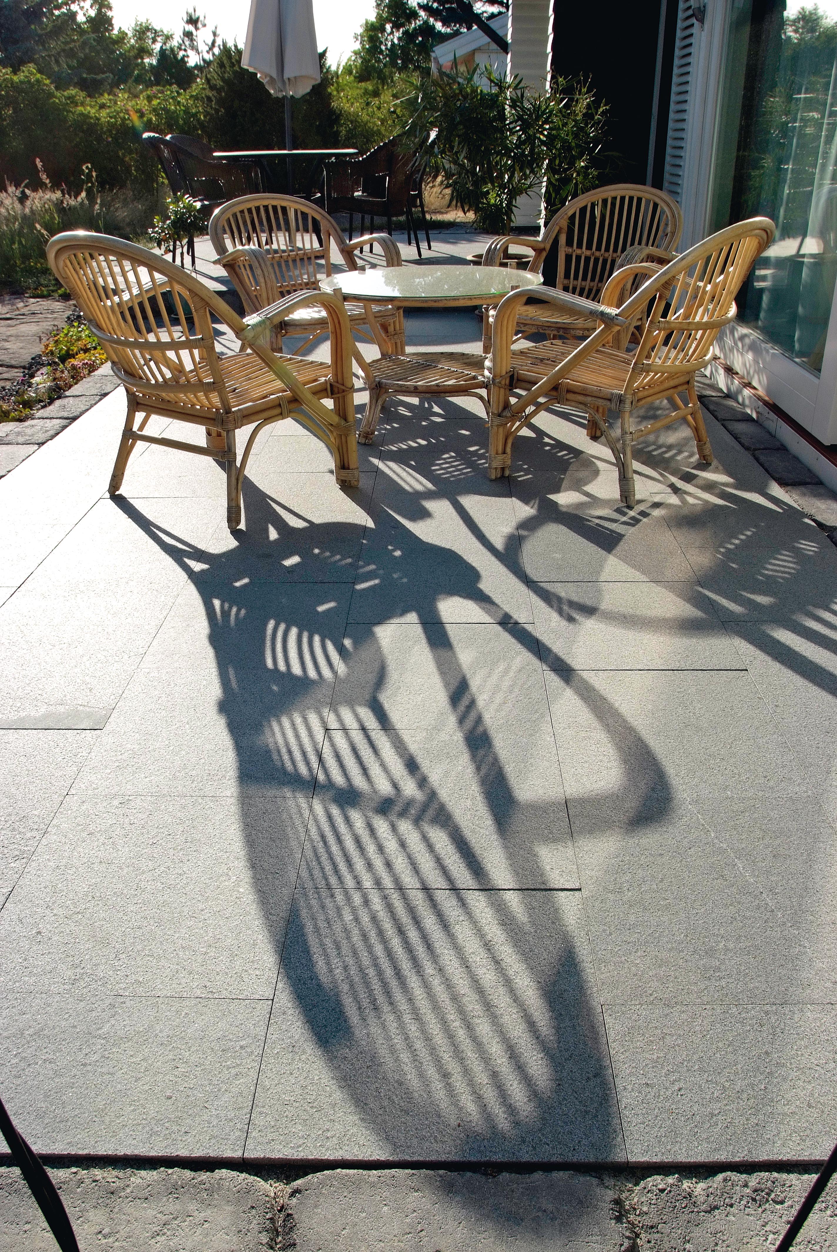Natural stone slabs in flamed granite. 30 mm fits perfectly indoors, outdoors or in, for example, glazed conservatories.