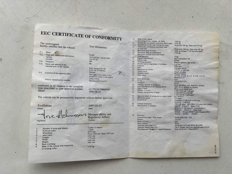 Here is an opportunity for the Saab enthusiast to purchase a well-preserved Saab 9000 from 1997.