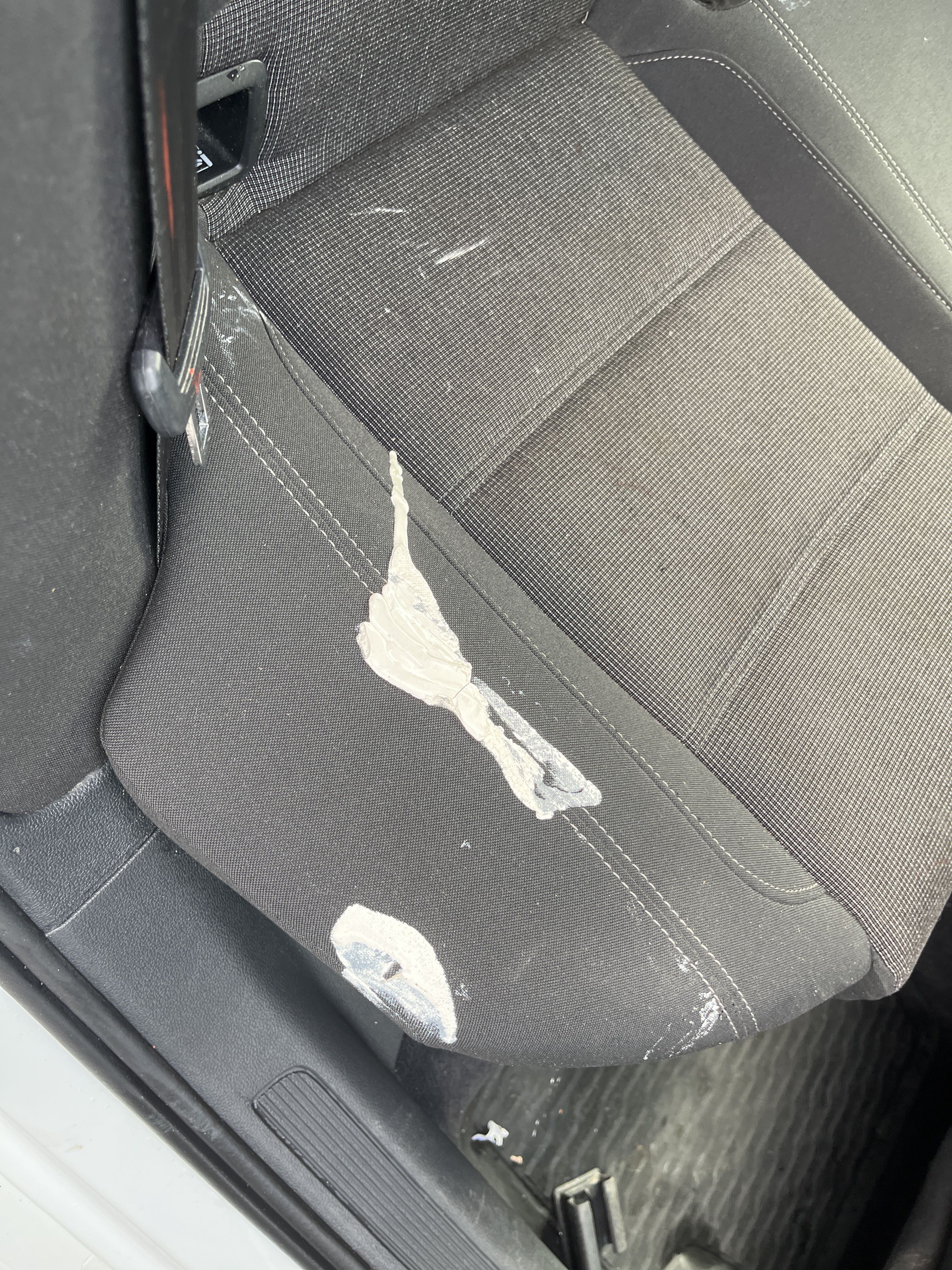 There are marks, scratches and other wear. The interior has color spots in the fabric.