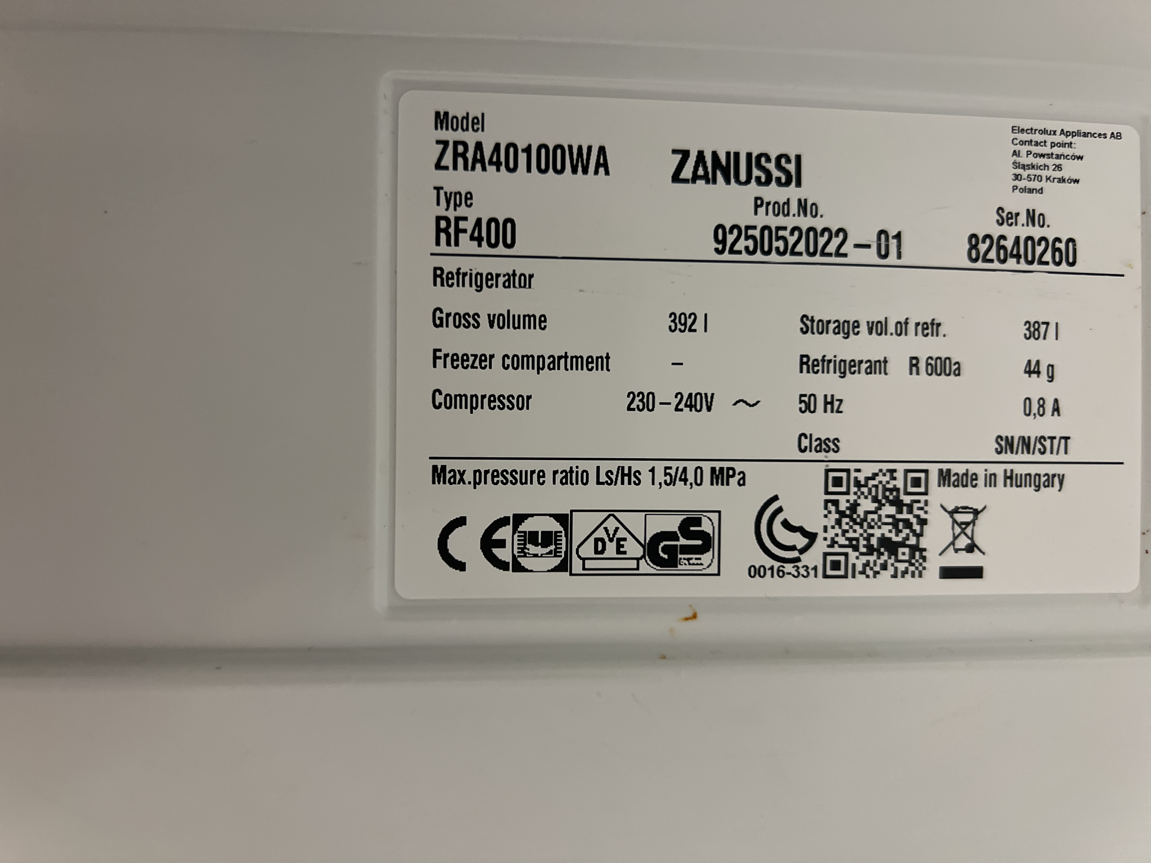 - Manufacturer: Zanussi