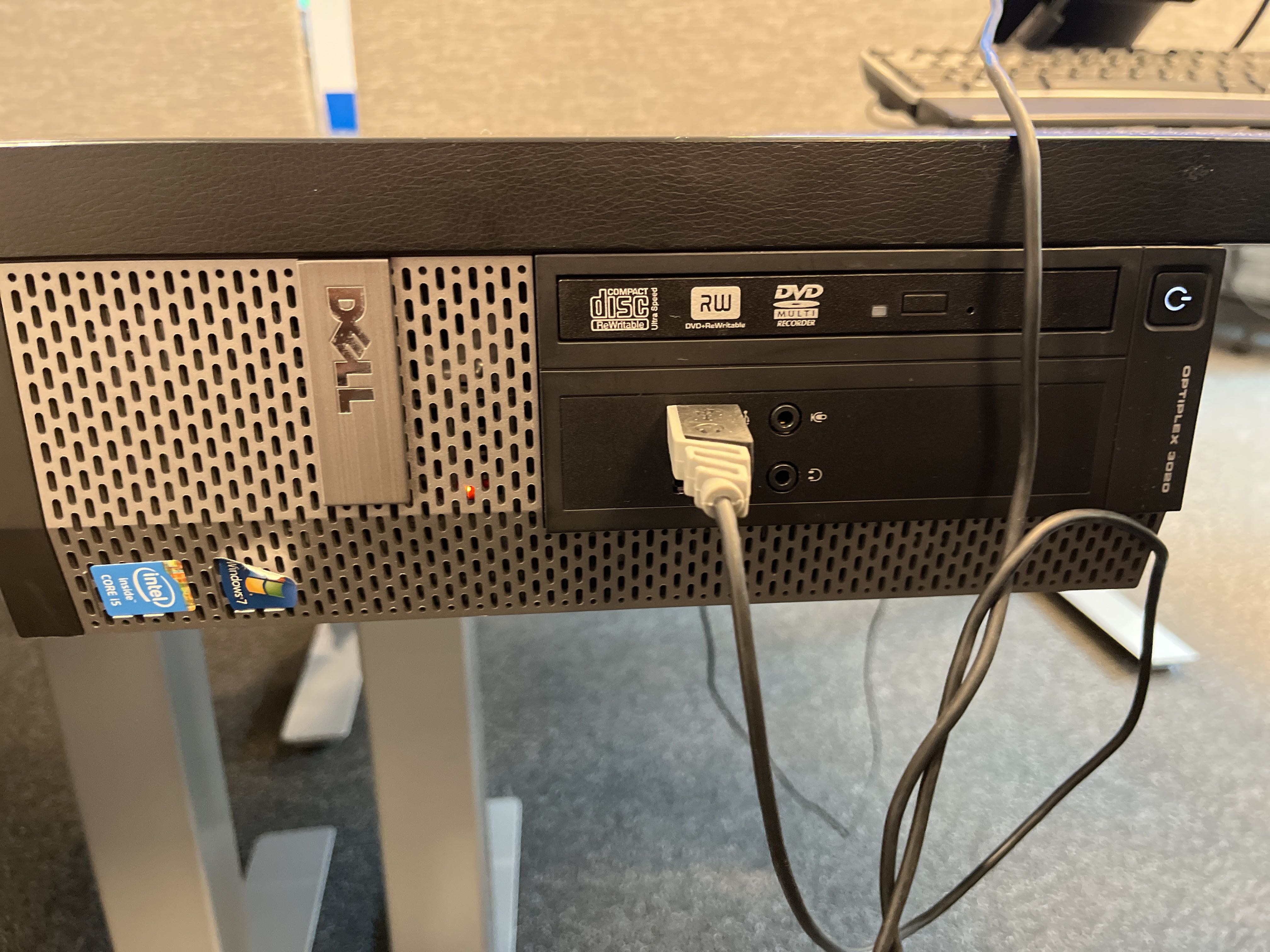 Computer, screen, keyboard, mouse and headphones
