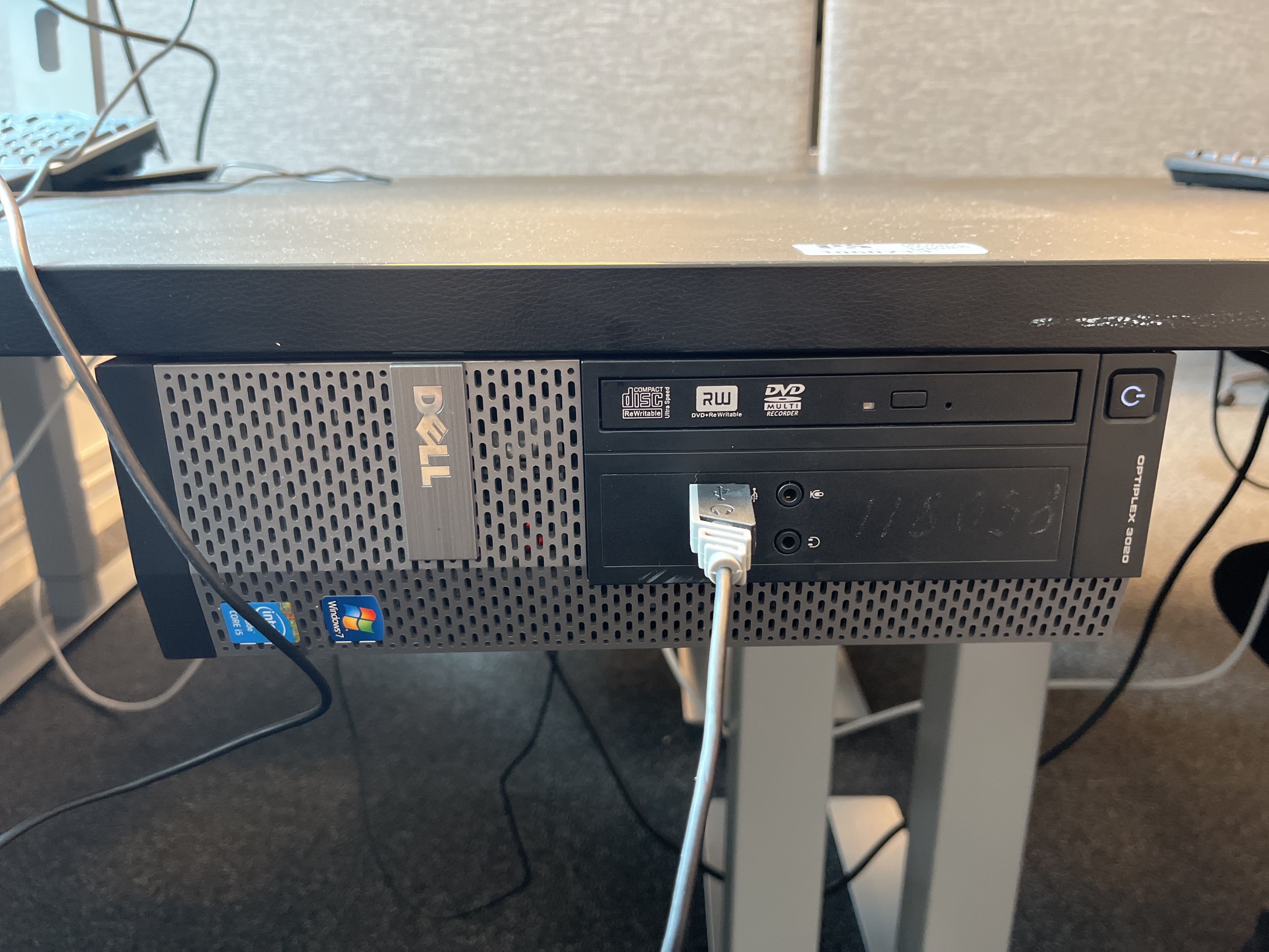 Computer, screen, keyboard, mouse and headphones