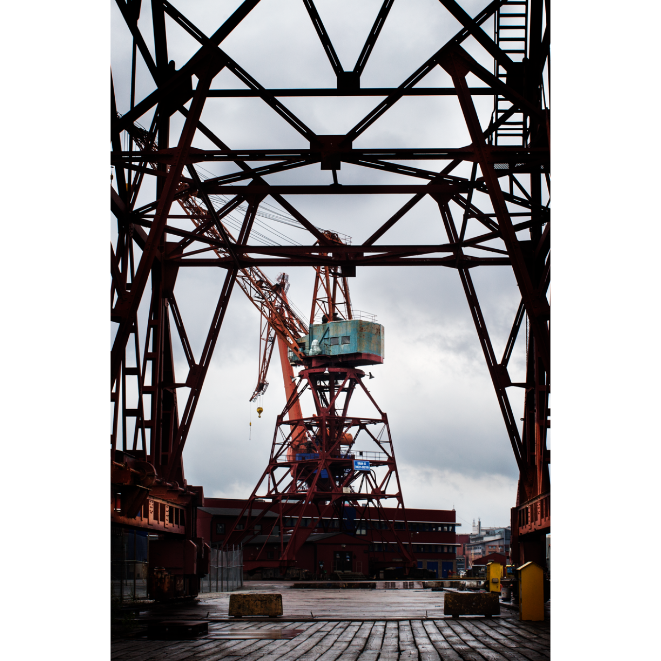 Art photographer Lena Öritsland's work "Crane 42 between crane legs" printed on aluminum composite and a signed copy of the book "Legacy after Warven". Raw, beautiful and timeless! Through her camera lens, Lena Öritsland manages to capture exactly what is the essence of Gothenburg.