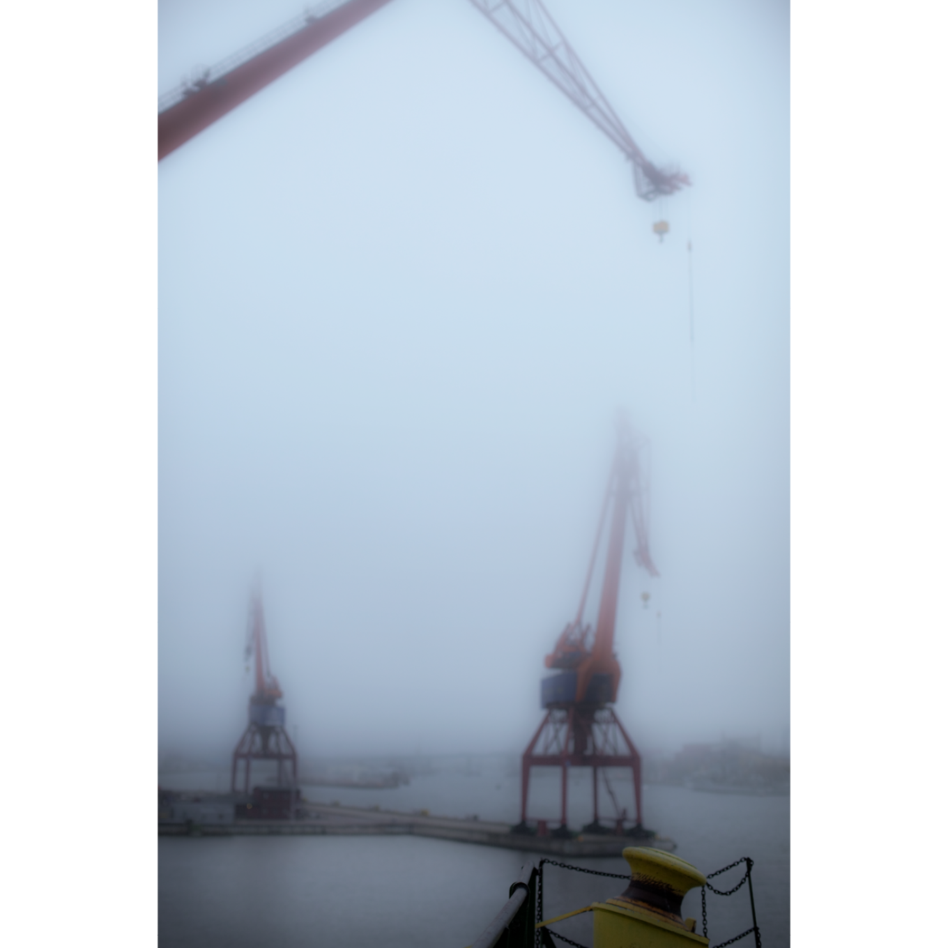 Please note that it is the photograph "Kran 42 between crane legs" and the book "Legacy after the shipyards" that make up the object you are bidding on, other images from the exhibition are only inspiration. The exhibition will remain at the Maritime Museum until December 2023