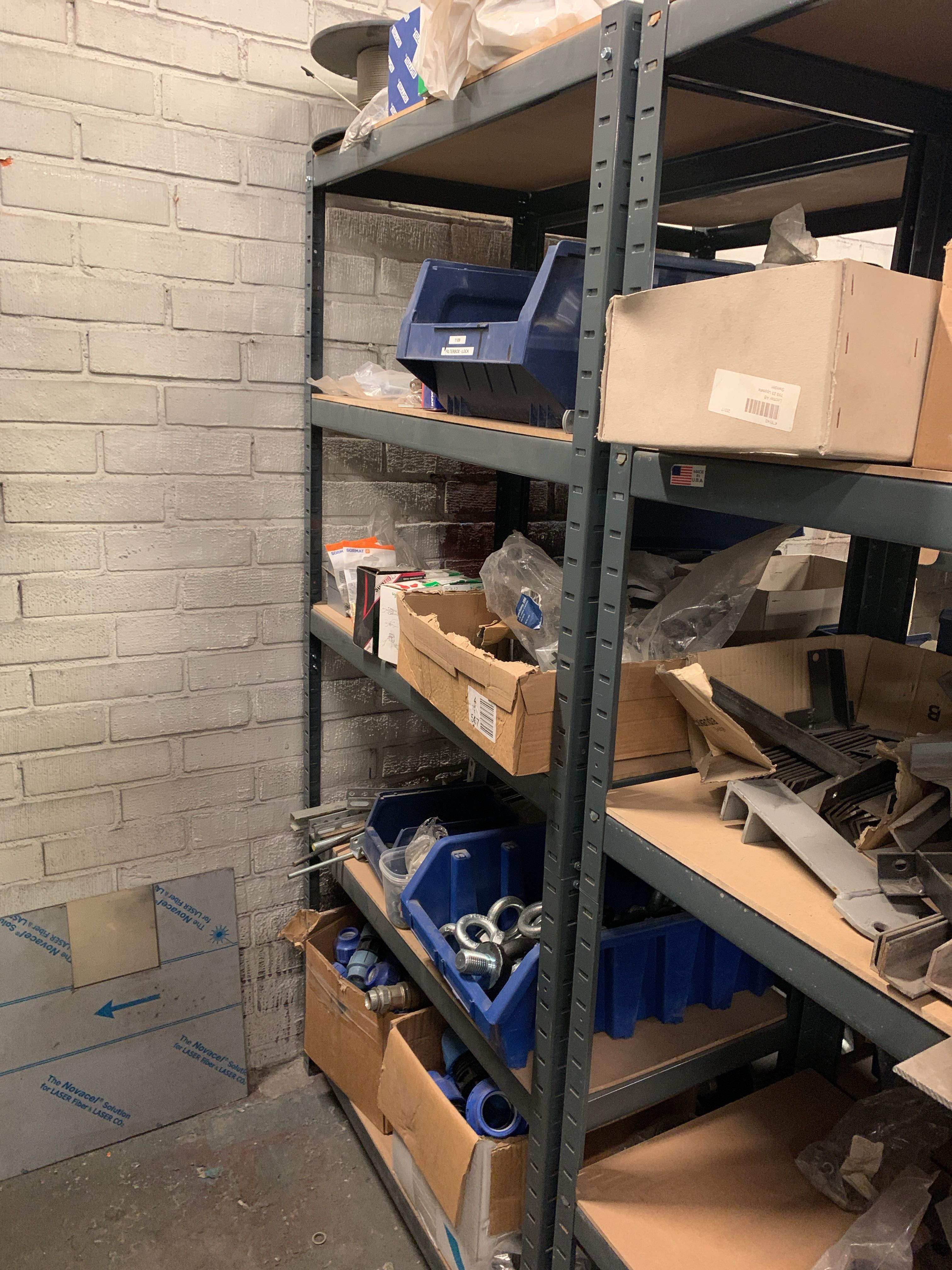 A pallet with unassembled shelves is also included, it is unclear how many there are.