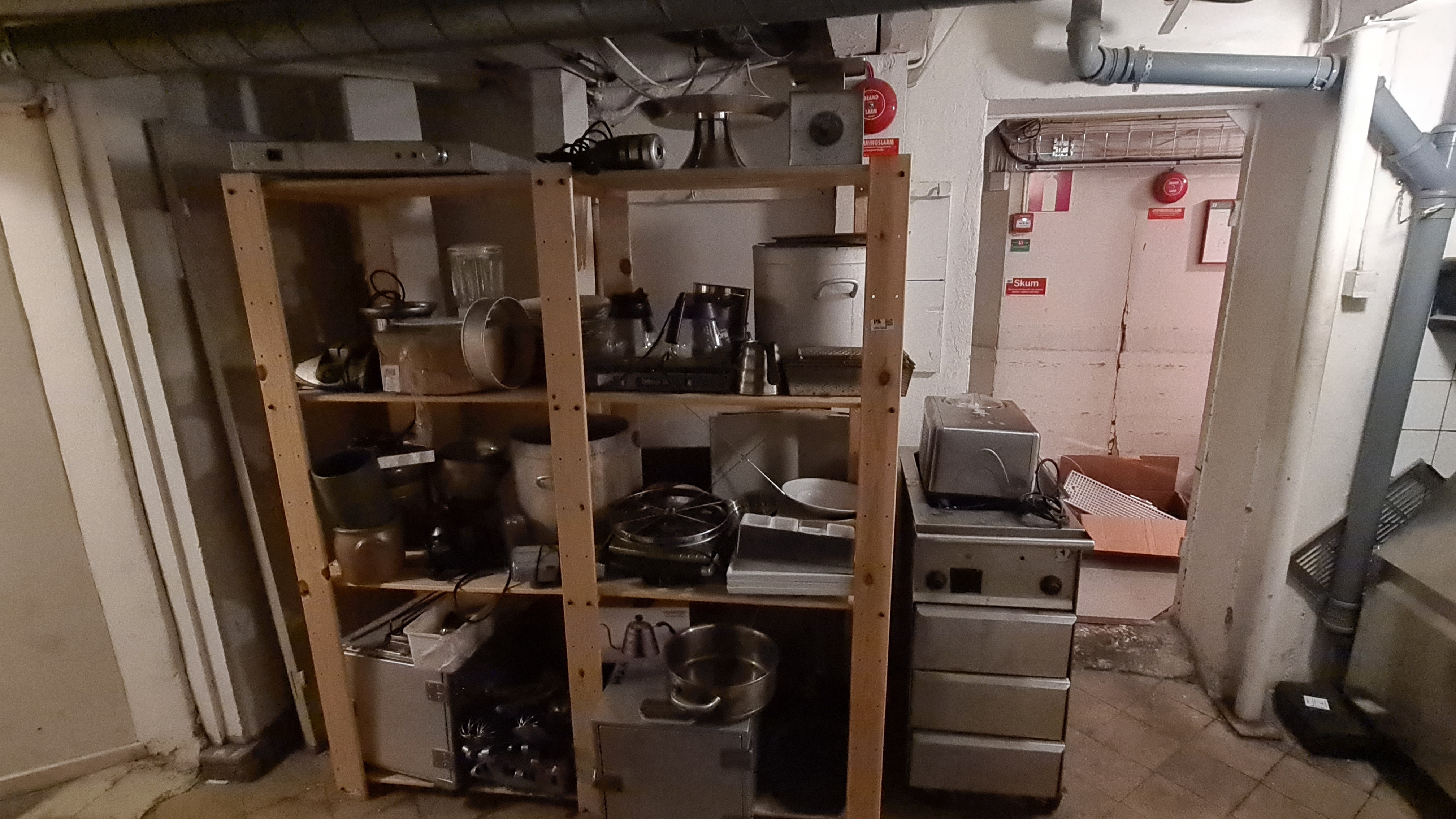 Everything in the storeroom - 2 shelves with various kitchen utensils