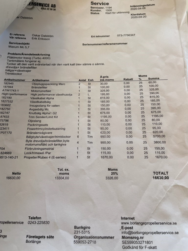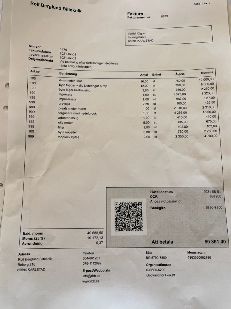 The boat is mostly driven in fresh water and has not been used in the last 2 years, therefore the owner has chosen to sell the boat due to lack of time.