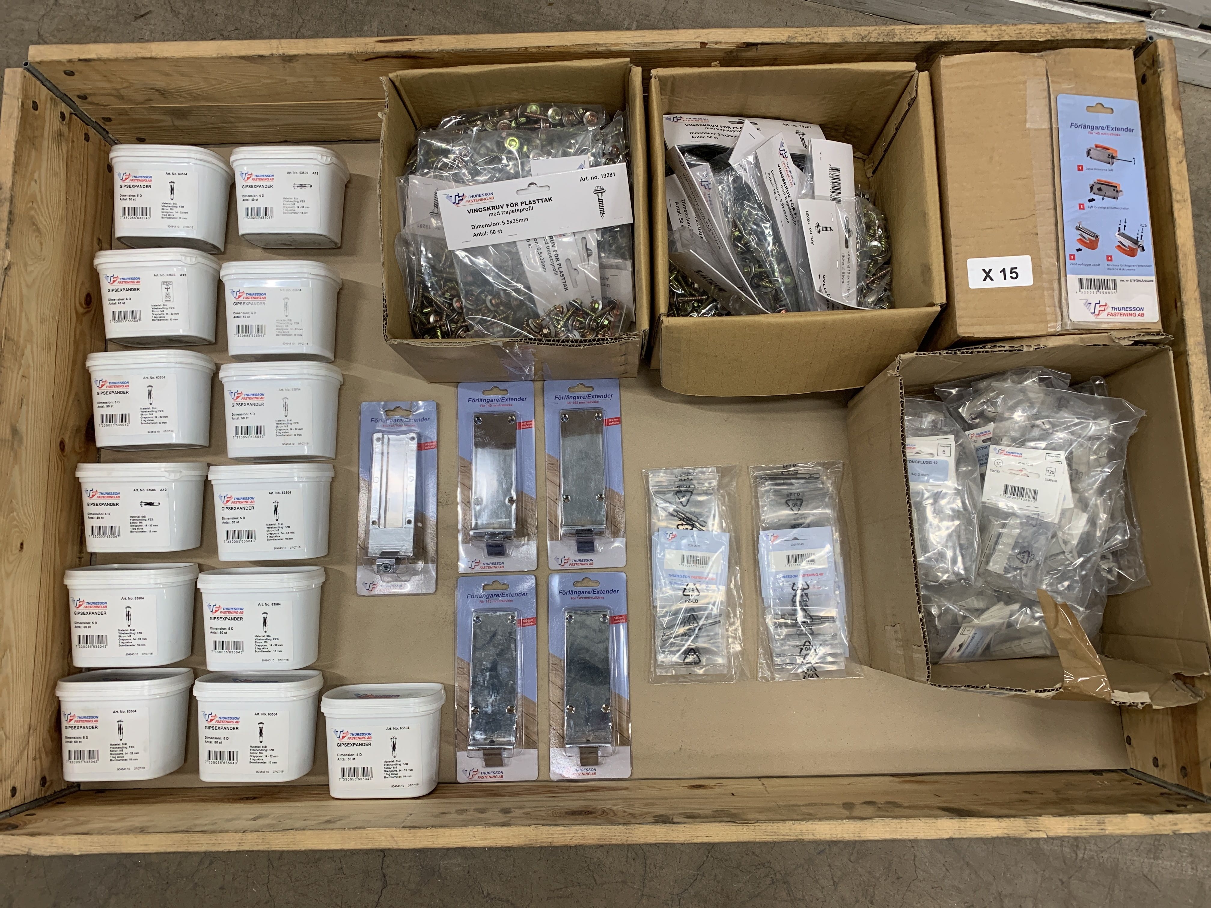 Gypsum expander, wing screw, lightweight concrete plug, bit & extender, Thuresson Fastening as shown in pictures.