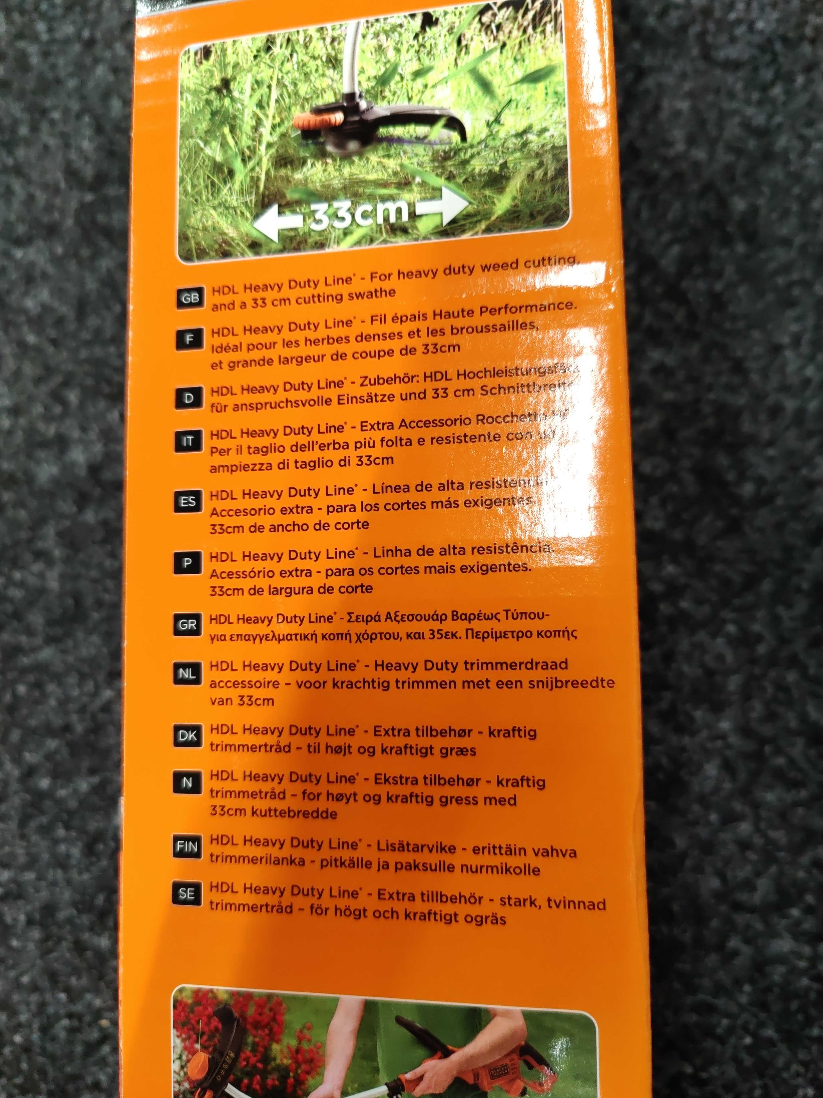 The Black & Decker GL8033-QS is an 800 W grass trimmer with a cutting width of 33 cm and a cutting speed of 7000 rpm. Equipped with extra thick trimmer wire for cutting weeds. The trimmer is well balanced and has a top-positioned motor, which provides high control and convenience. The rotatable trimming head and edging wheel provide easy and good edge trimming of lawn areas.
