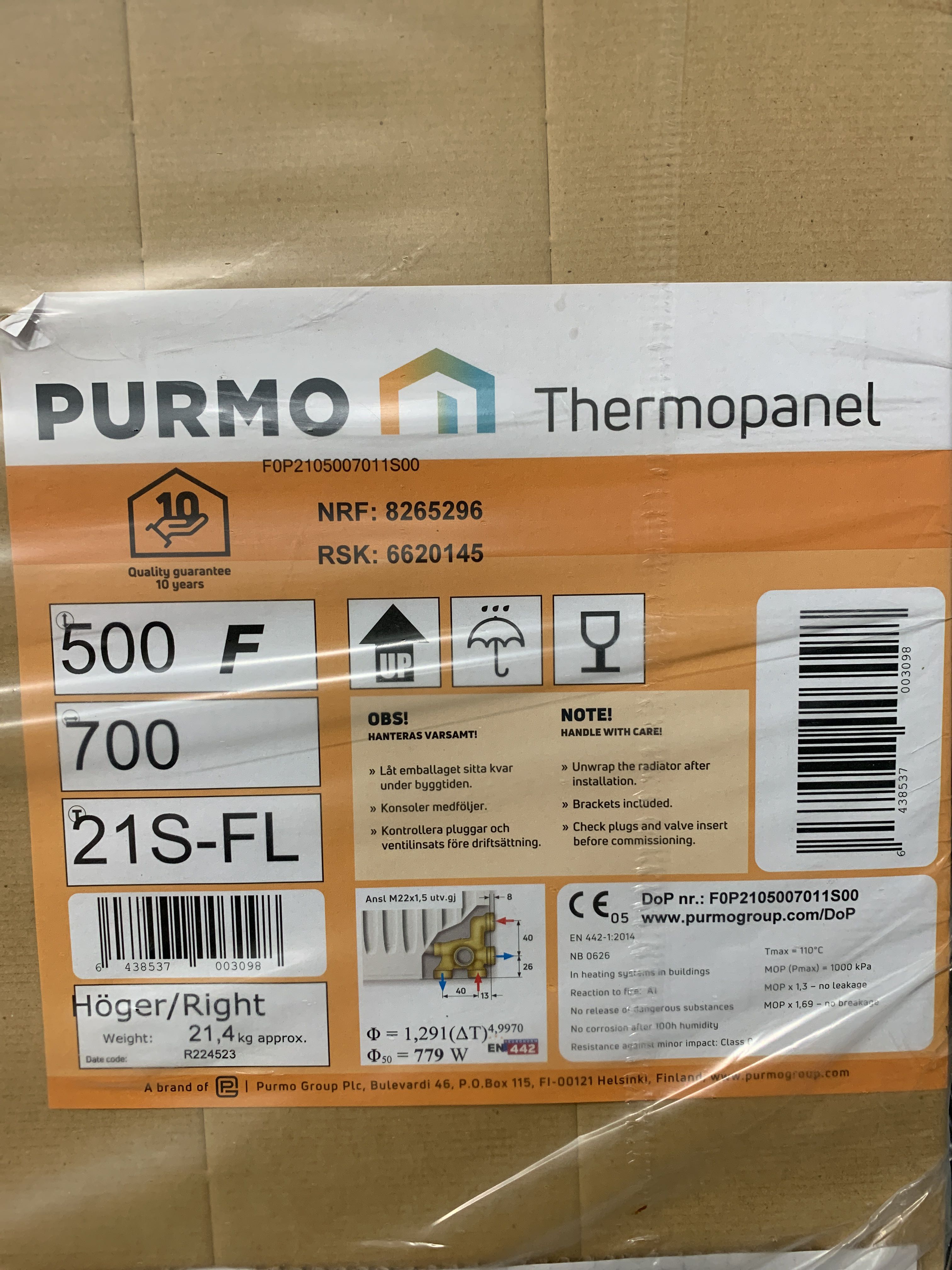 Heat output 20°C - 75/65 (EN 442) 779 W