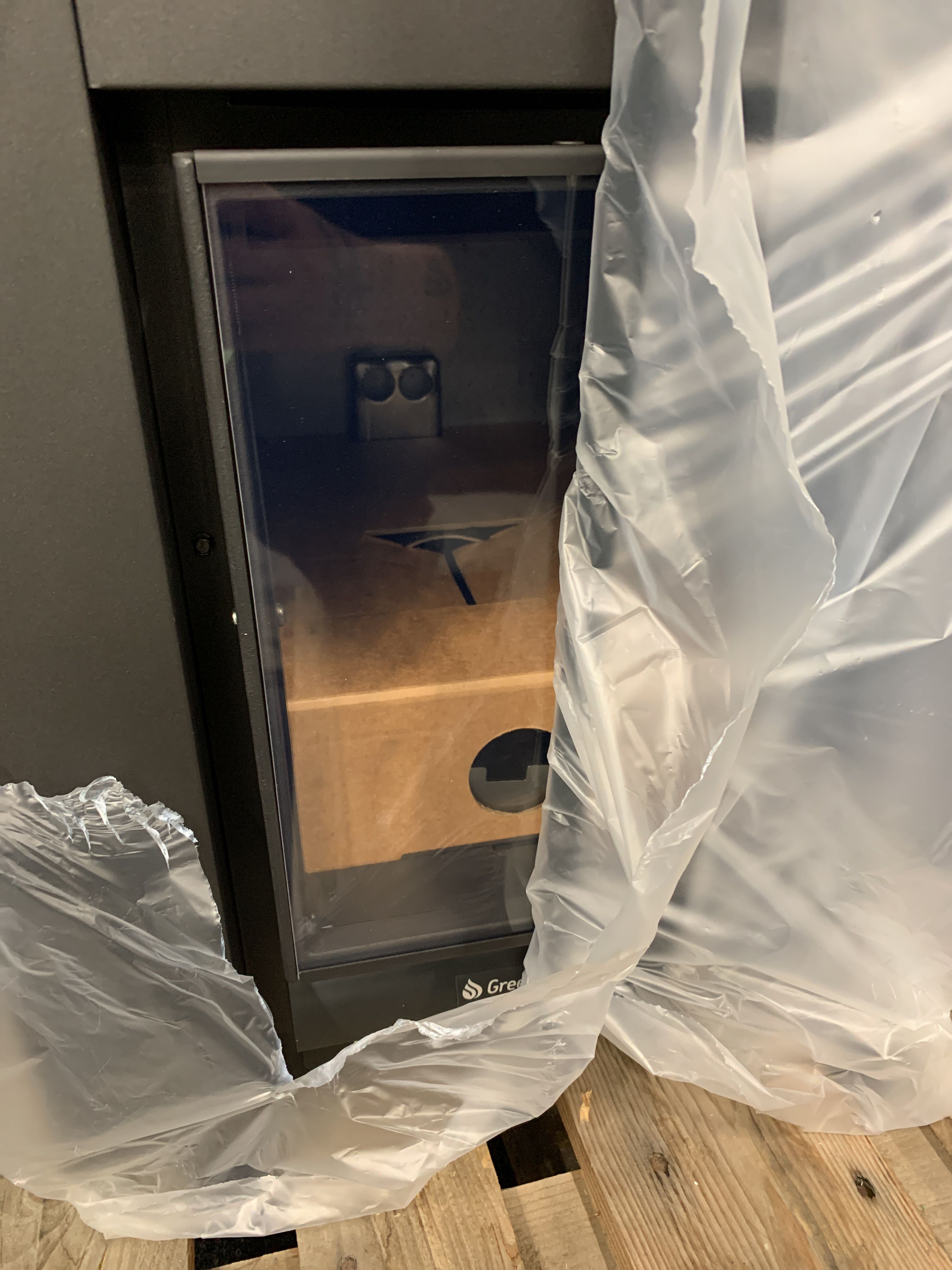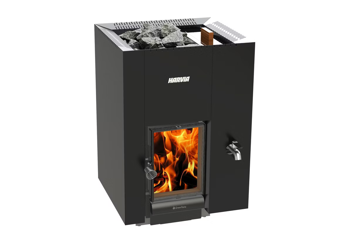 • Linear GreenFlame is a wood-burning sauna stove with a large glass door and advanced combustion technology that gives you cleaner combustion and a longer lifespan.