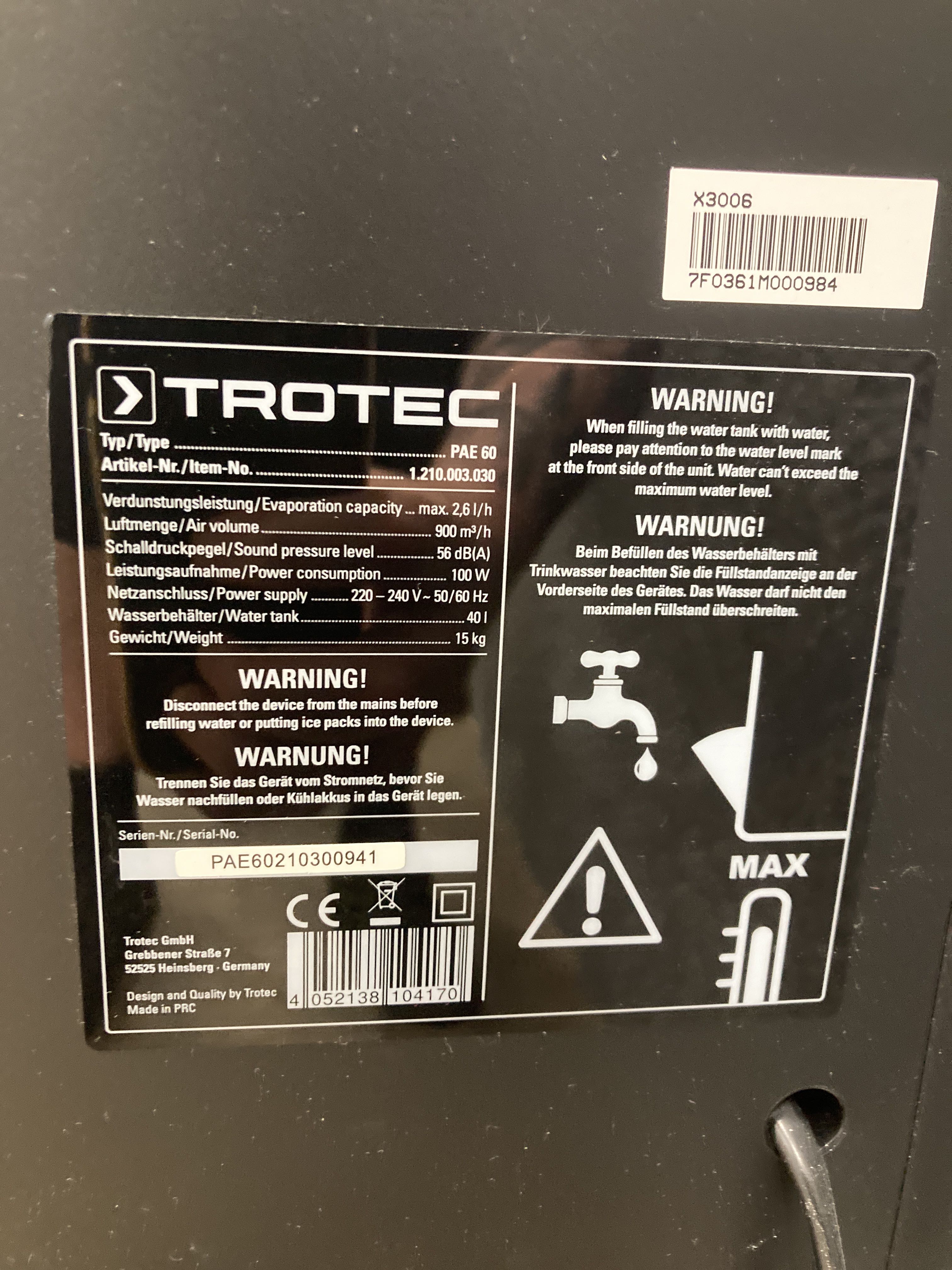 Air cooler Trotec PAE 60