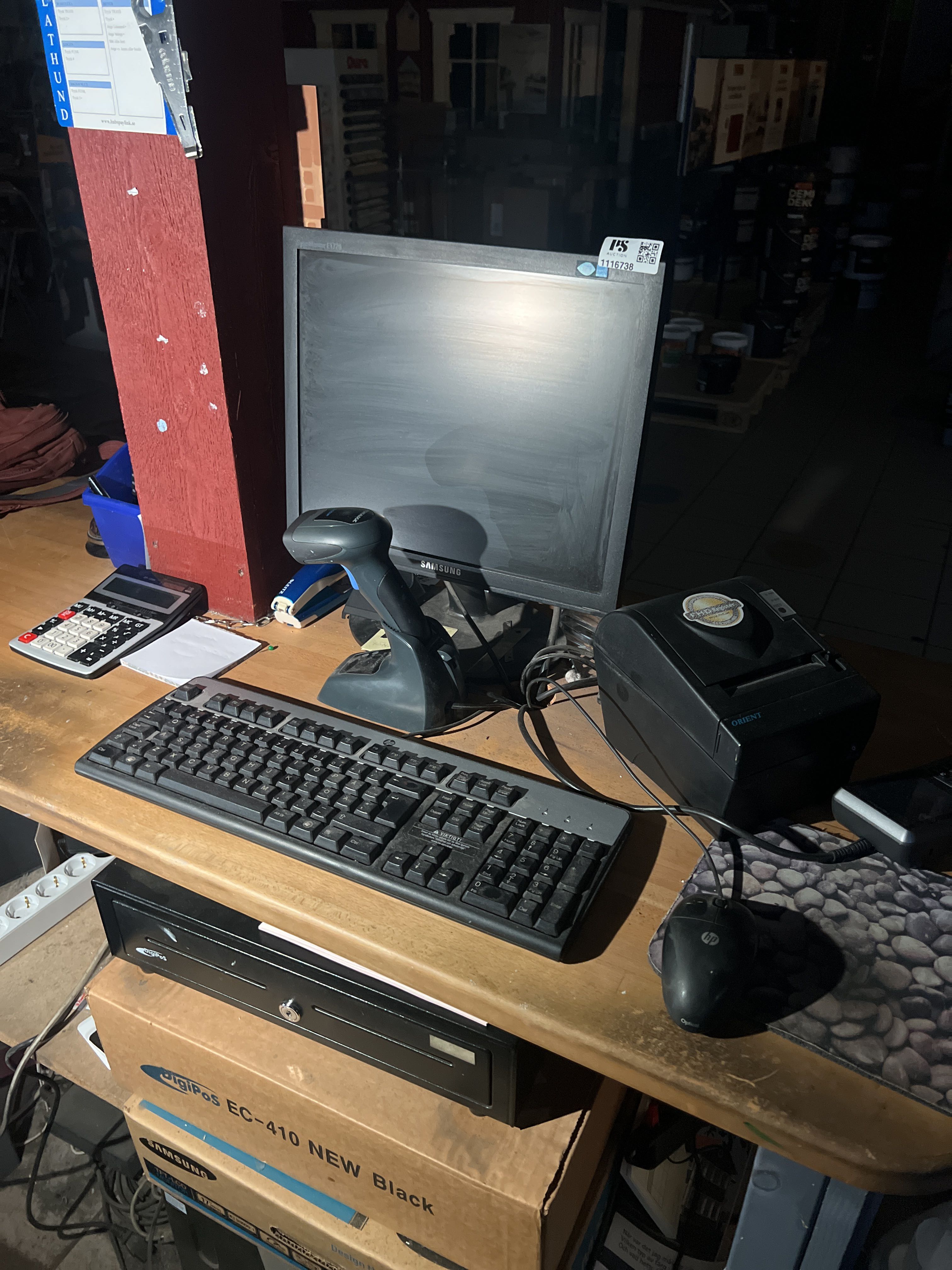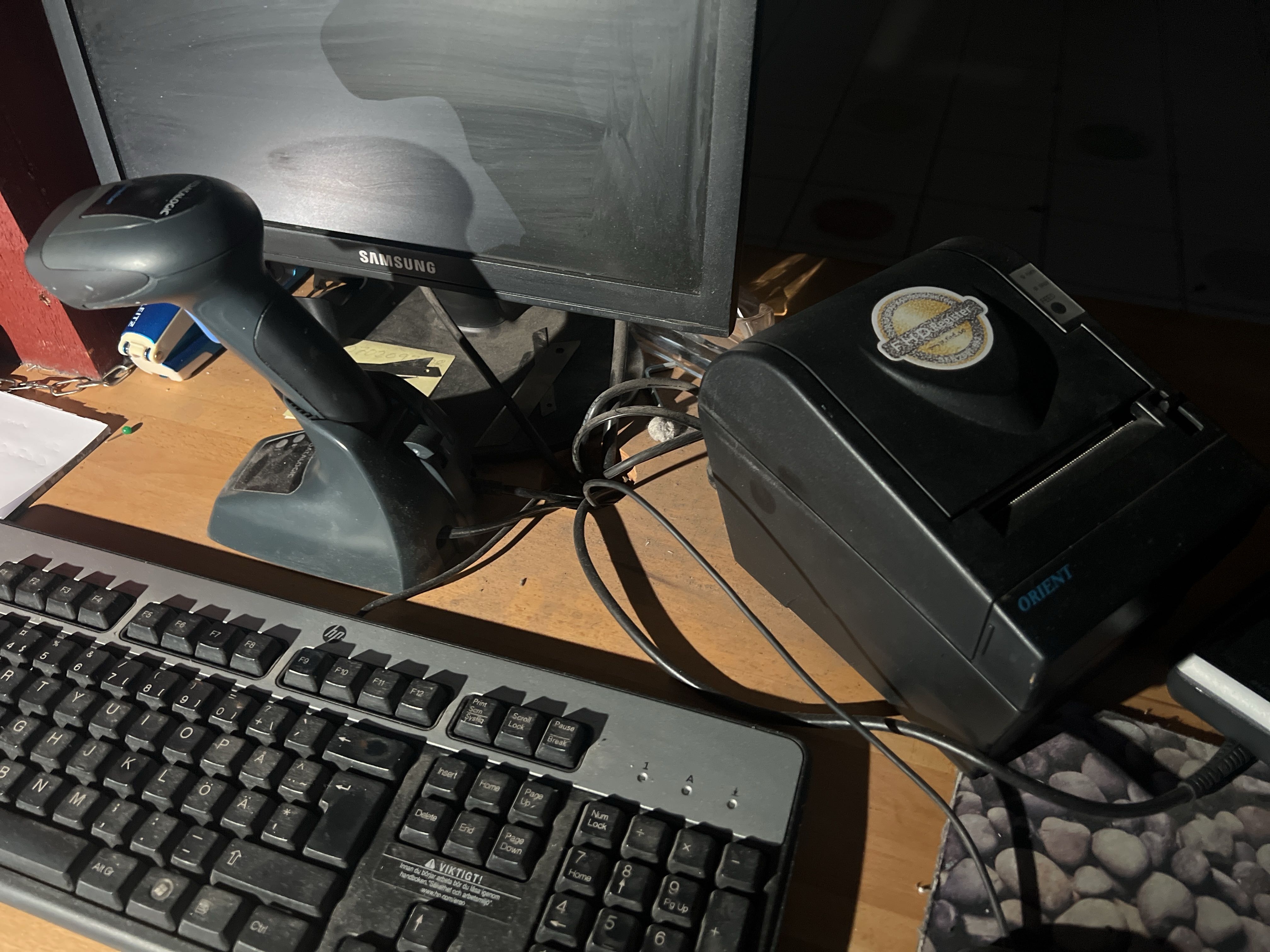 Screen, hand scanner, receipt printer and cash drawer