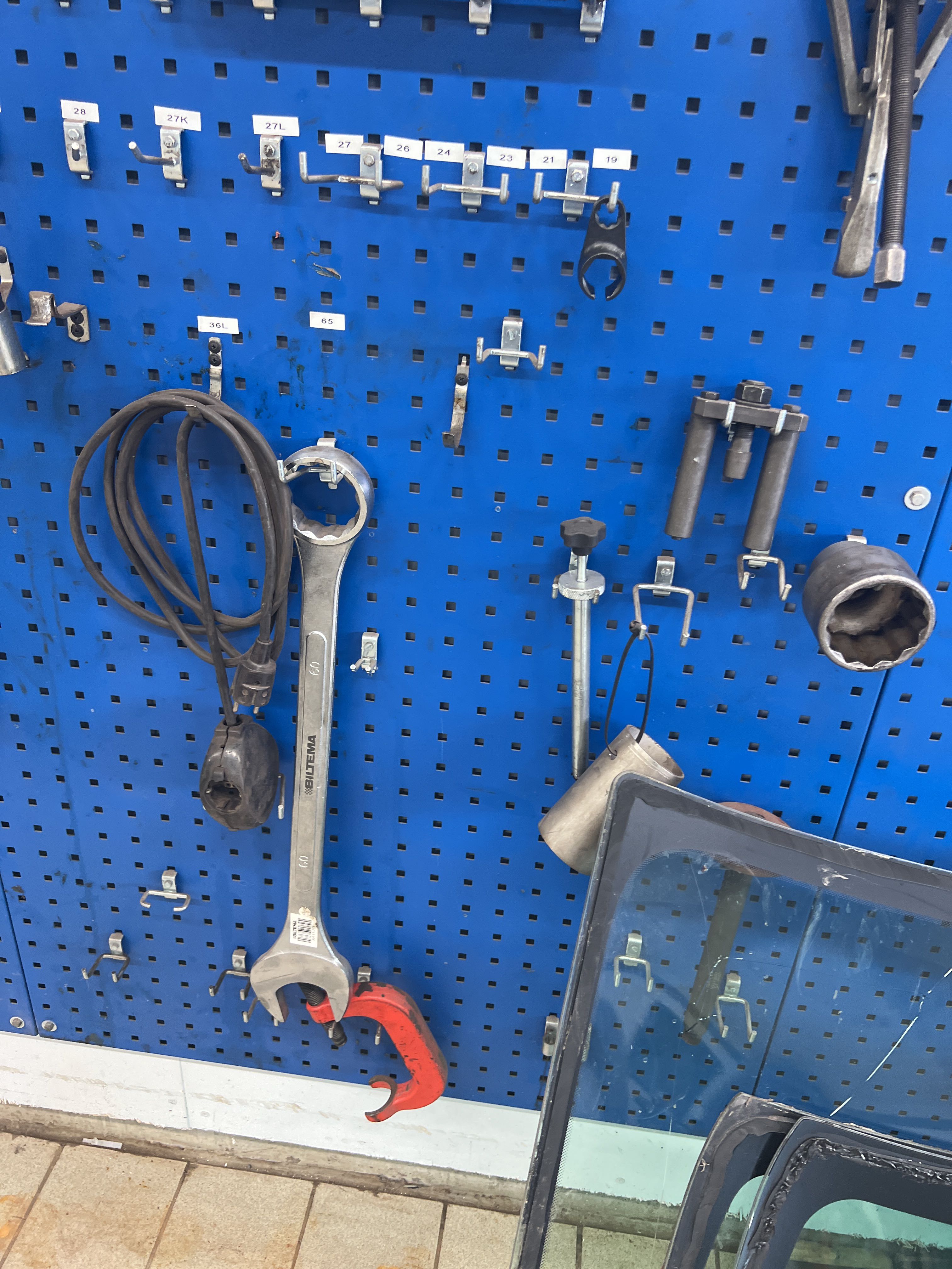 - 4 tool boards mounted on the wall