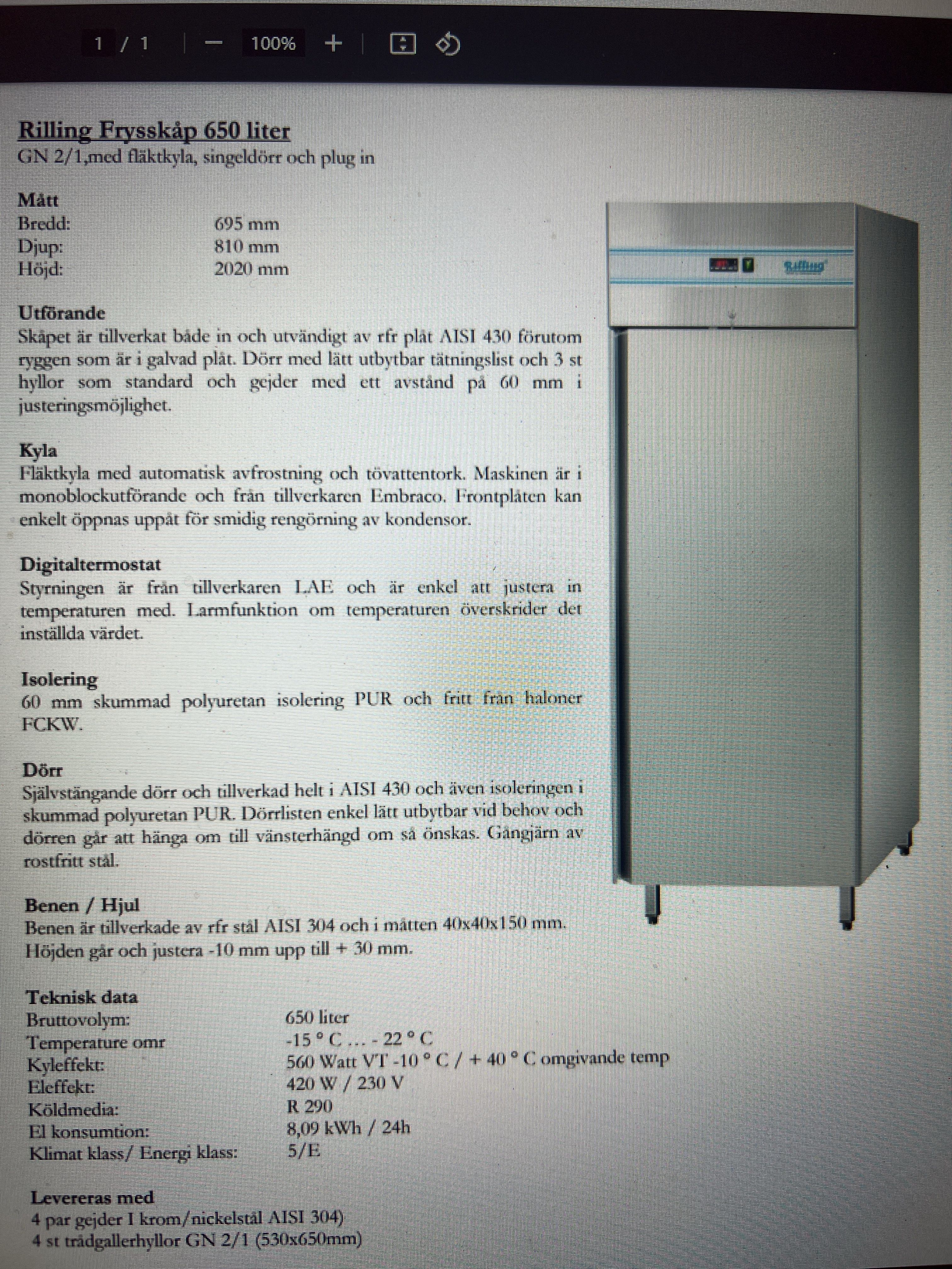 | Measurments | Mått: B 695 × D 810 × H 2020 mm |