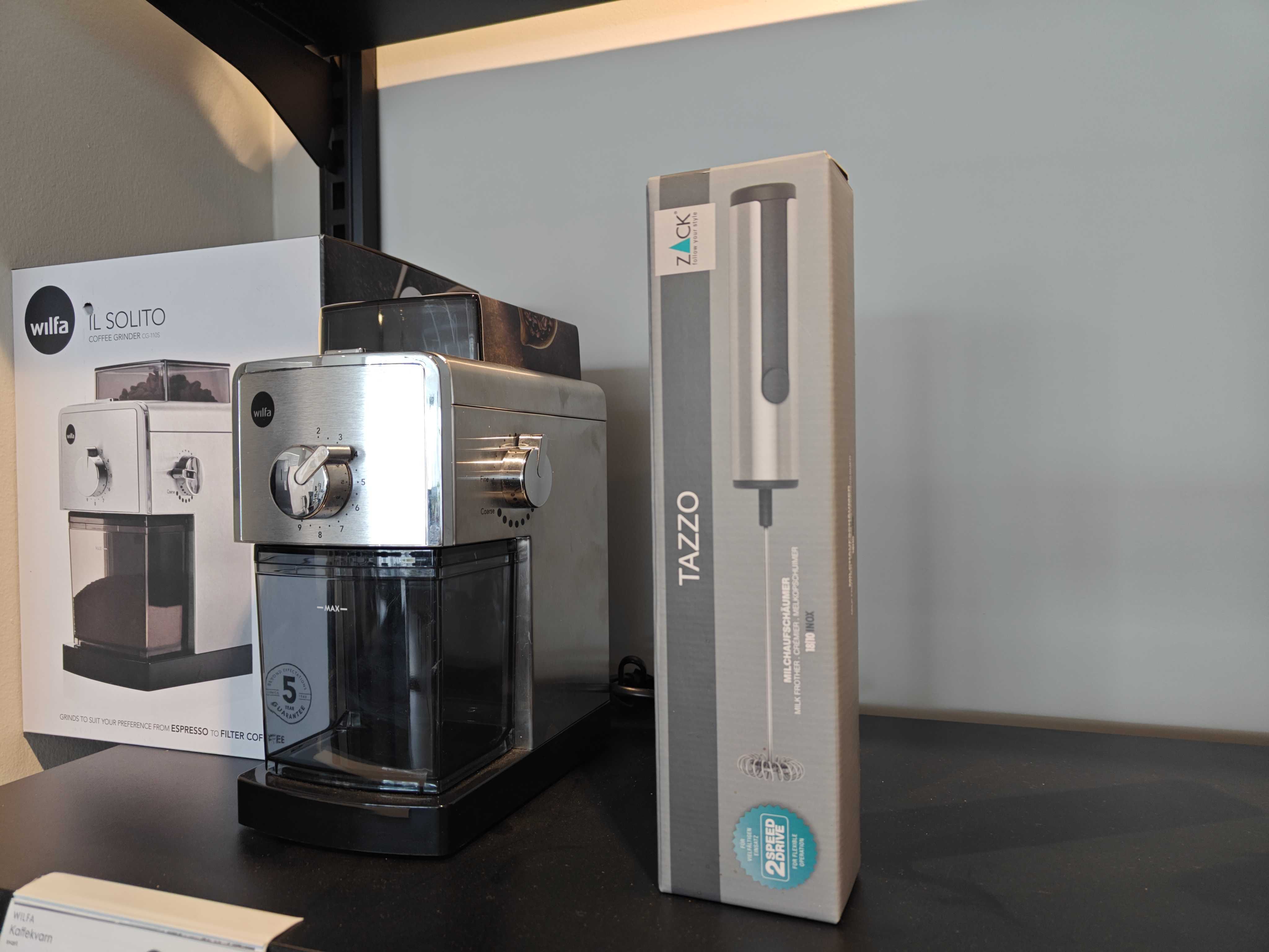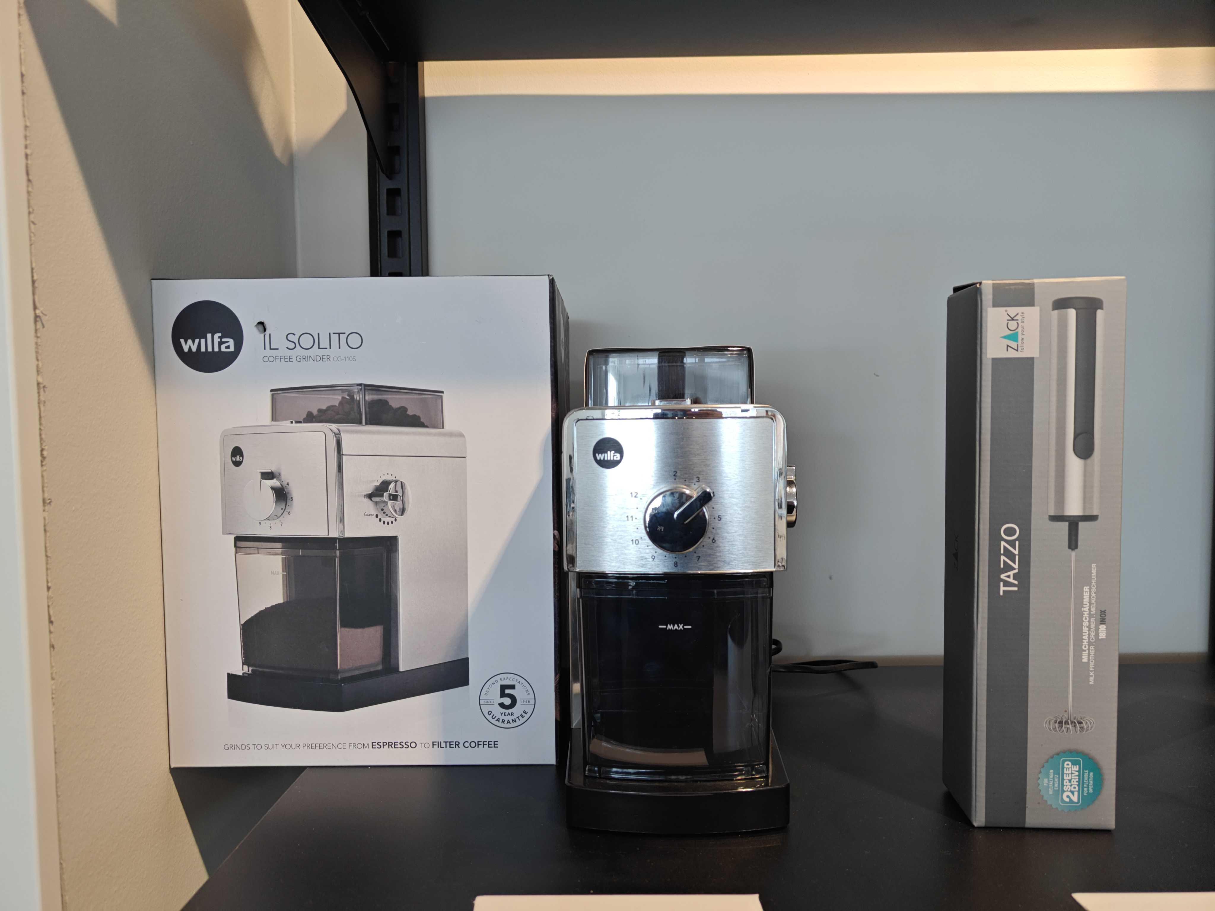Coffee grinder Wilfa Il Solito CG-110S and milk frother Zack Tazzo
