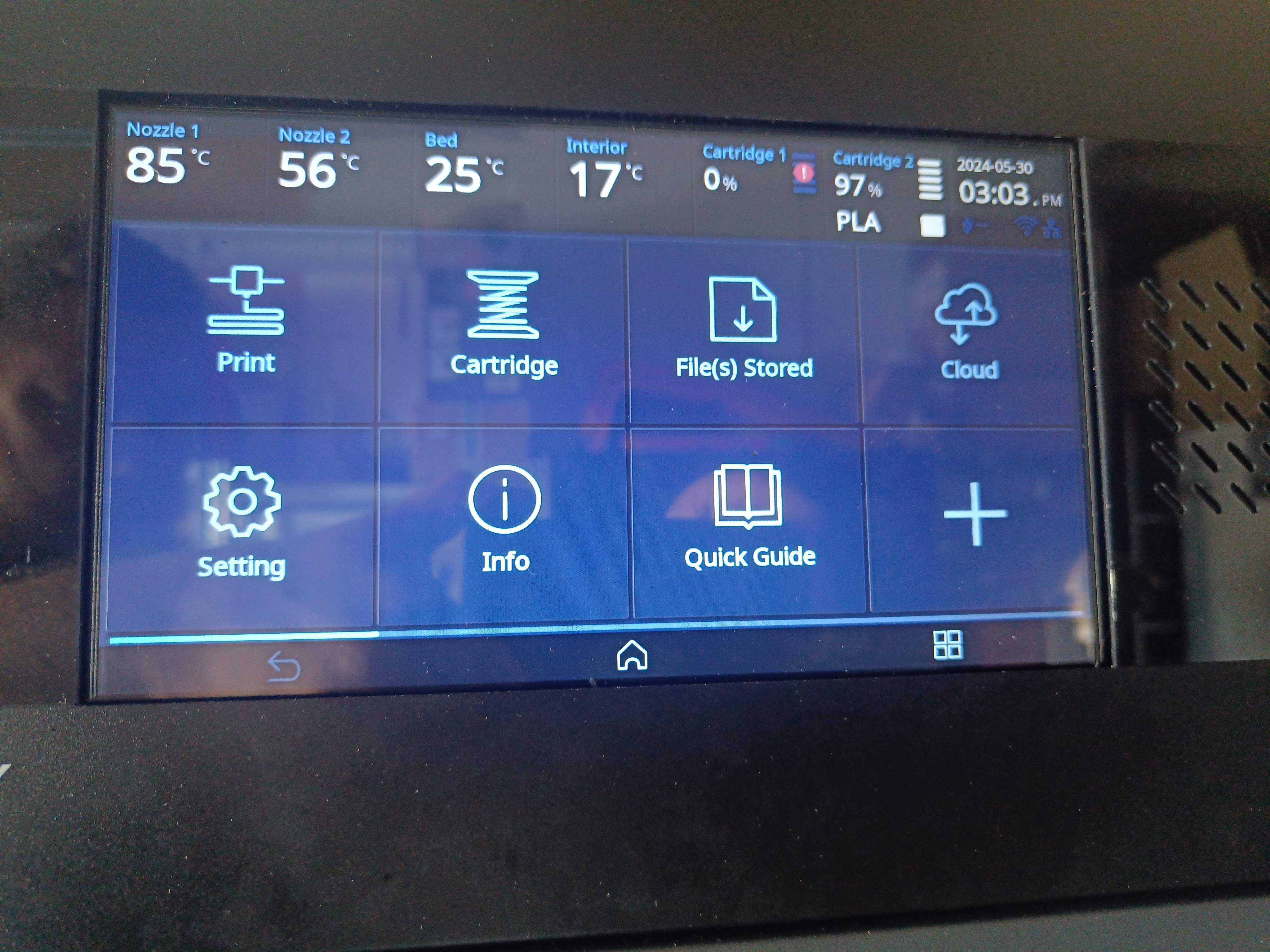 Materials: PLA (9 colors), ABS (7 colors), flexible (6 colors), PVA,