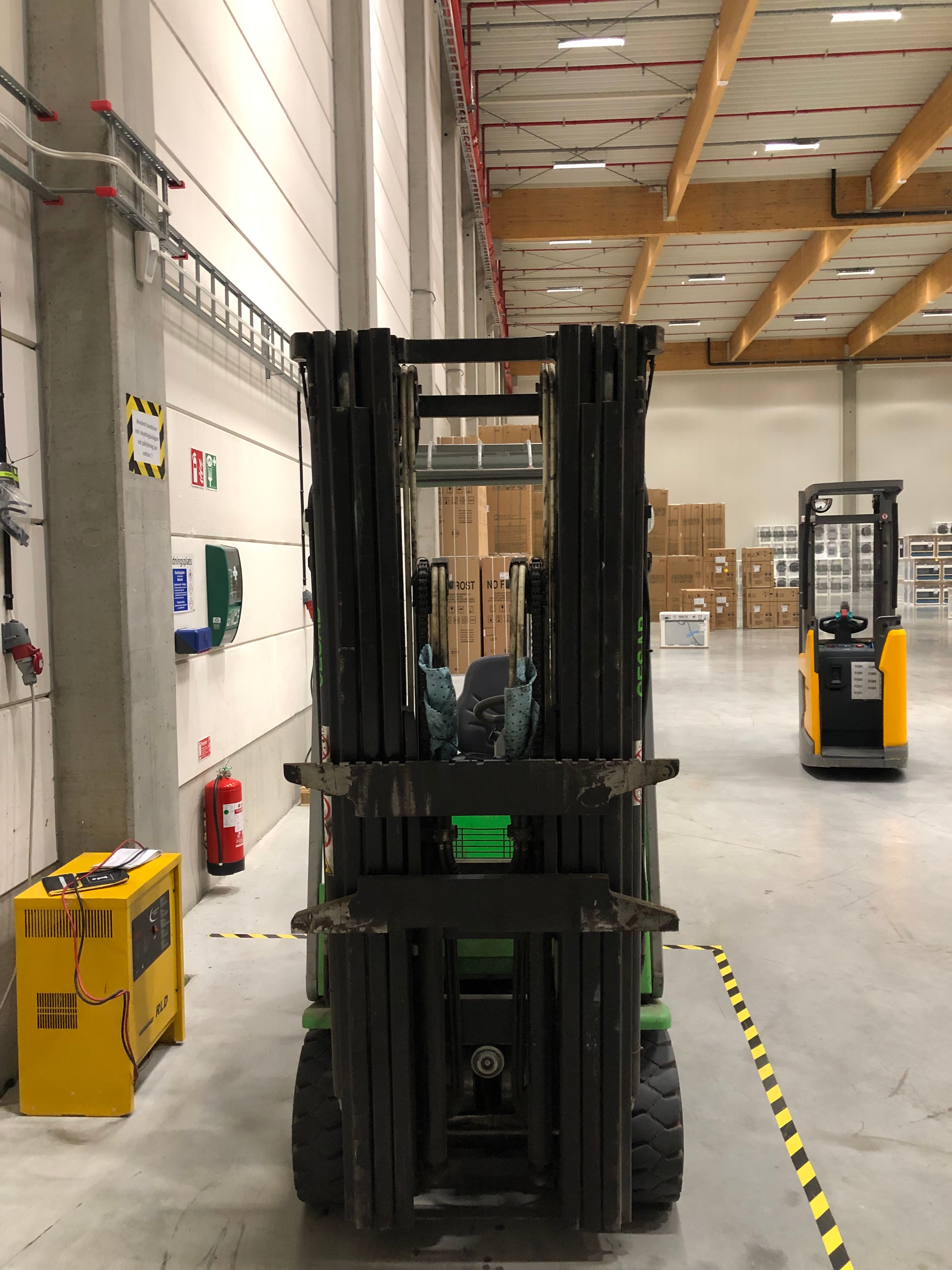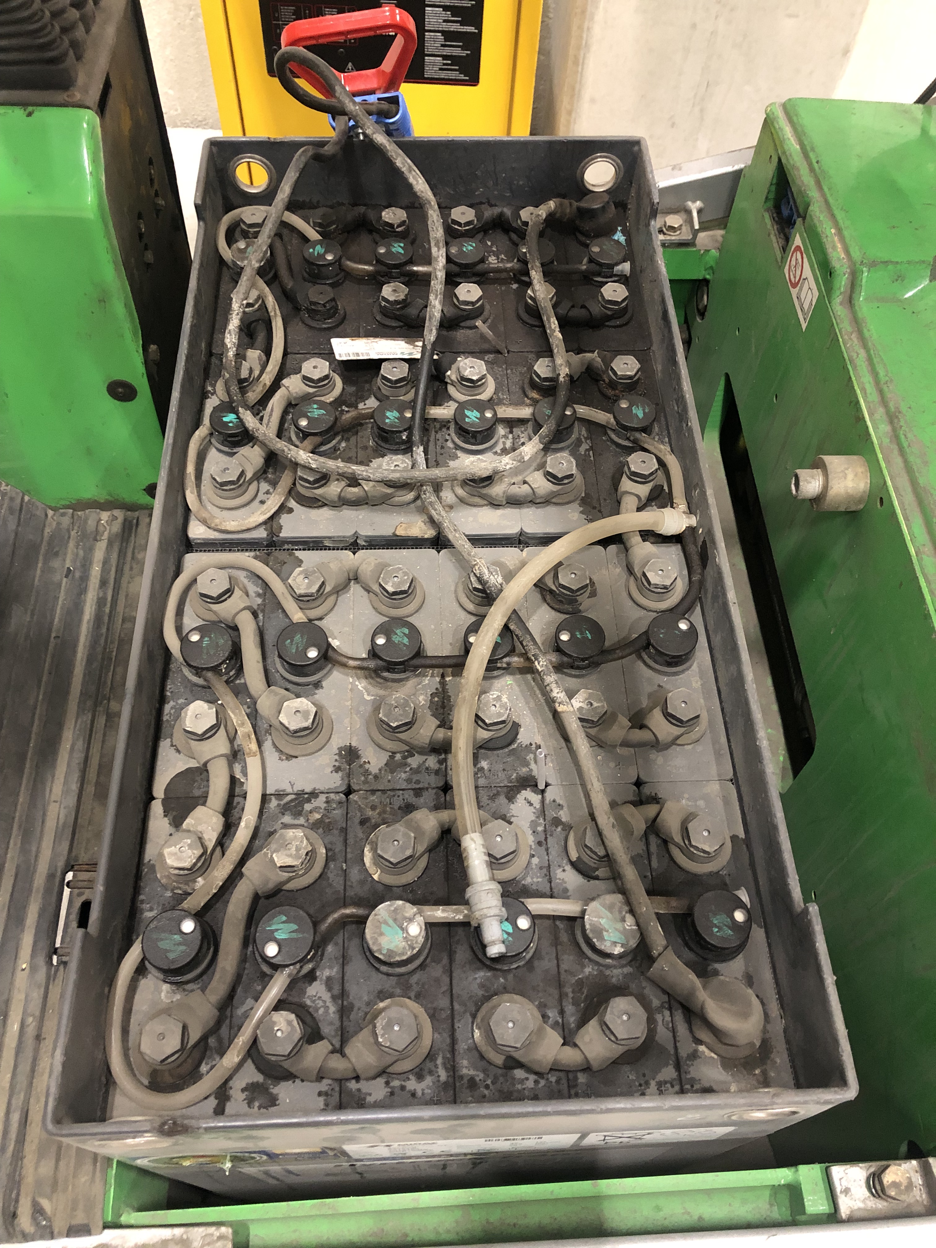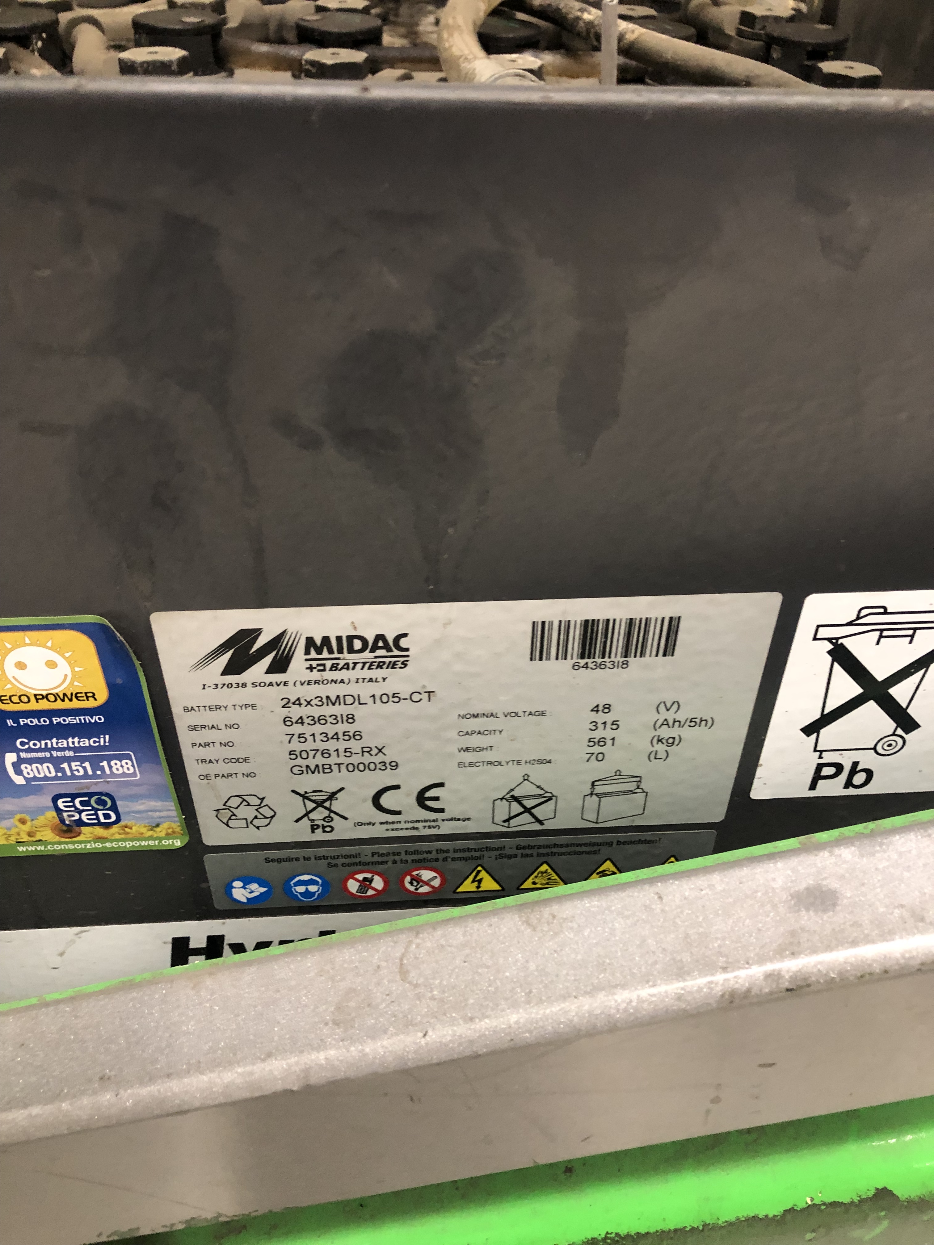 The battery that is installed is not fully adapted to the truck. The battery weighs 561kg and the standard battery weight for that truck is 775kg, so the permitted lifting capacity on the type plates is different.