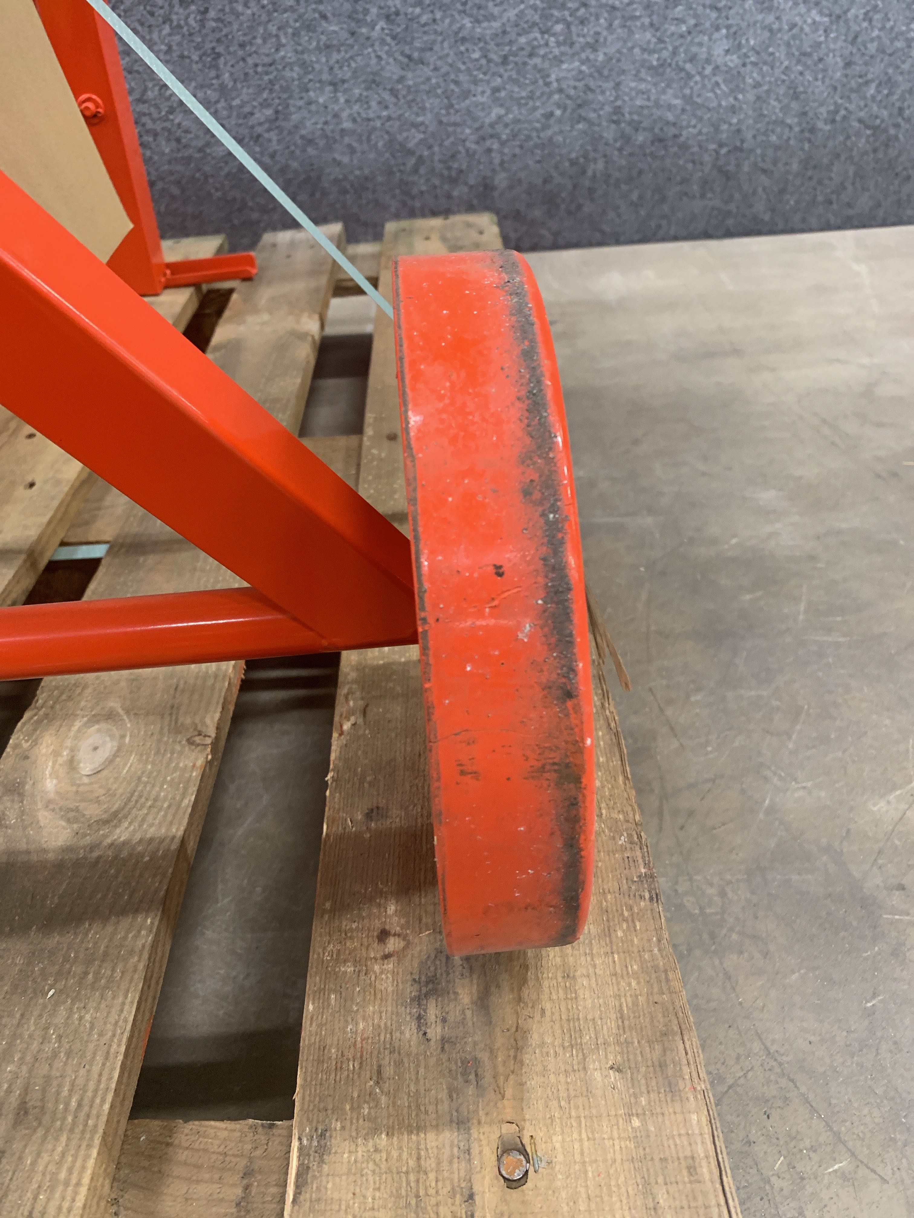 • Steering wheel with brake disc and foot pedal for operation.