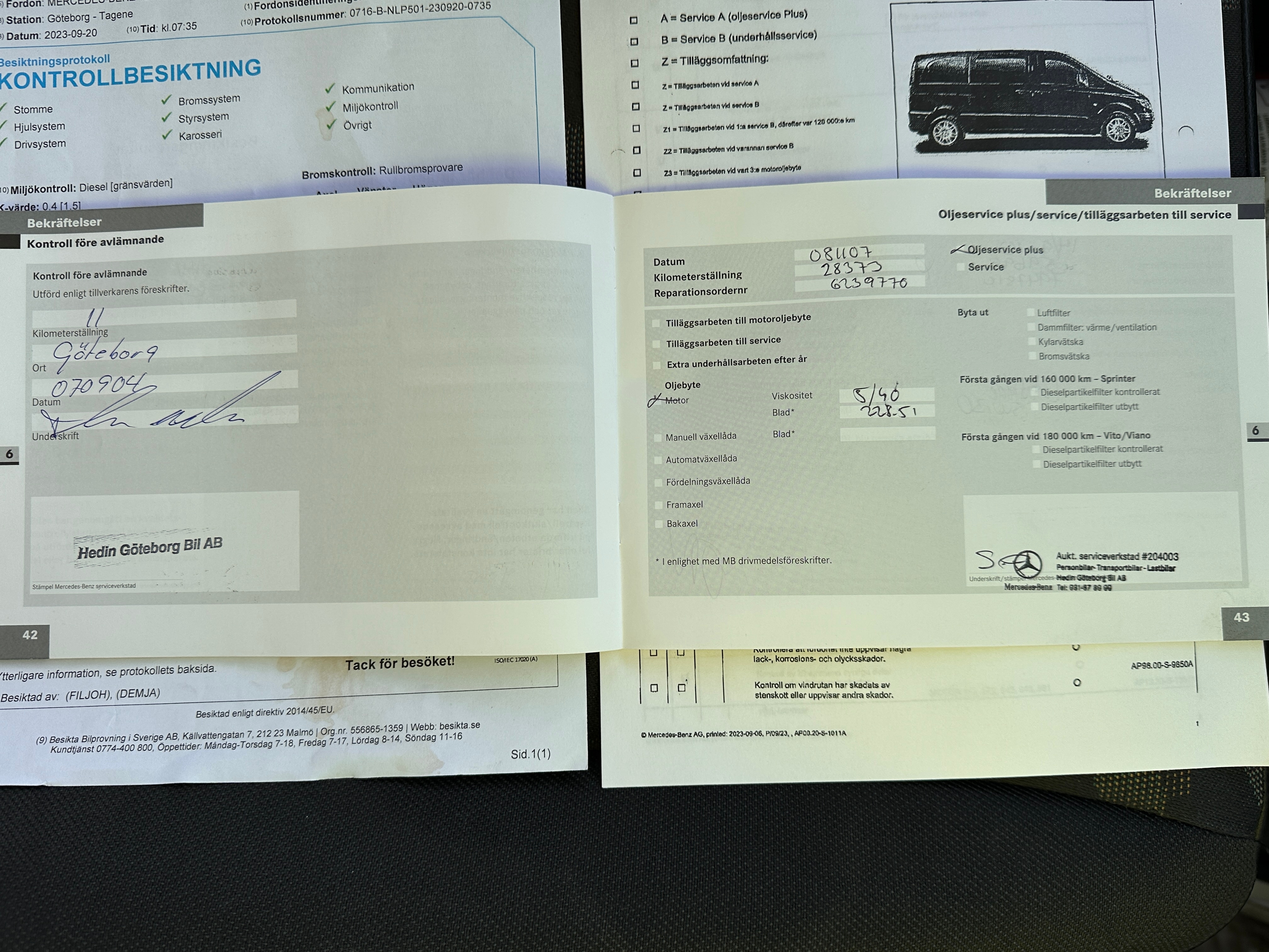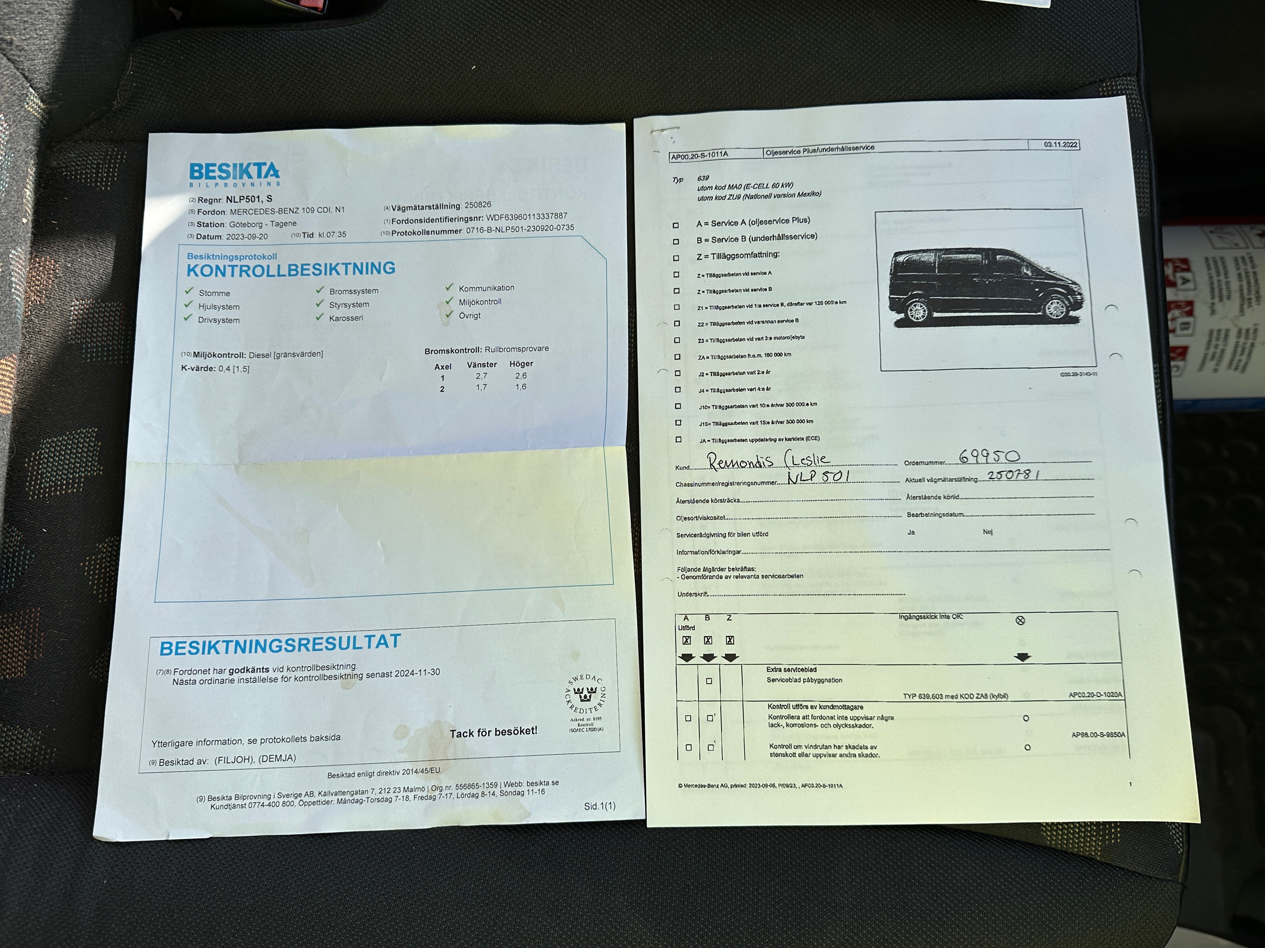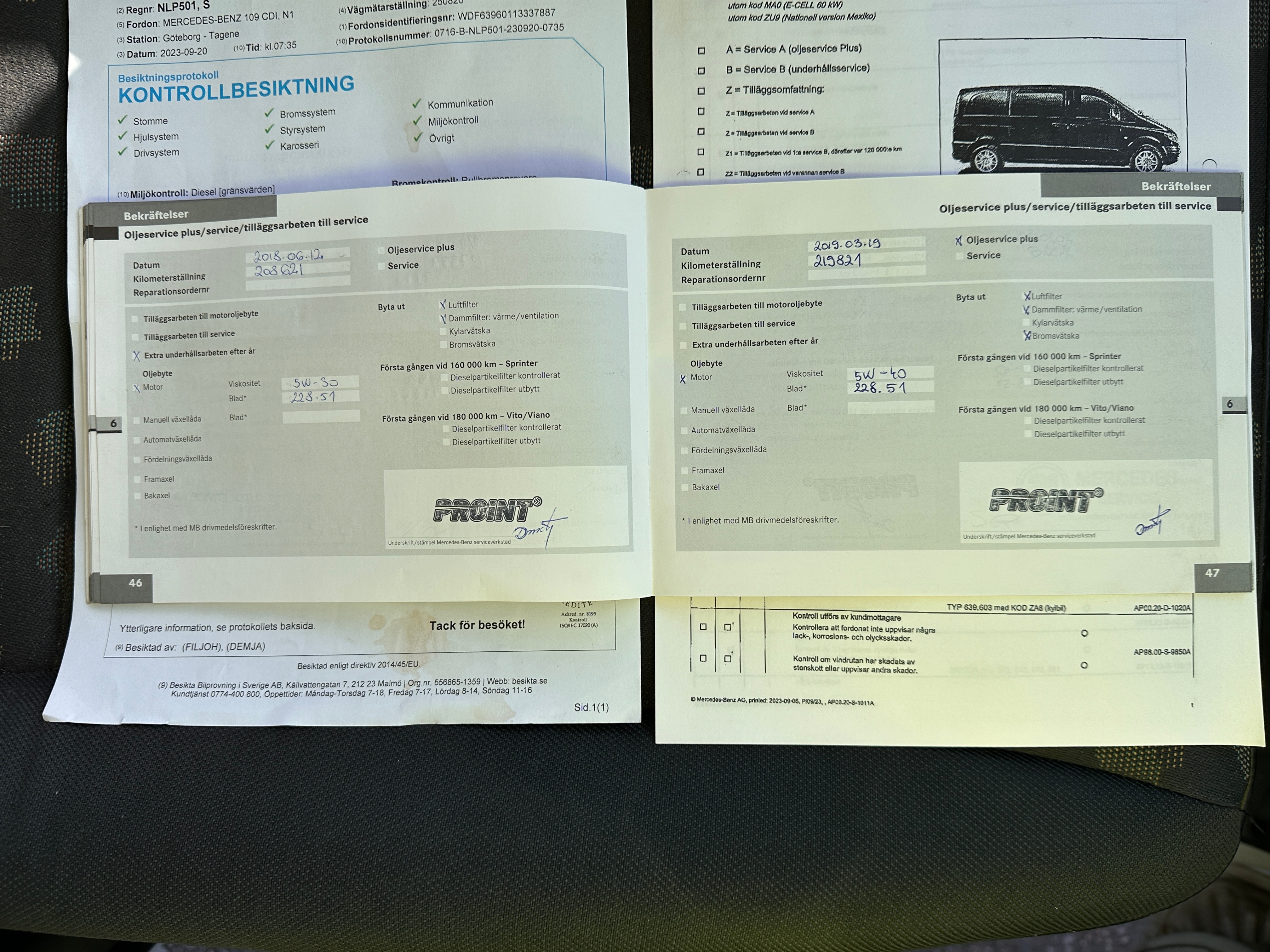 Pictures of the service book and inspection protocol are among the pictures.