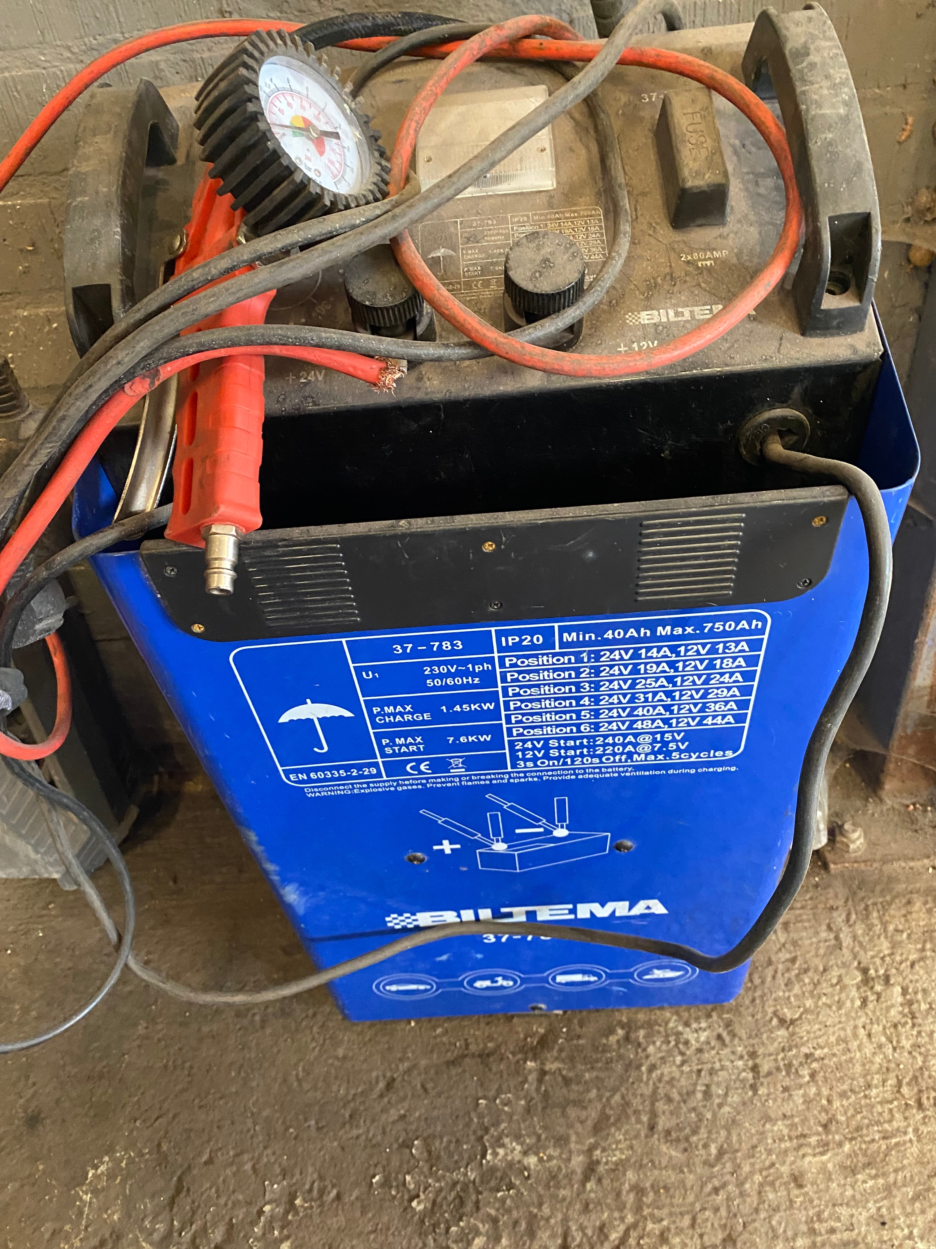 Battery charger Biltema 37-783, incl. sledgehammer and broken booster
