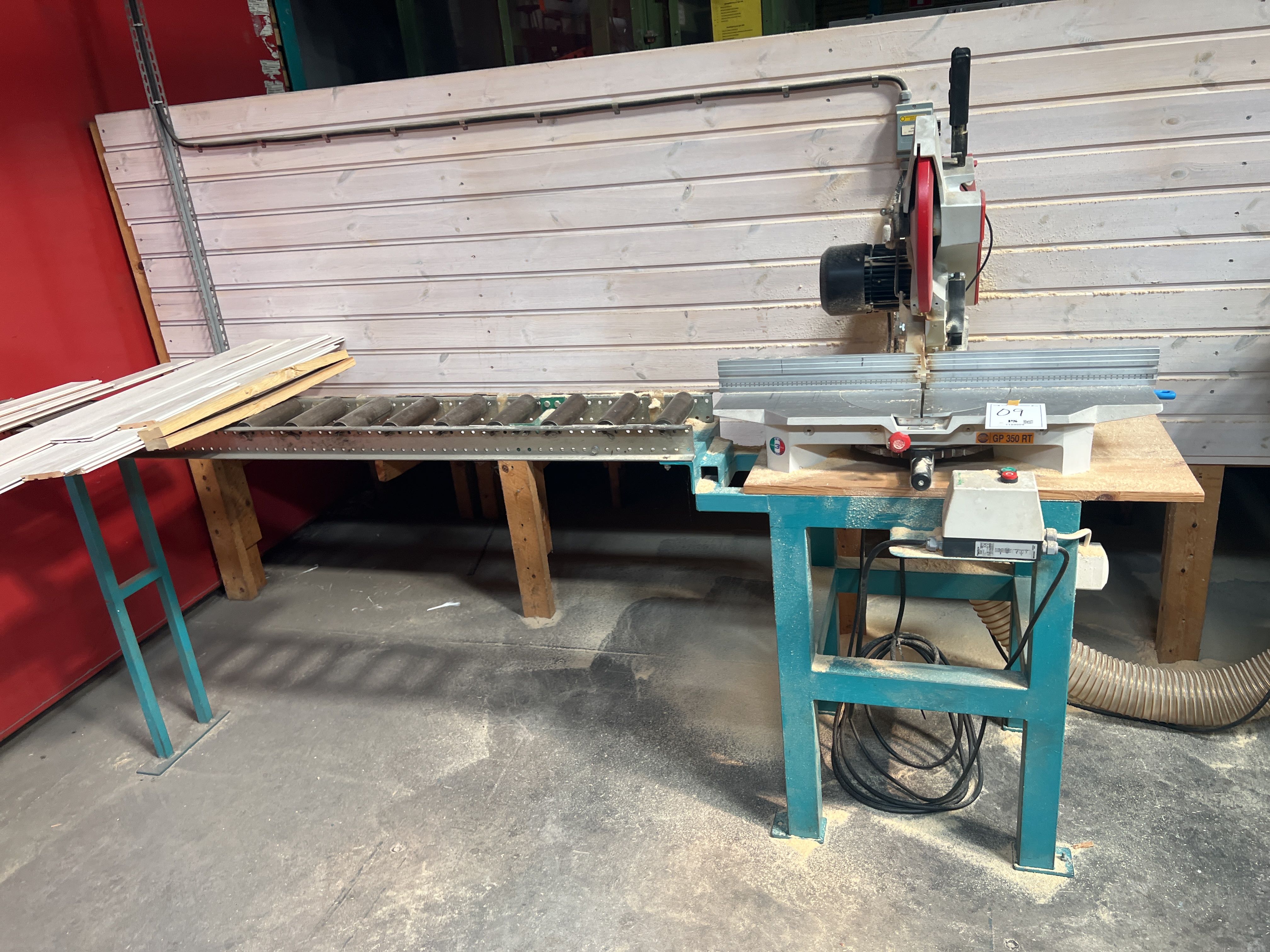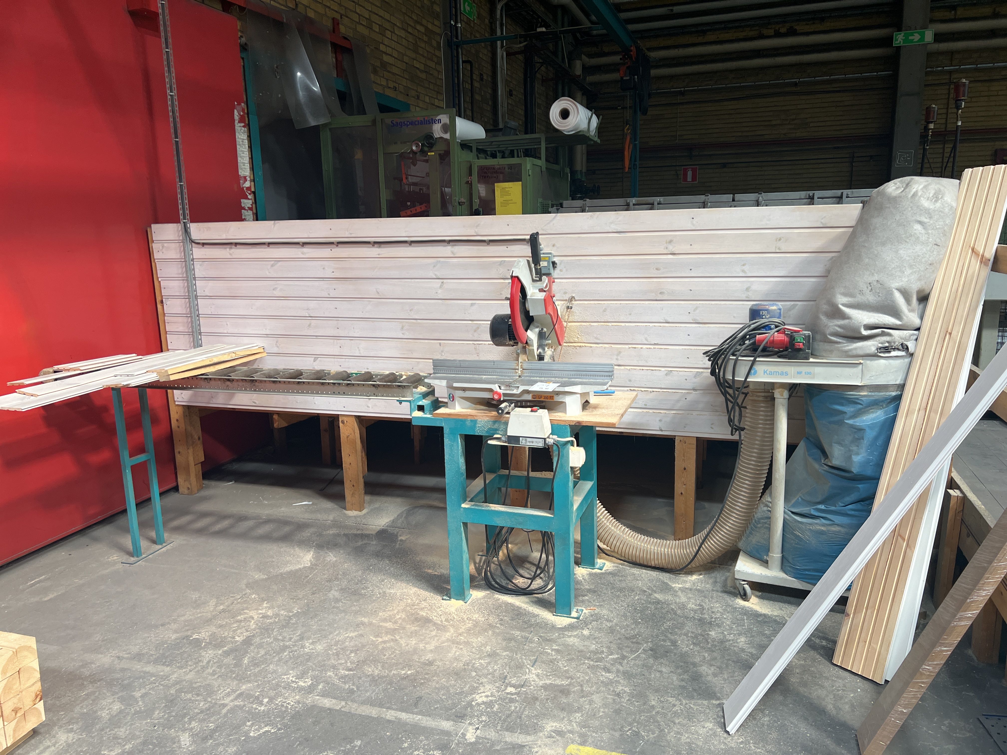 Cut/miter saw Pegic GP350 RT with roller track and chip suction filter Kamas NF 130