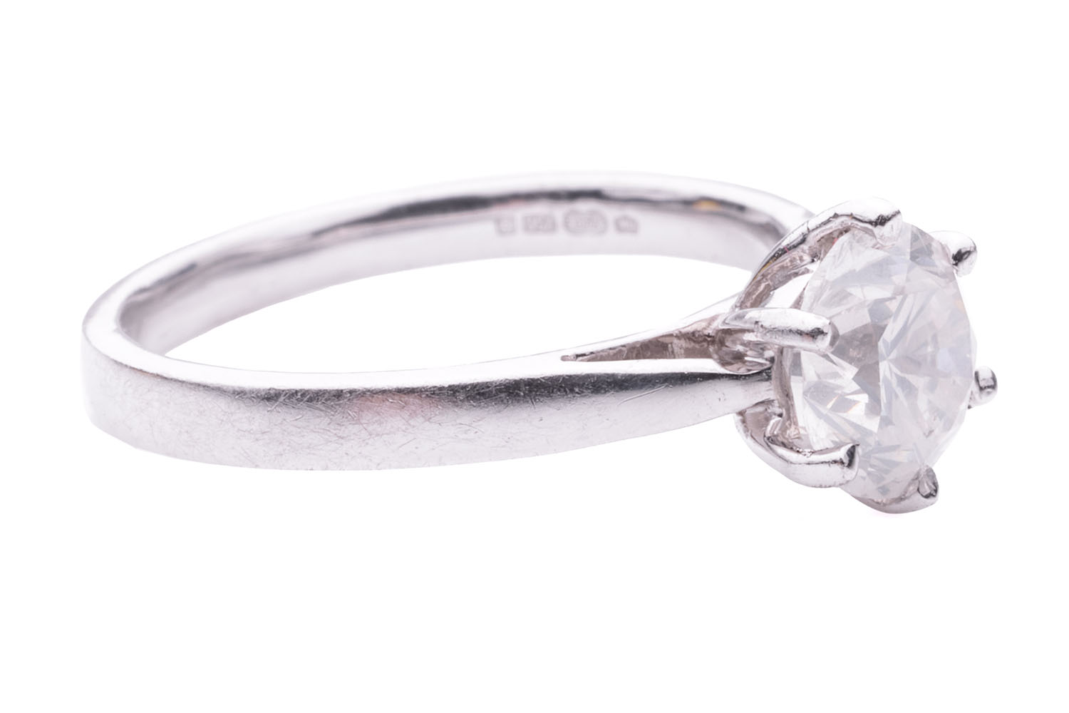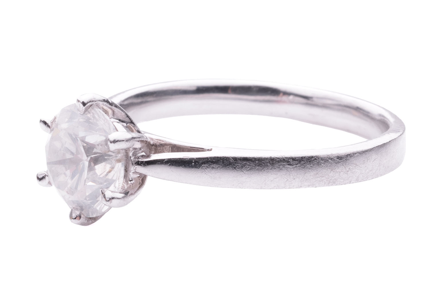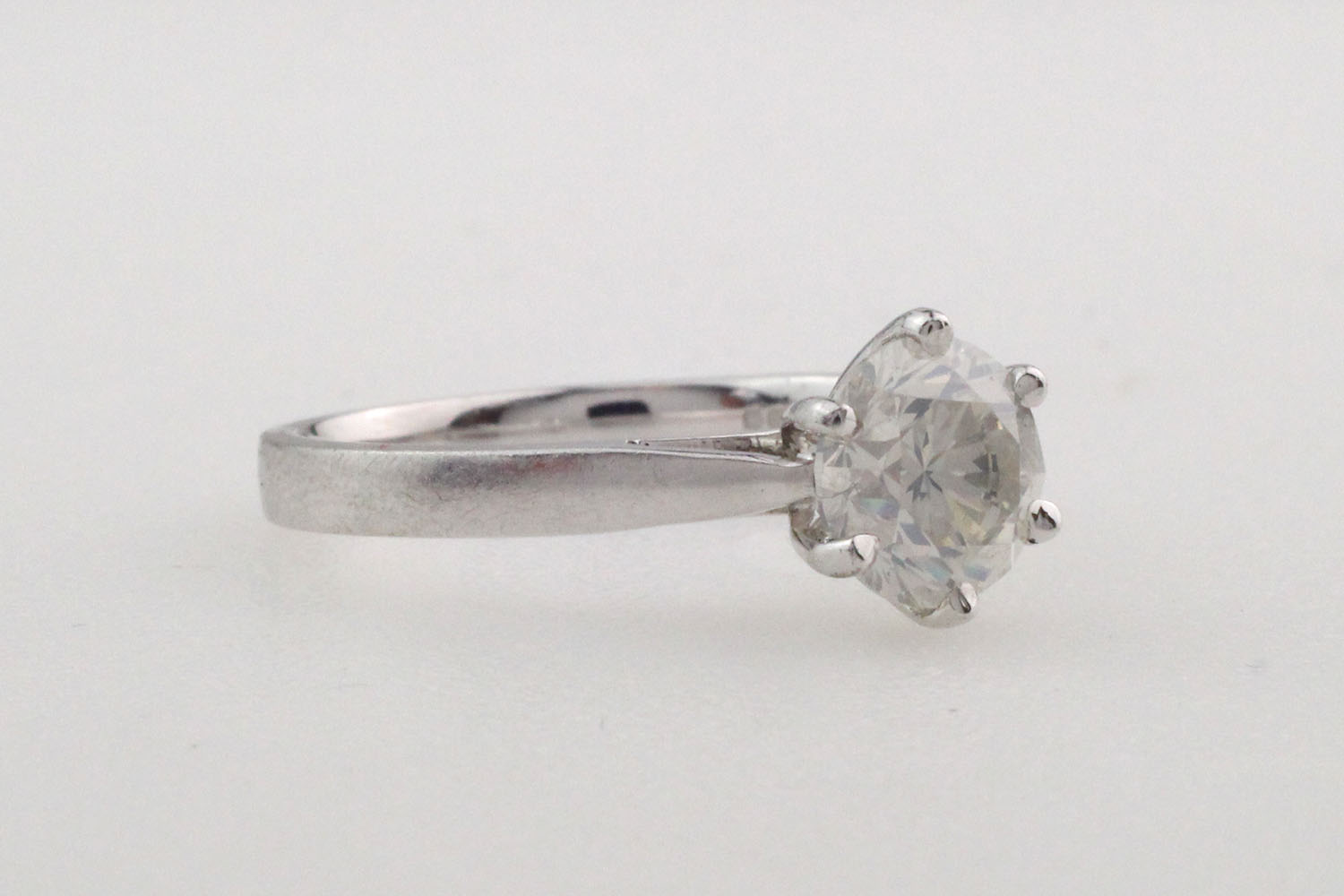 Ring 18K White gold with a brilliant-cut Diamond approx. 1.25 ct. Size 17.3 mm. Gross weight approx. 3.9 grams.