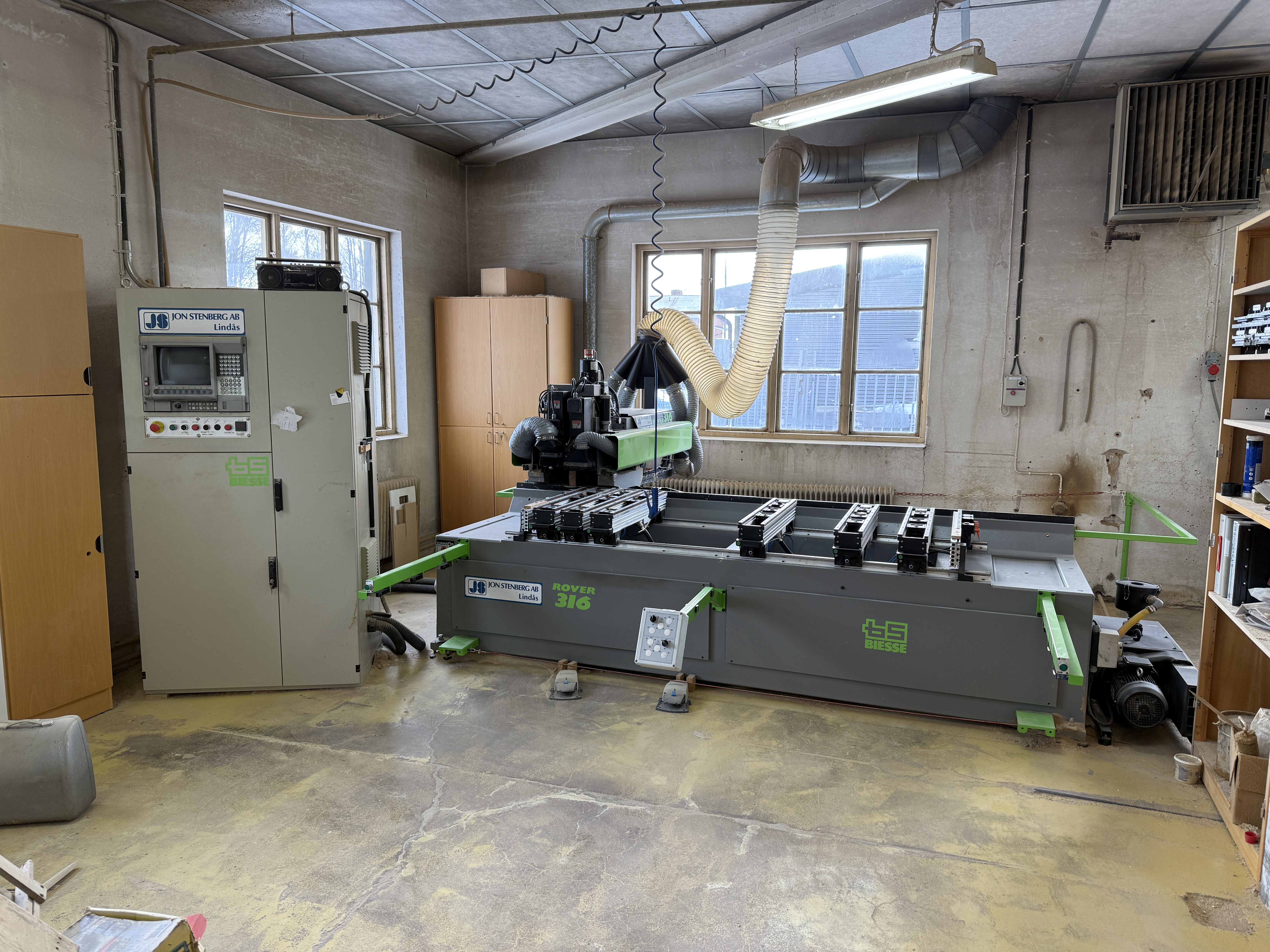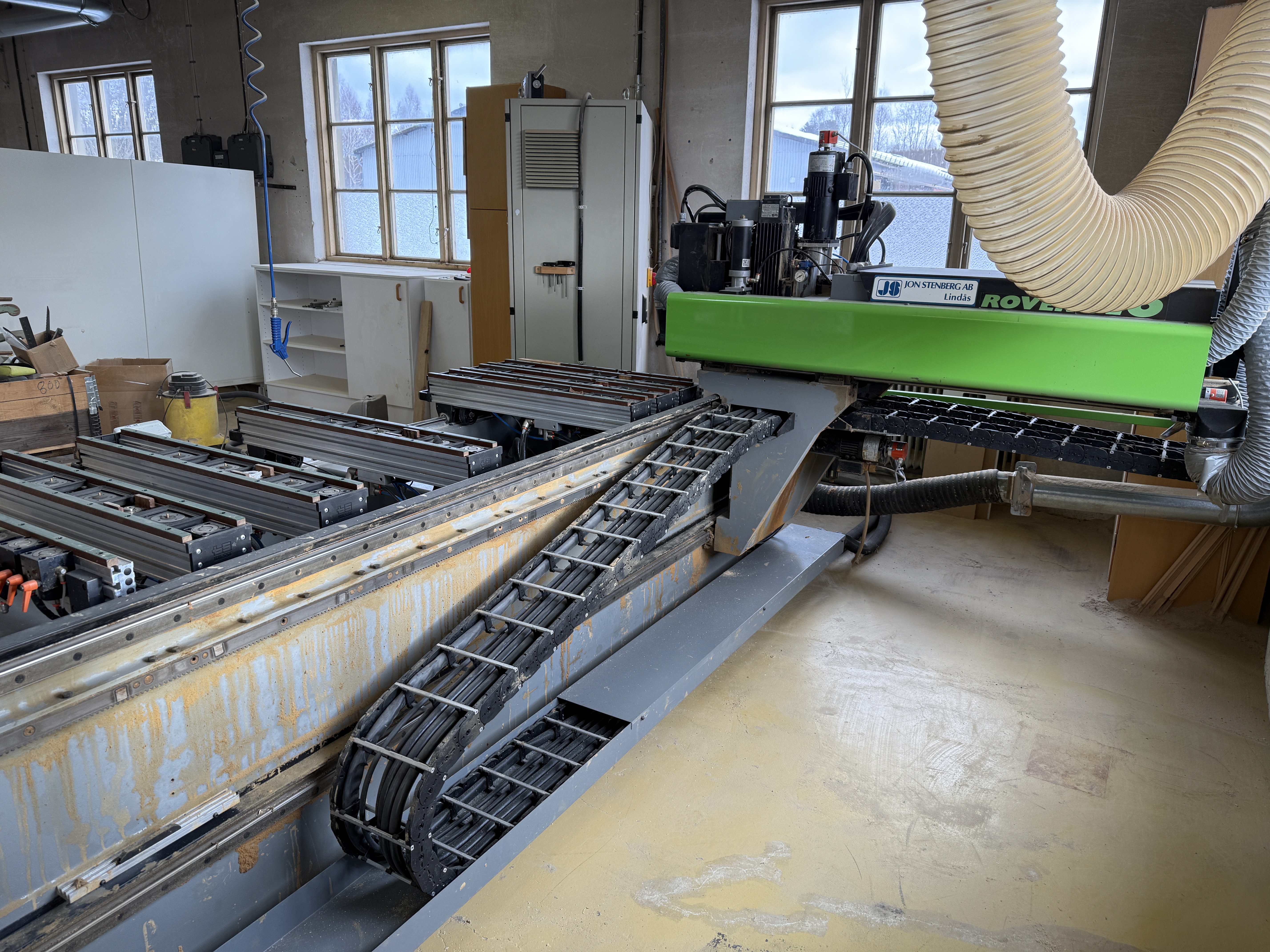 Loading assistance with a forklift is available, lifting capacity 2.5 tons. There may be a queue if many people arrive at the same time. Many heavy machines require heavy tools. All electricity will be disconnected upon delivery.