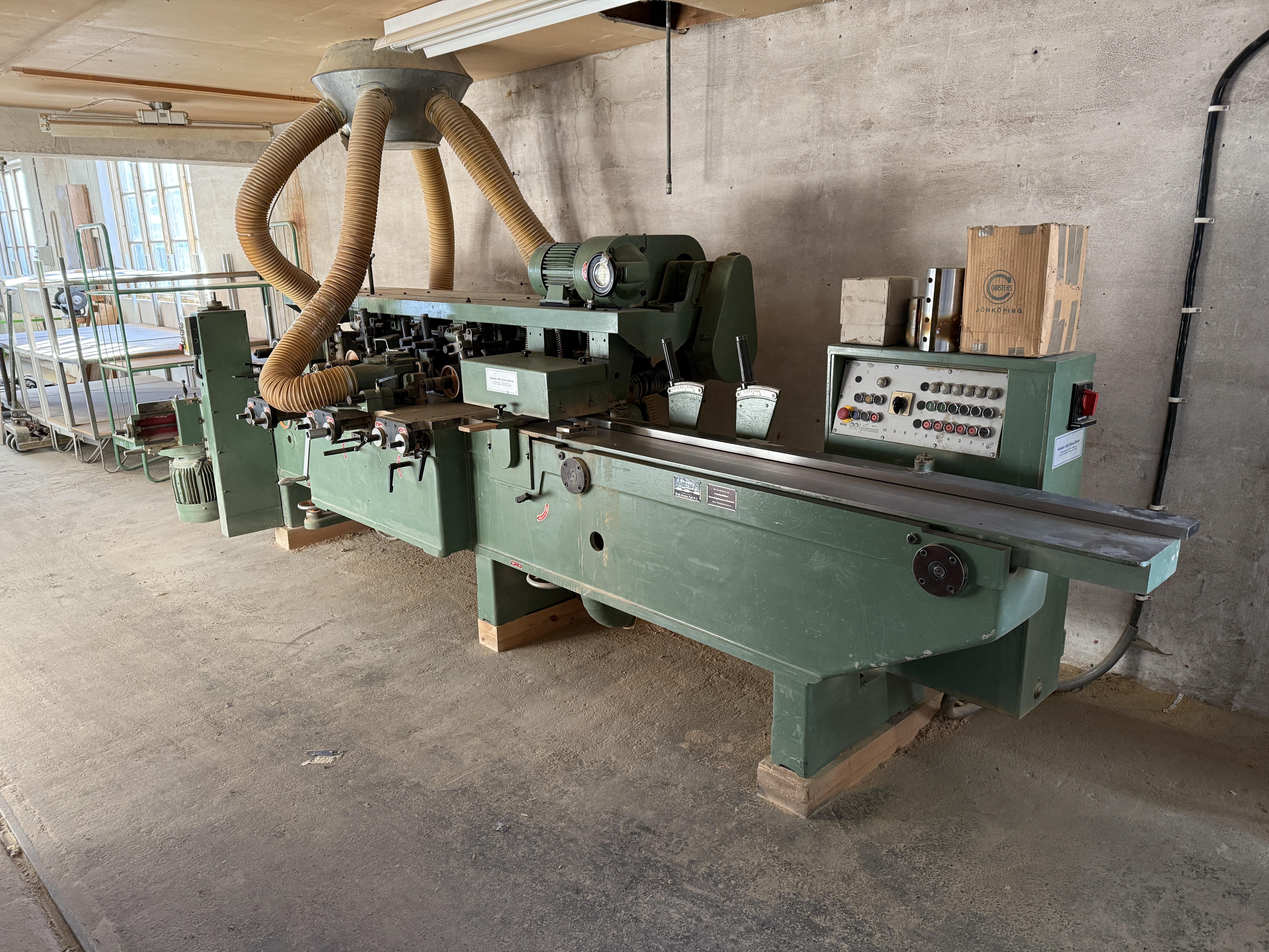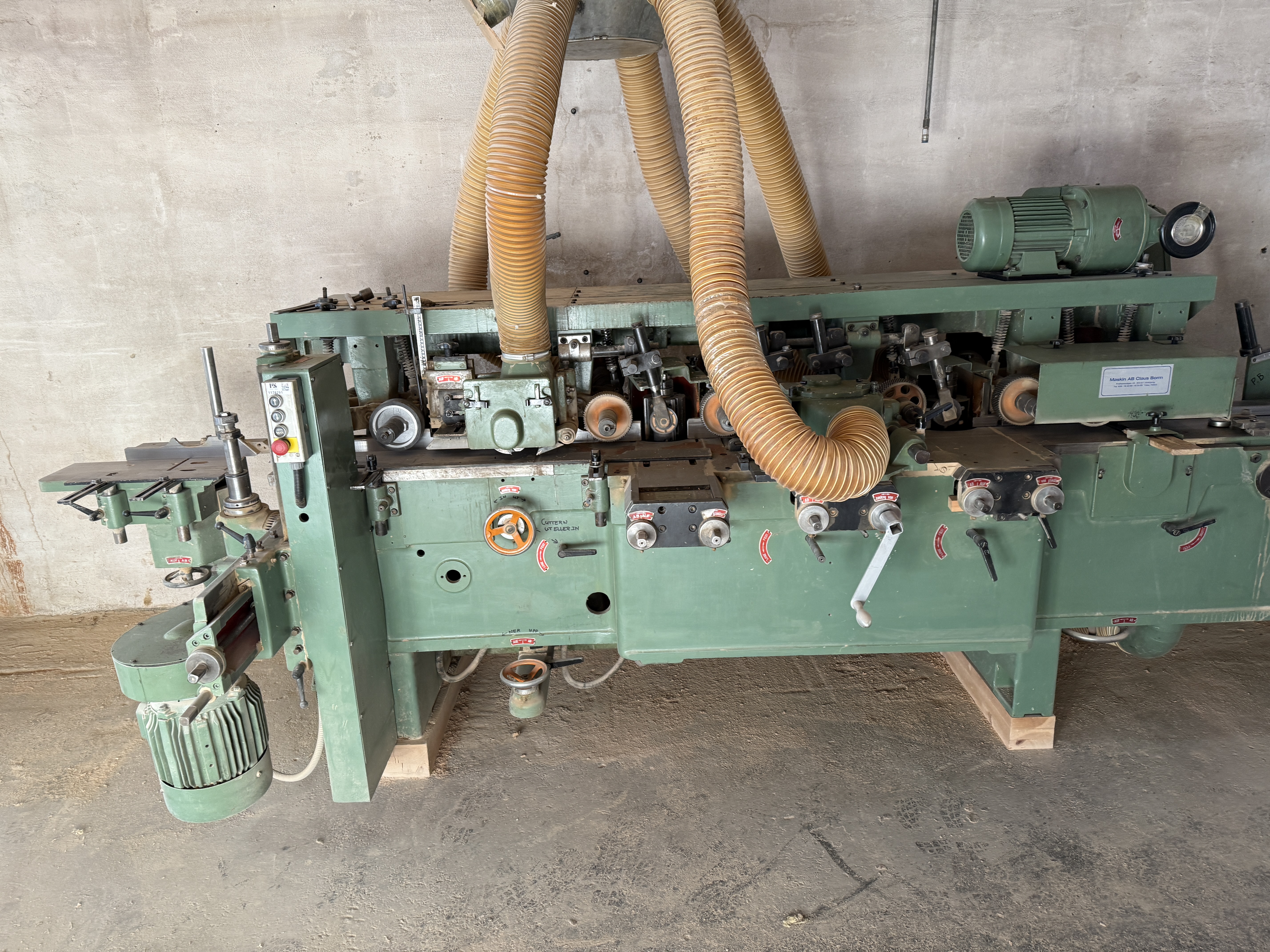 Loading assistance with a forklift is available, lifting capacity 2.5 tons. There may be a queue if many people arrive at the same time. Many heavy machines require heavy tools. All electricity will be disconnected upon delivery.