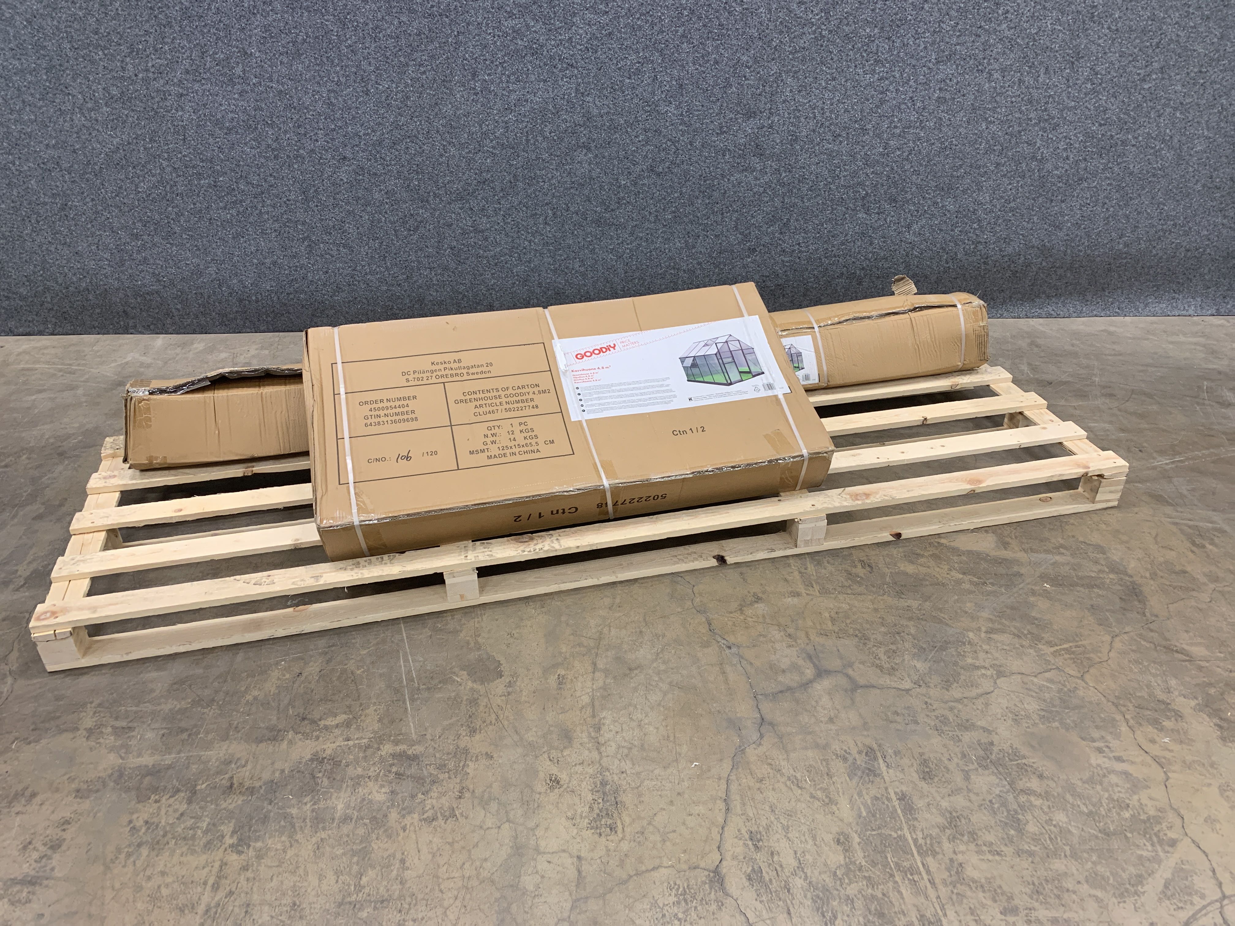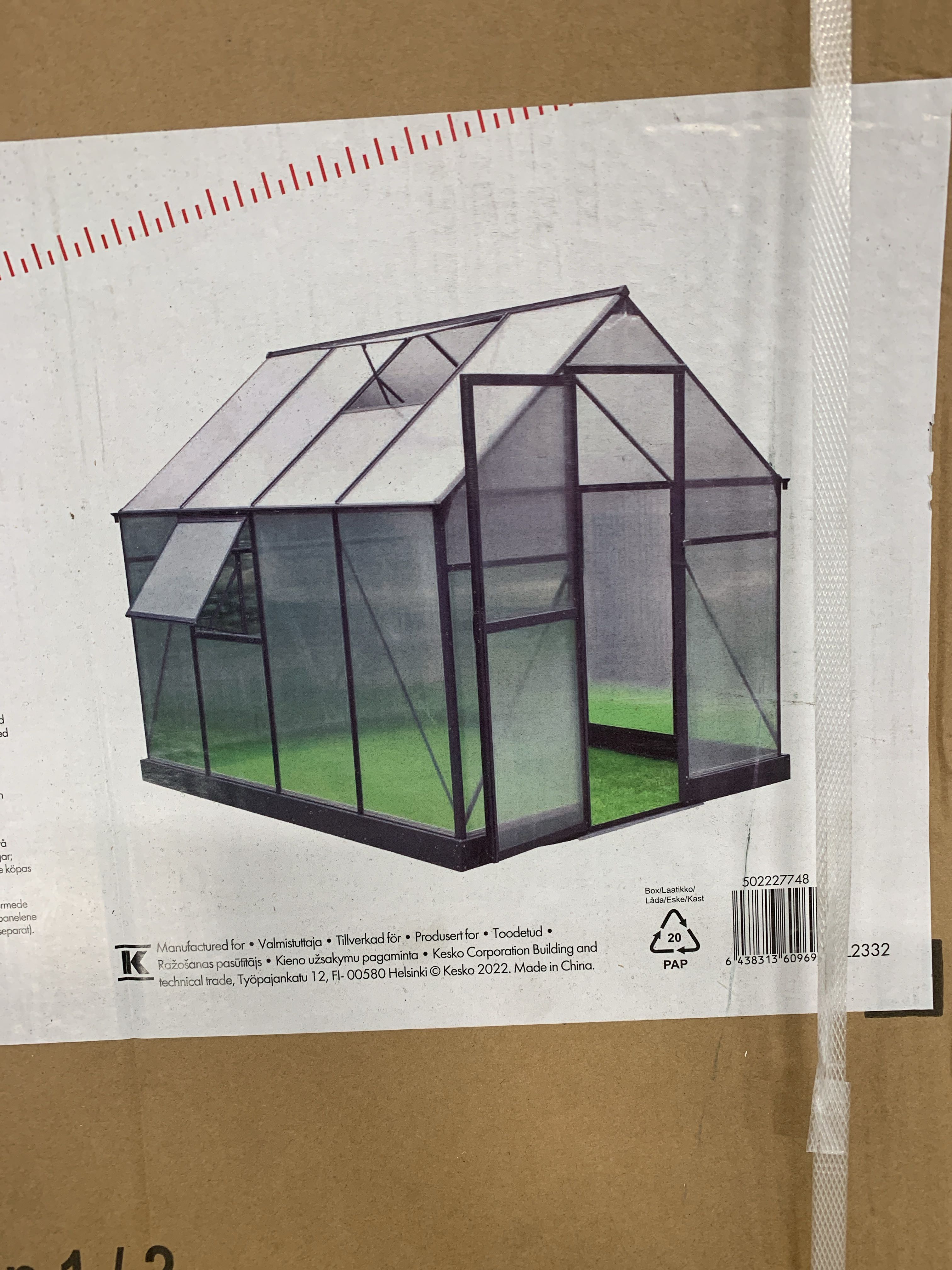 Two ventilation hatches as standard with the optional Goodiy automatic hatch opener with article number 502229135. The door opens to the side. Greenhouse width 190 cm, length / depth 250 cm, ridge height 206 cm. 4 mm UV-protected polycarbonate in walls and roof that insulates heat and protects plants from direct sunlight. The color of the frame is dark grey, RAL7016. Supplied in two transport packs, one with frame and the other with honeycomb panels. The numbered parts and clear assembly instructions with pictures facilitate assembly.