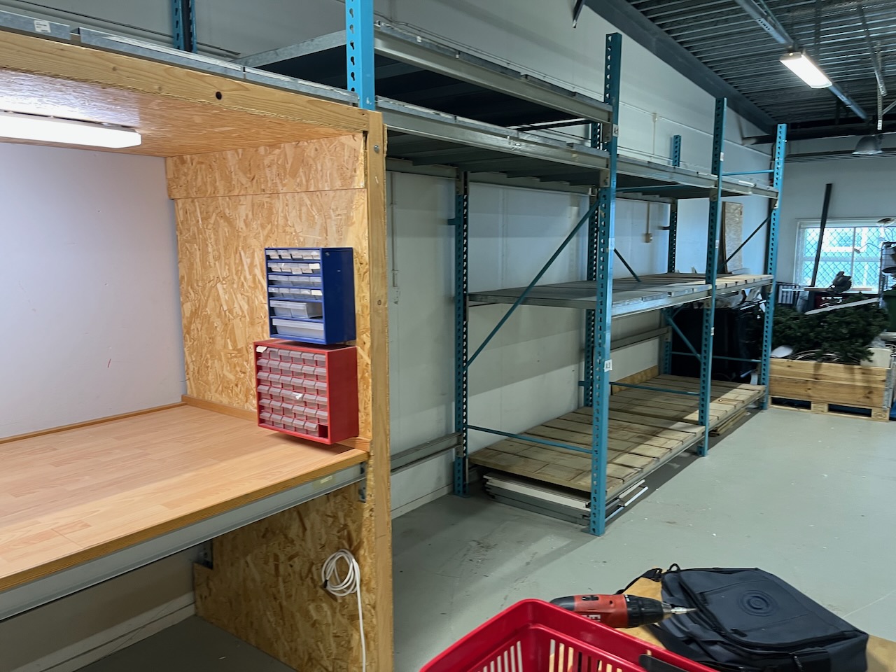 Pallet racking with workplace 4 sections.