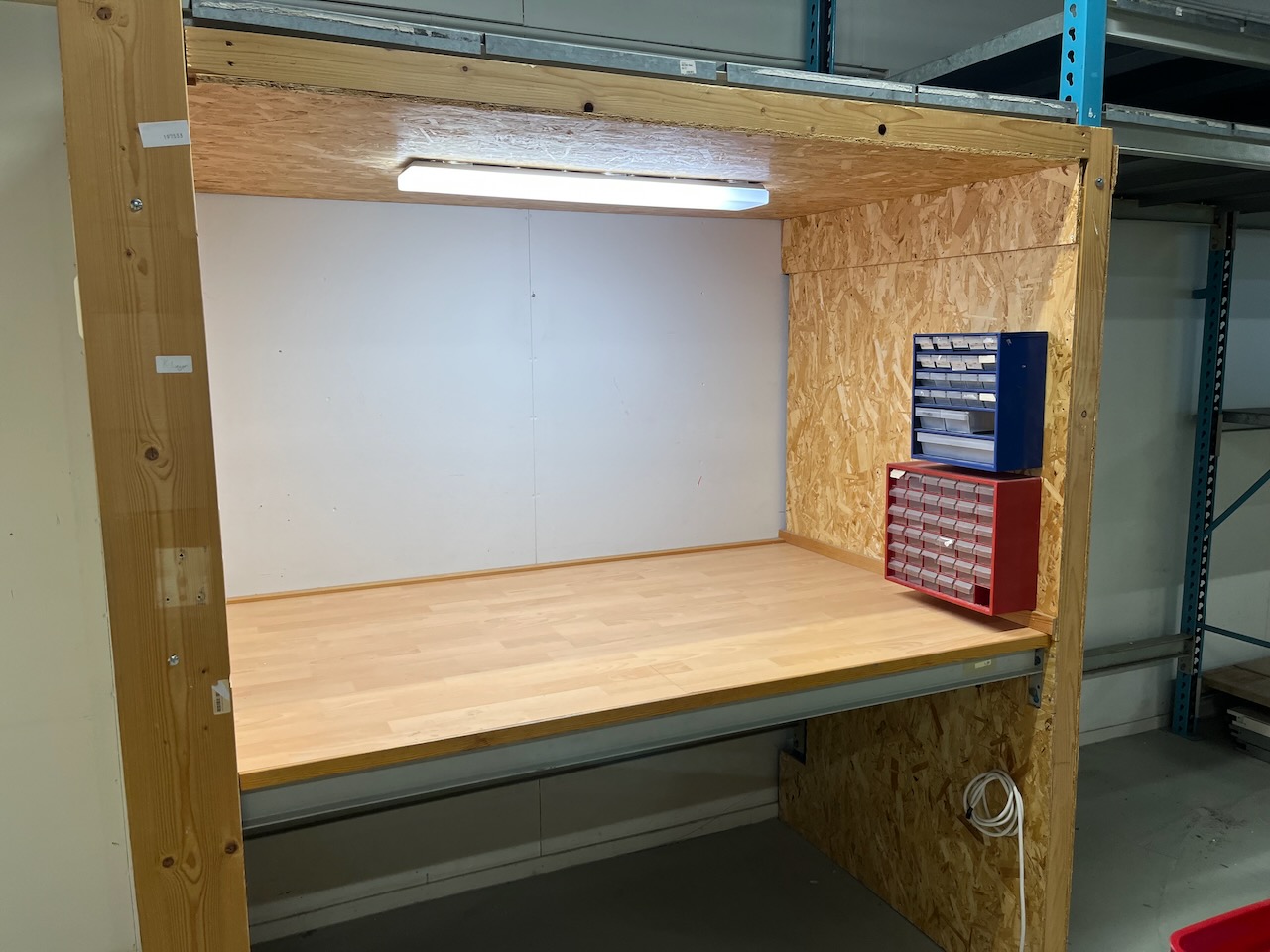Countertop, OSB boards and fluorescent tubes included.