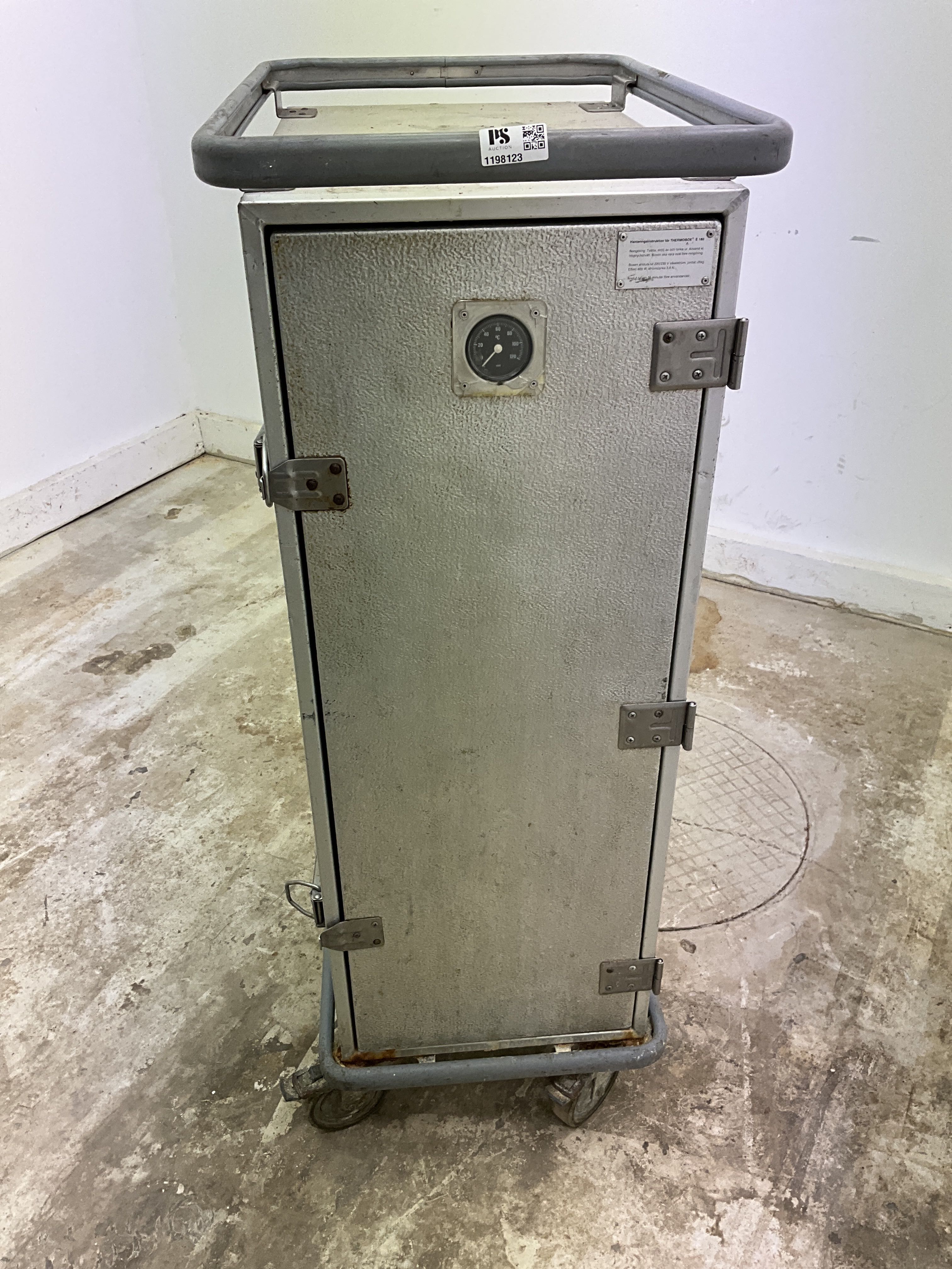 Heating cabinet on wheels.