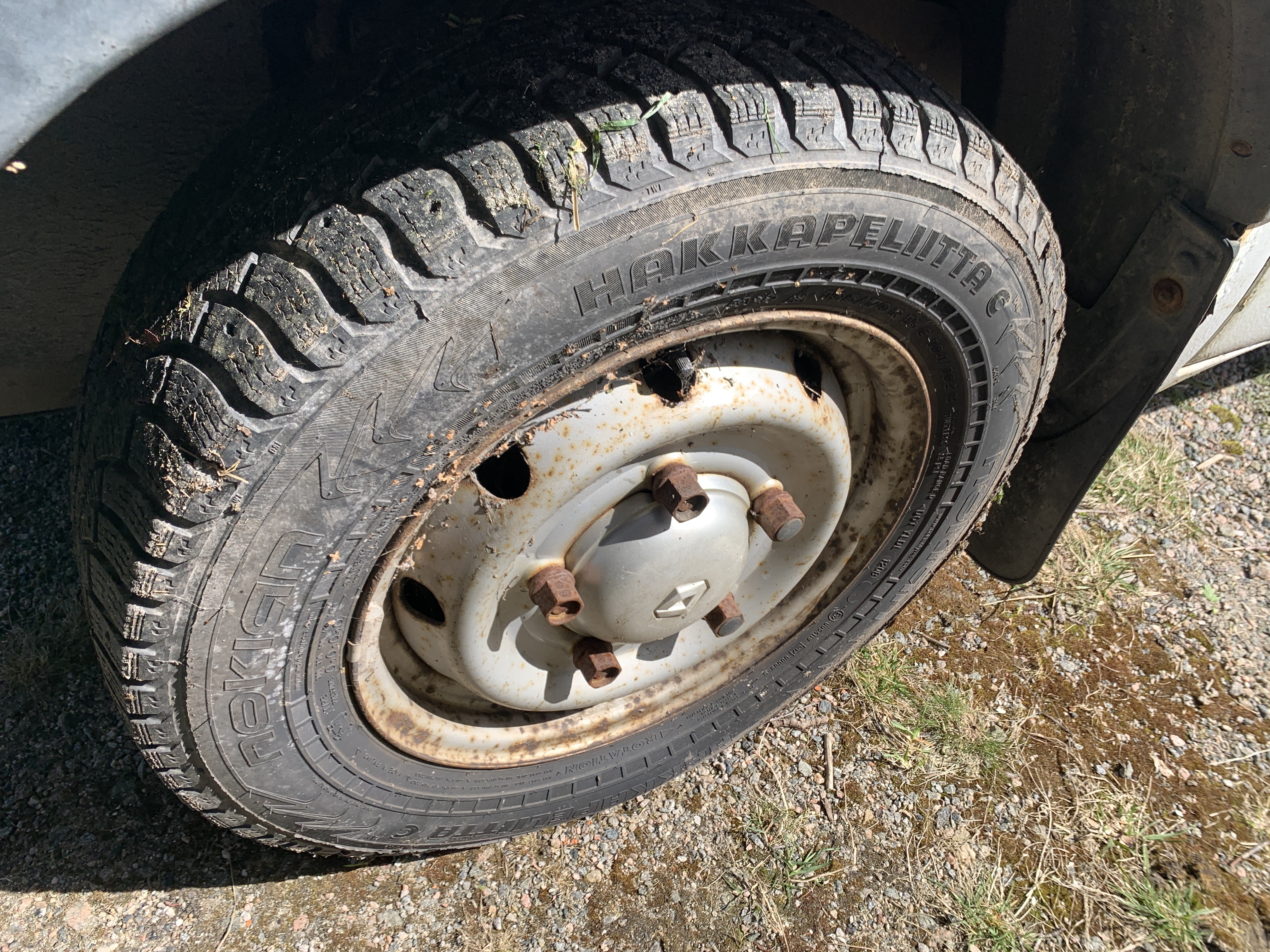 Stands on winter tires. There are other tires in the car, but I don't know what condition they are in or if they even fit this car.