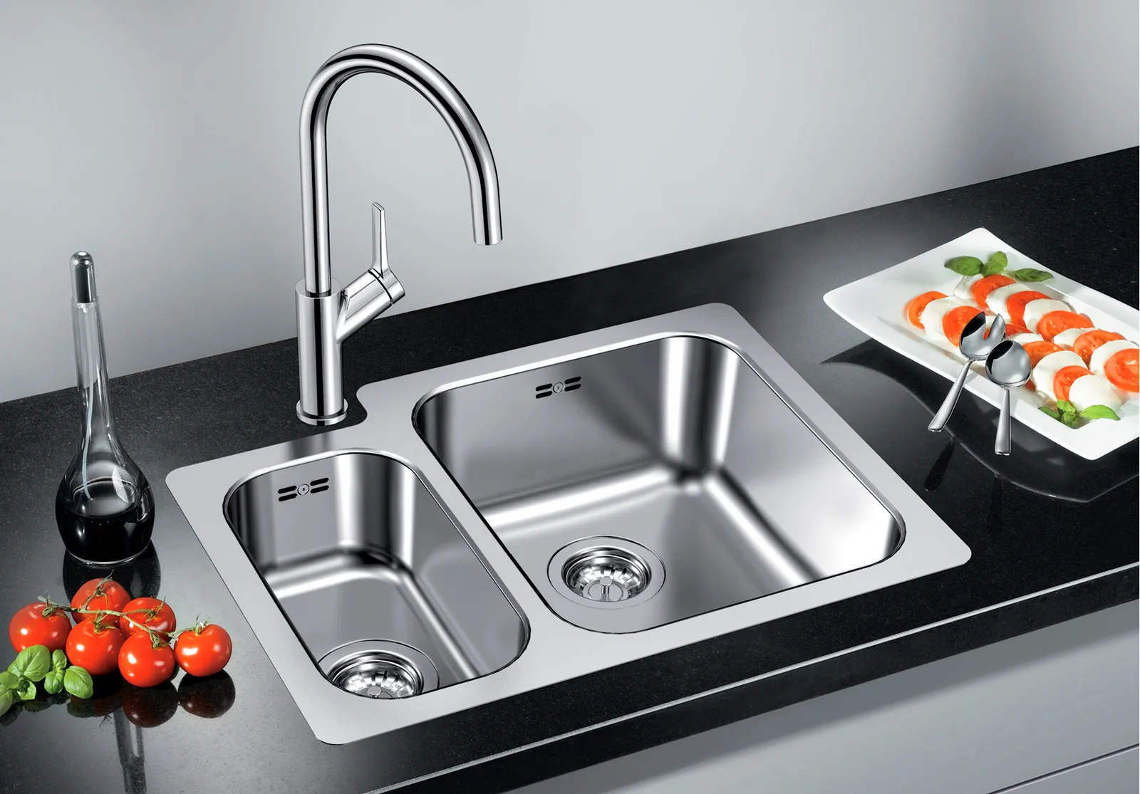 - Sink in stainless steel with radius 60 in the corners.