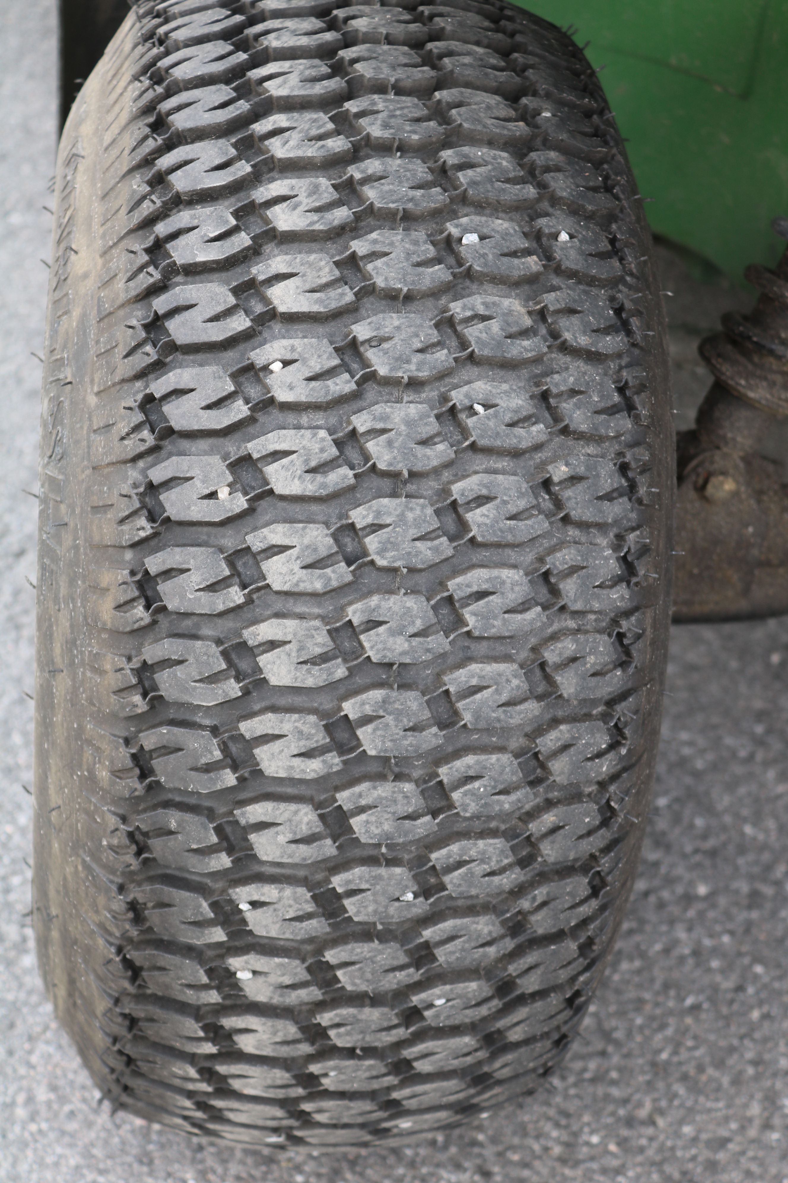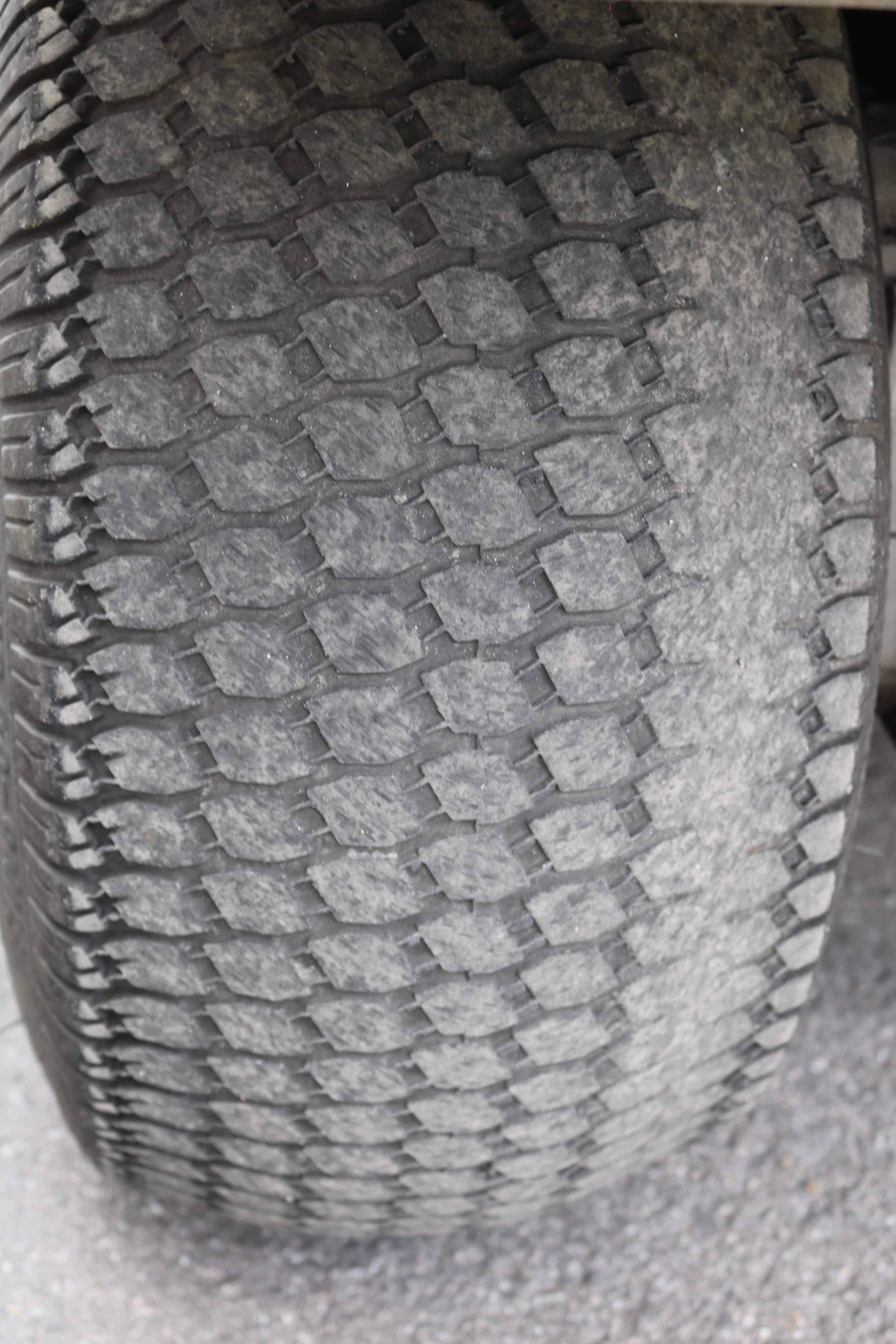 The tires are worn differently, which is normal on these vehicles. See pictures.